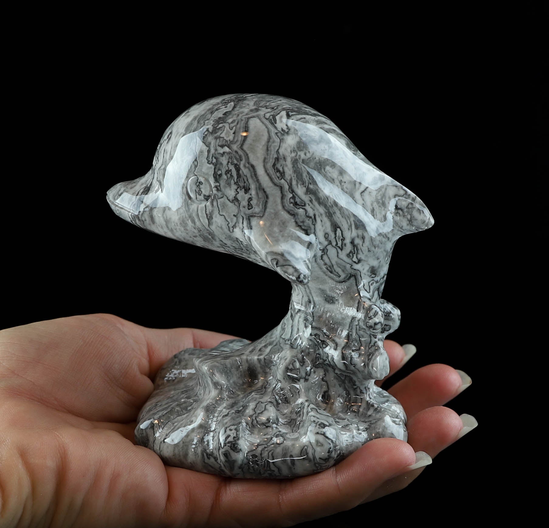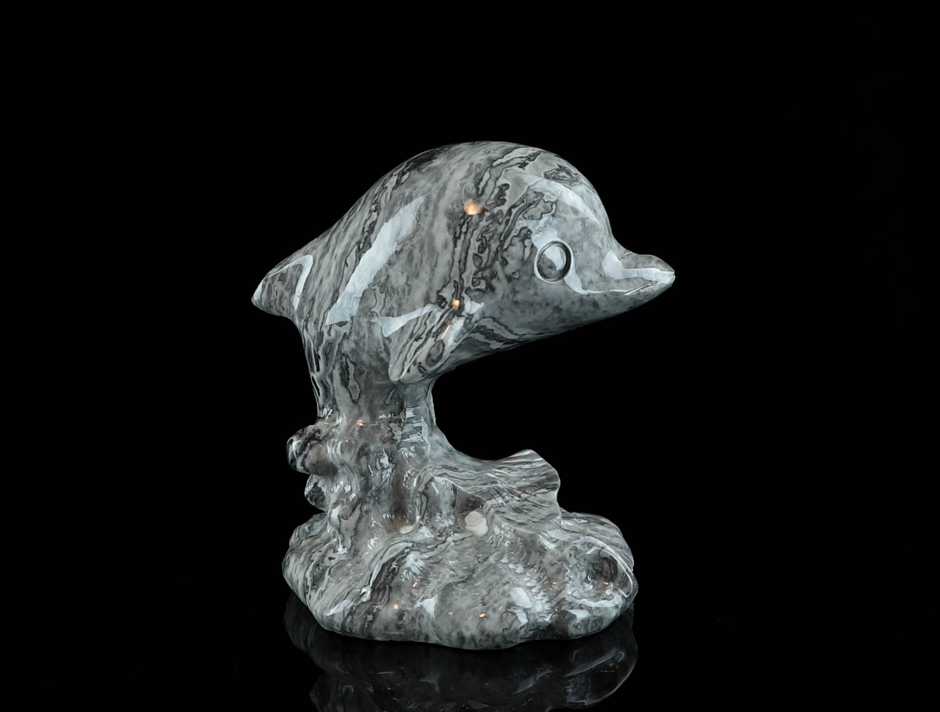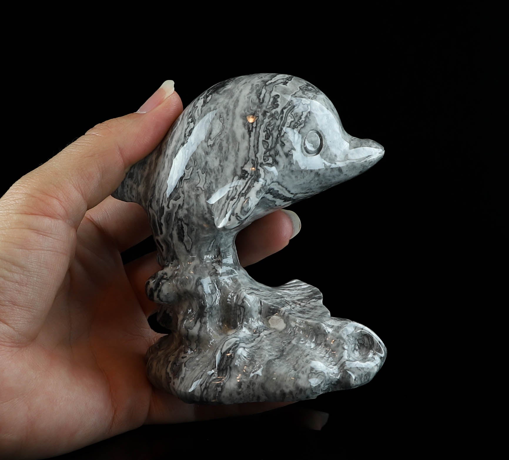 Dolphins represent harmony, peace, and friendship. This beautiful Dolphin is made of 100% natural Agate, hand carved and polished. A beautiful addition to your home décor or crystal collection.