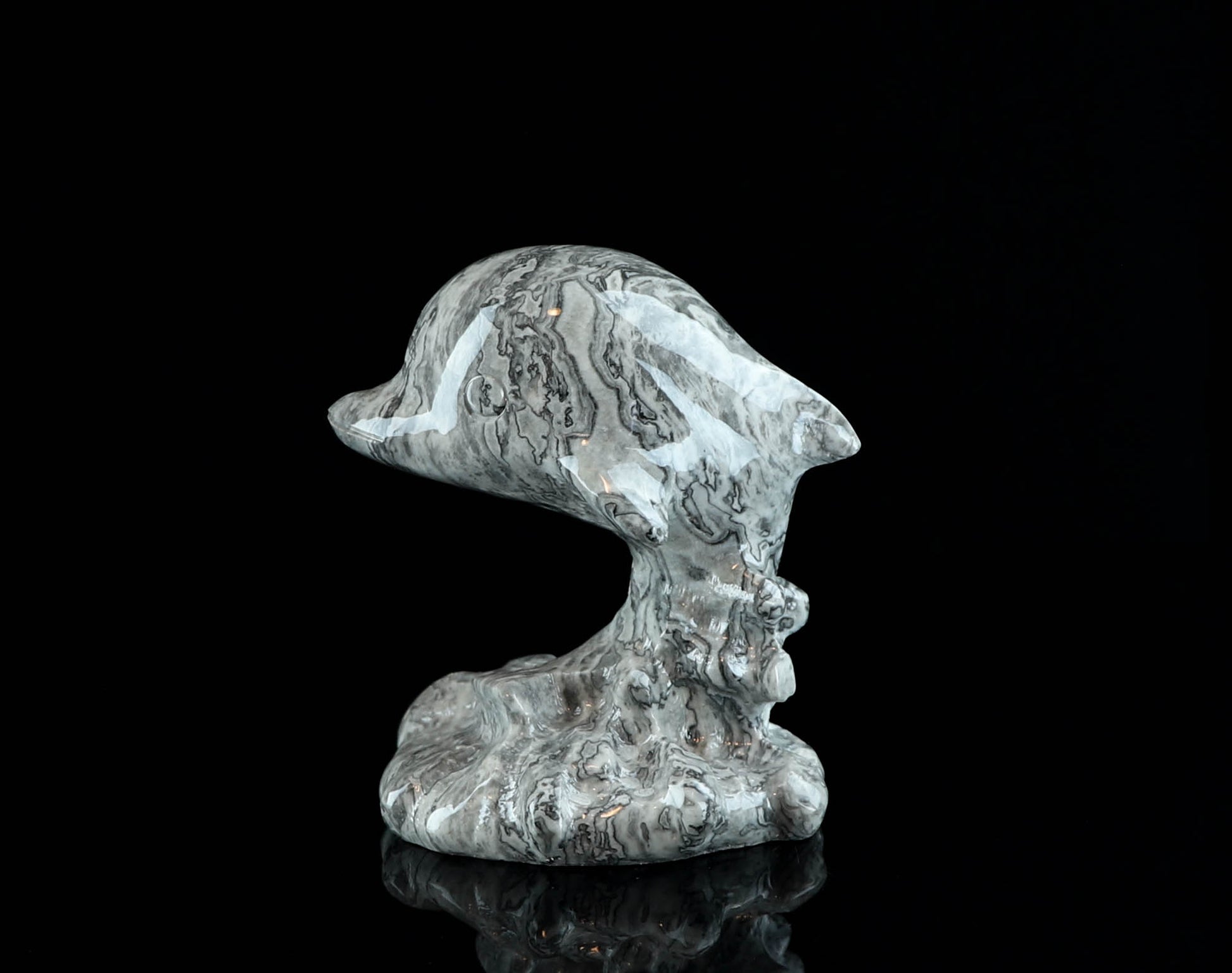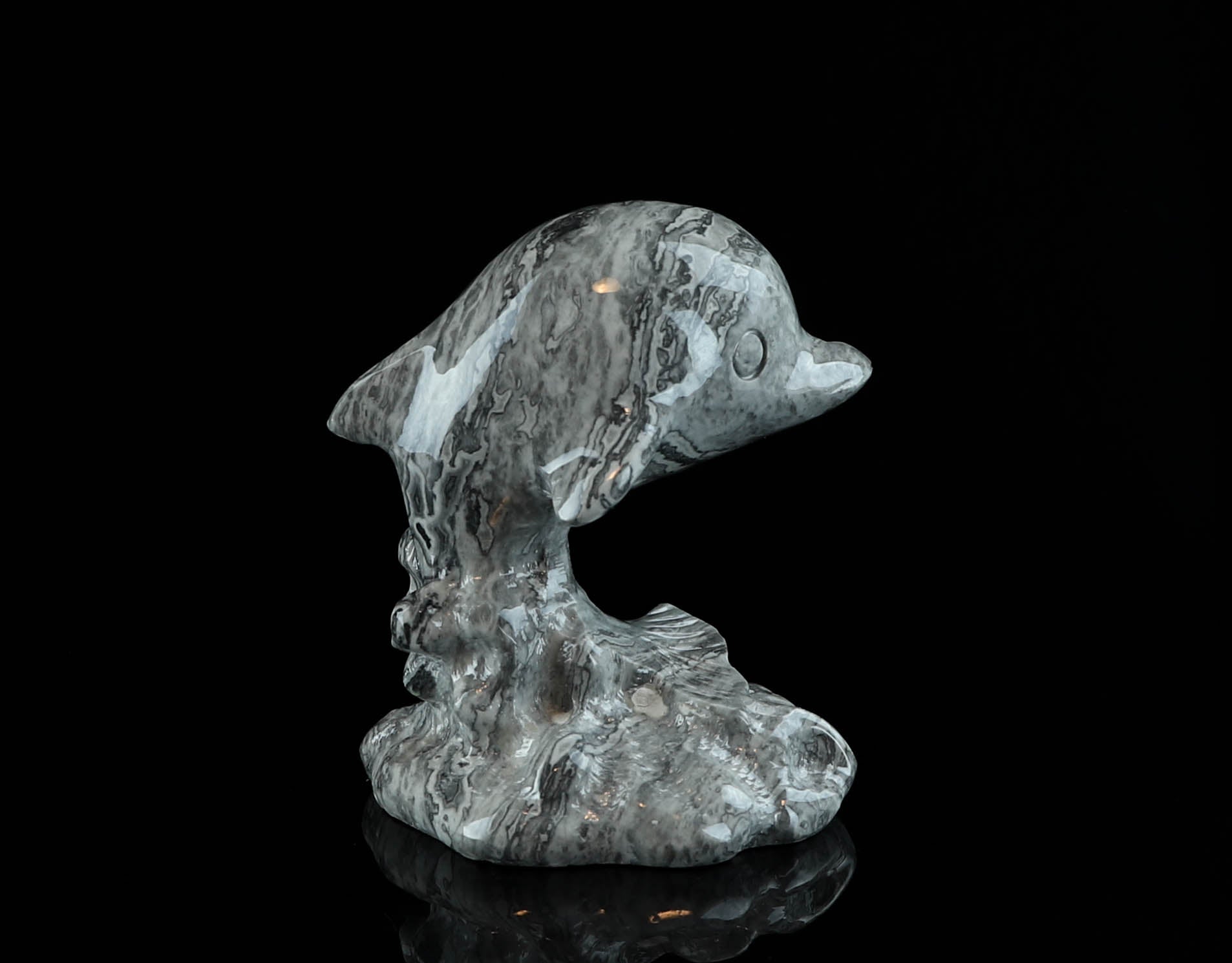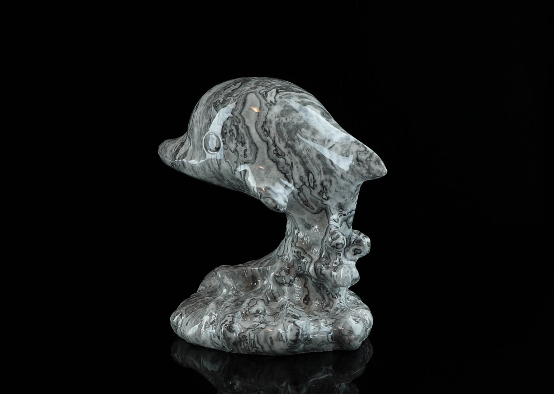 Dolphins represent harmony, peace, and friendship. This beautiful Dolphin is made of 100% natural Agate, hand carved and polished. A beautiful addition to your home décor or crystal collection.