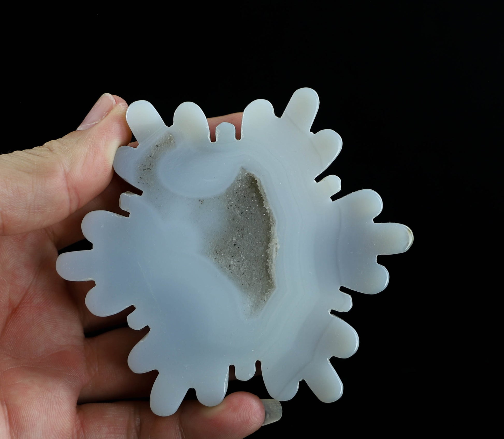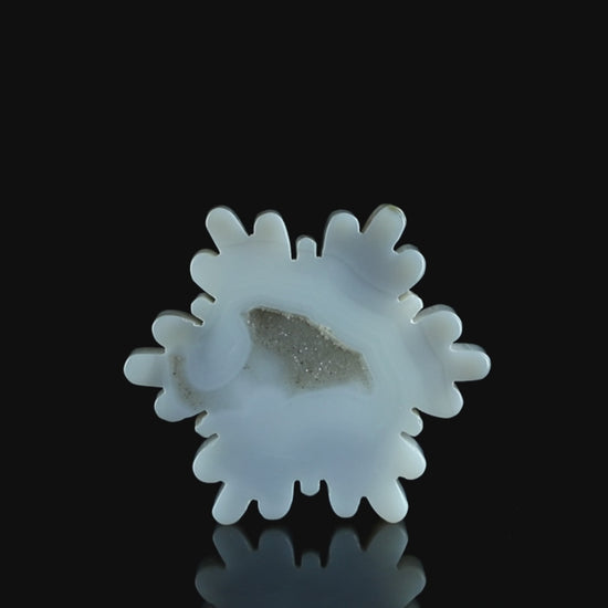 Introducing our exquisite Agate Crystal Snowflake, a truly mesmerizing piece to grace your home this holiday season. Handcrafted with utmost care, this snowflake-inspired crystal ornament showcases the natural beauty of agate crystals in all their glory. Each piece is unique, showcasing intricate patterns and calming hues that are sure to captivate any onlooker. Hang it on your Christmas tree, display it on your mantel, add it to your crystal collection, or gift it to a loved one to add a touch of elegance and a hint of enchantment to your winter wonderland. Elevate your holiday décor and home décor with the timeless charm of our Agate Crystal Snowflake.