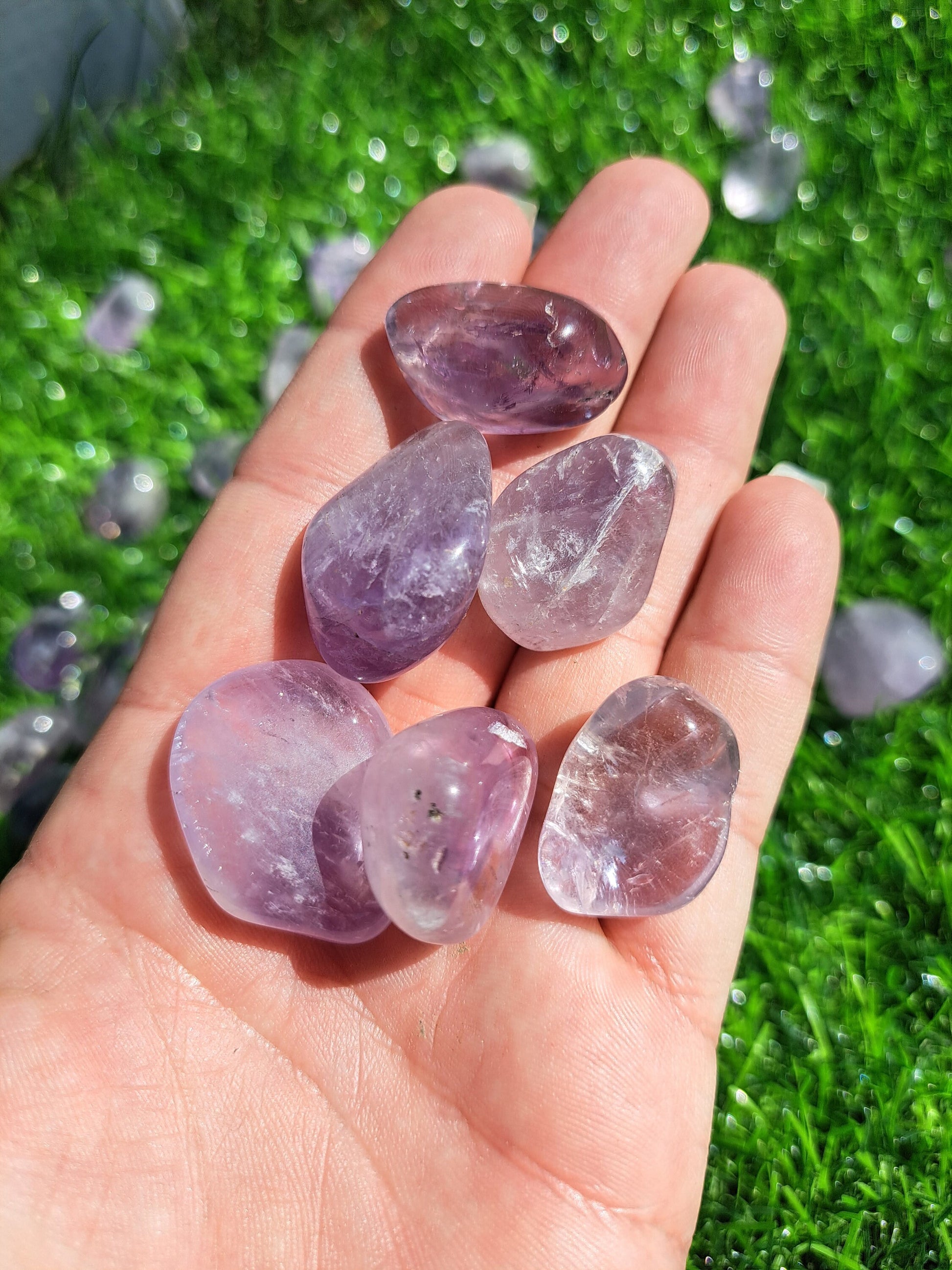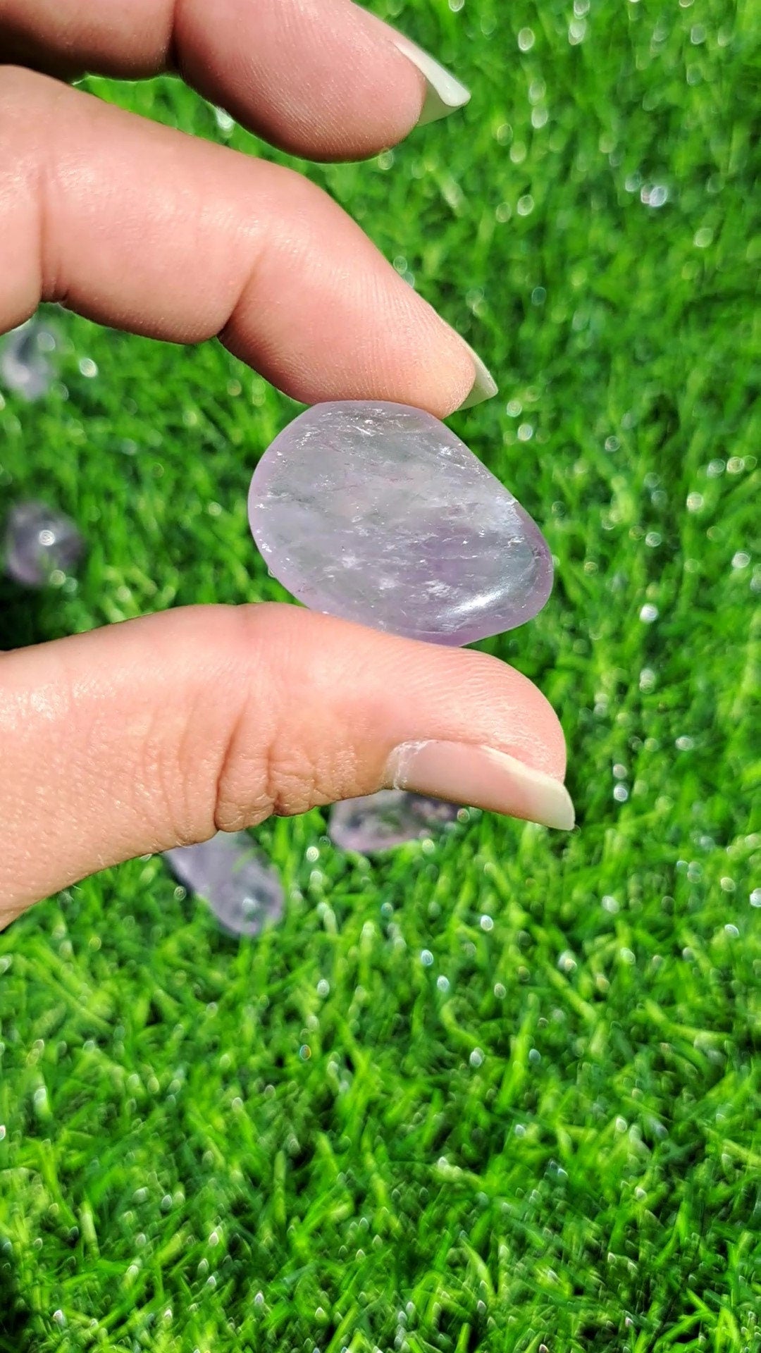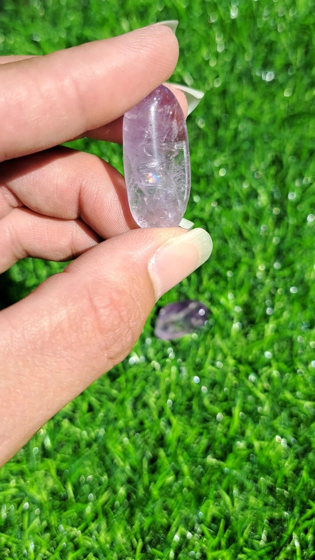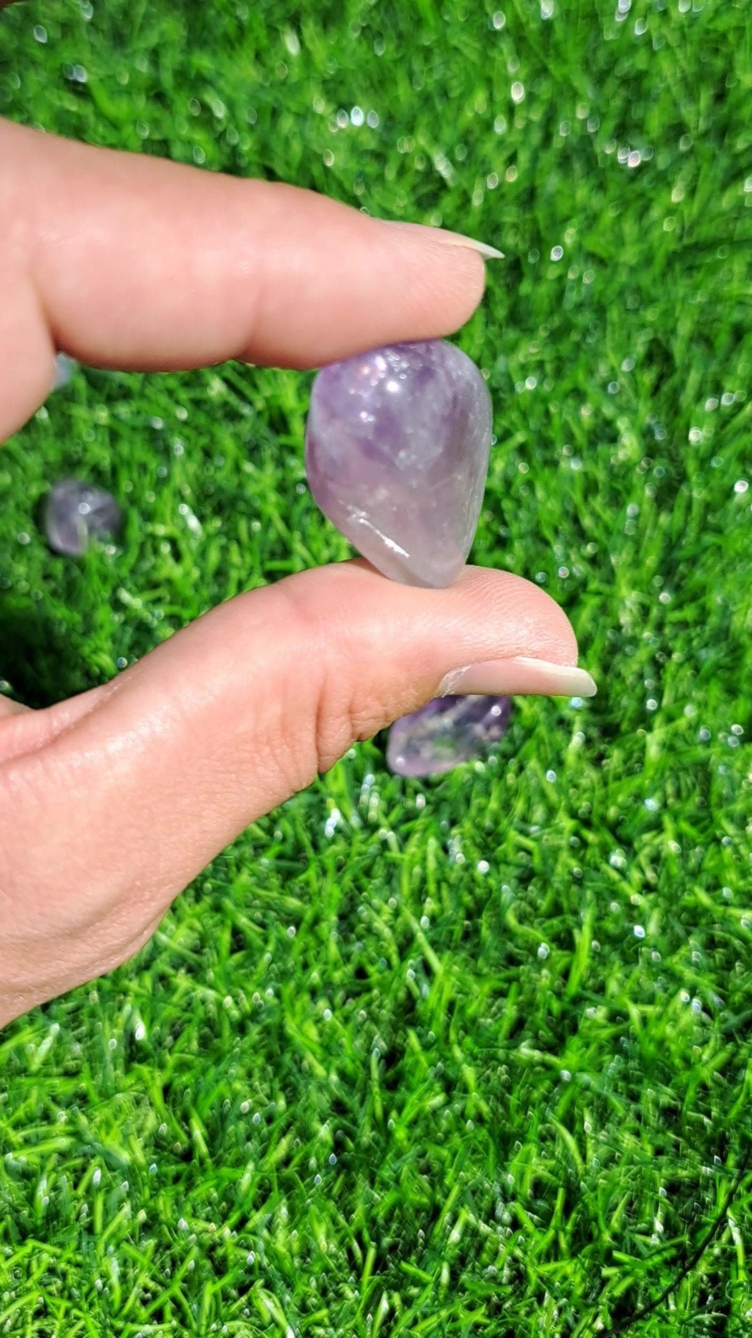 Introducing the captivating Amethyst Crystal Tumble! This exquisite tumbled stone boasts stunning hues of purple and embodies the powerful energy of amethyst. A true gem for crystal enthusiasts, this little beauty is perfect for meditation, chakra balancing, adding to your crystal collection, and enhancing spirituality. With its smooth edges and portable size, it can easily fit into your pocket or a pouch, allowing you to take its soothing vibes with you wherever you go. Whether you're a crystal lover, a collector, or simply seeking some tranquility, this Amethyst Crystal Tumble is a must-have companion on your journey to inner peace and clarity.