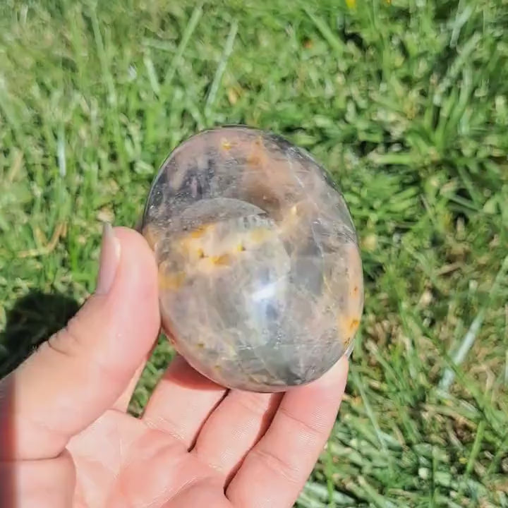 Introducing the captivating Black Moonstone Palm Stone! This unique gem is an ethereal beauty that effortlessly combines the elegance of black tones with the mesmerizing glow of moonstone. Crafted to fit perfectly in the palm of your hand, this palm stone serves as a powerful tool for grounding and protection. As you hold it close, feel the positive energy emanating from within, gently guiding you on a journey of self-discovery and balance. Perfect for meditation, crystal healing, or simply as a stunning addition to your collection, this Black Moonstone Palm Stone is a must-have for those seeking a touch of mysticism in their lives. Let its enchanting presence cloak you in tranquility and inspire you to embrace the magic that lies within.