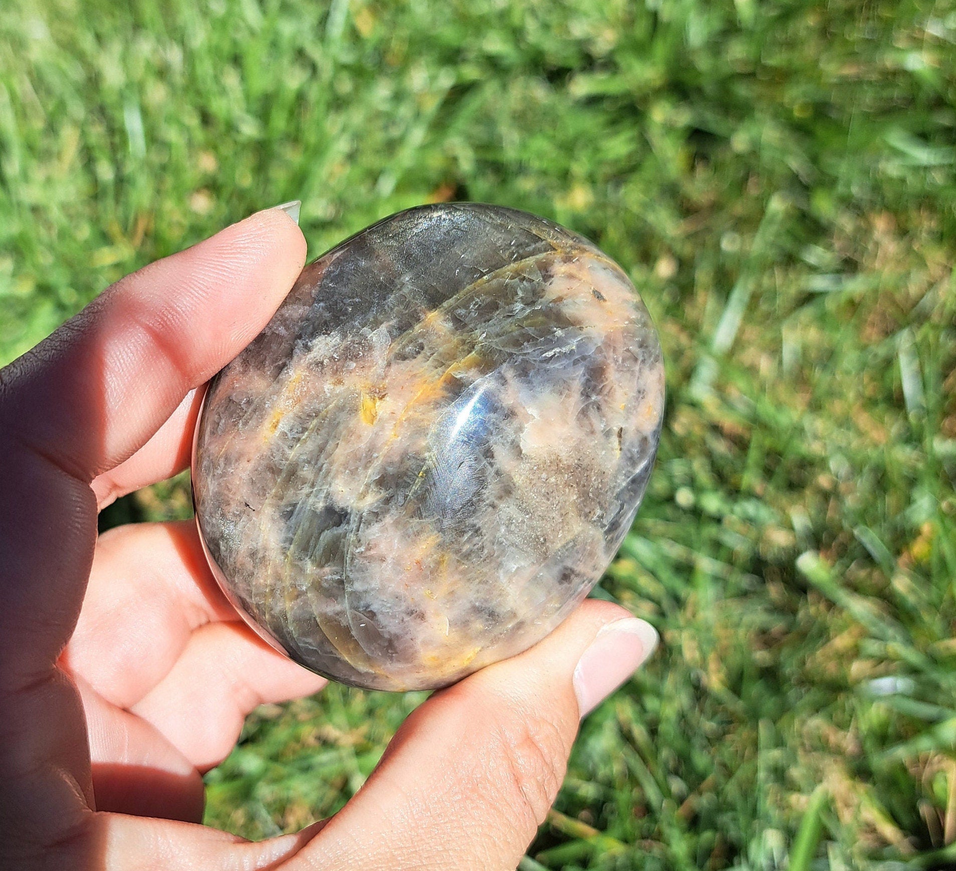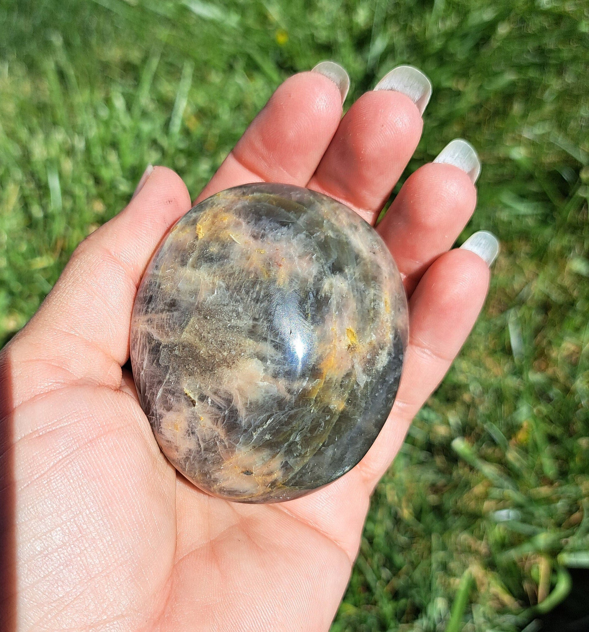Black Moonstone Palm Stone - Intuition, Protection, and Energy Balancing