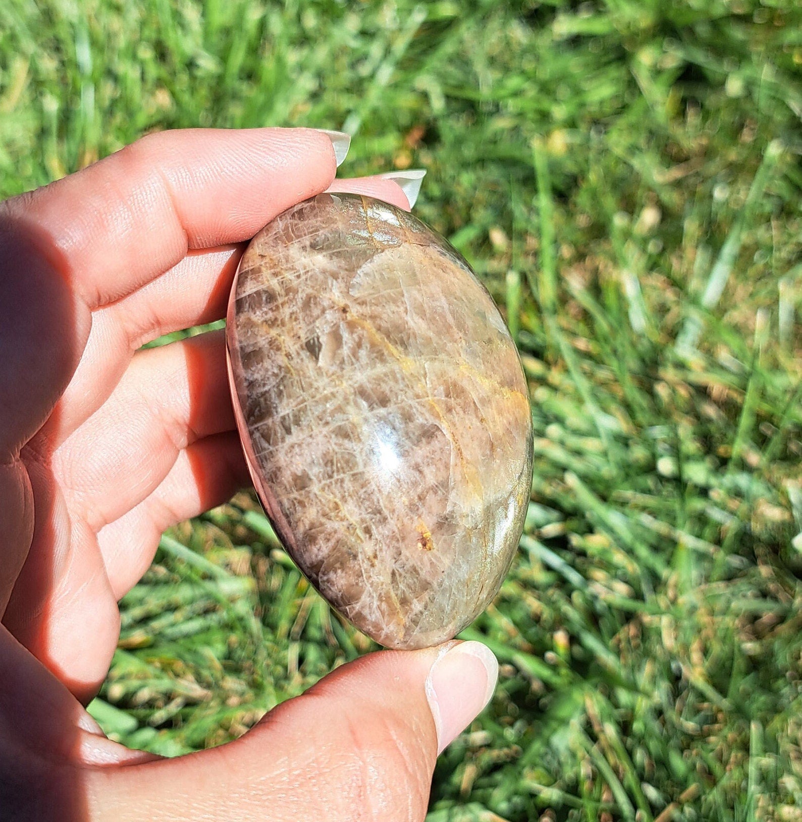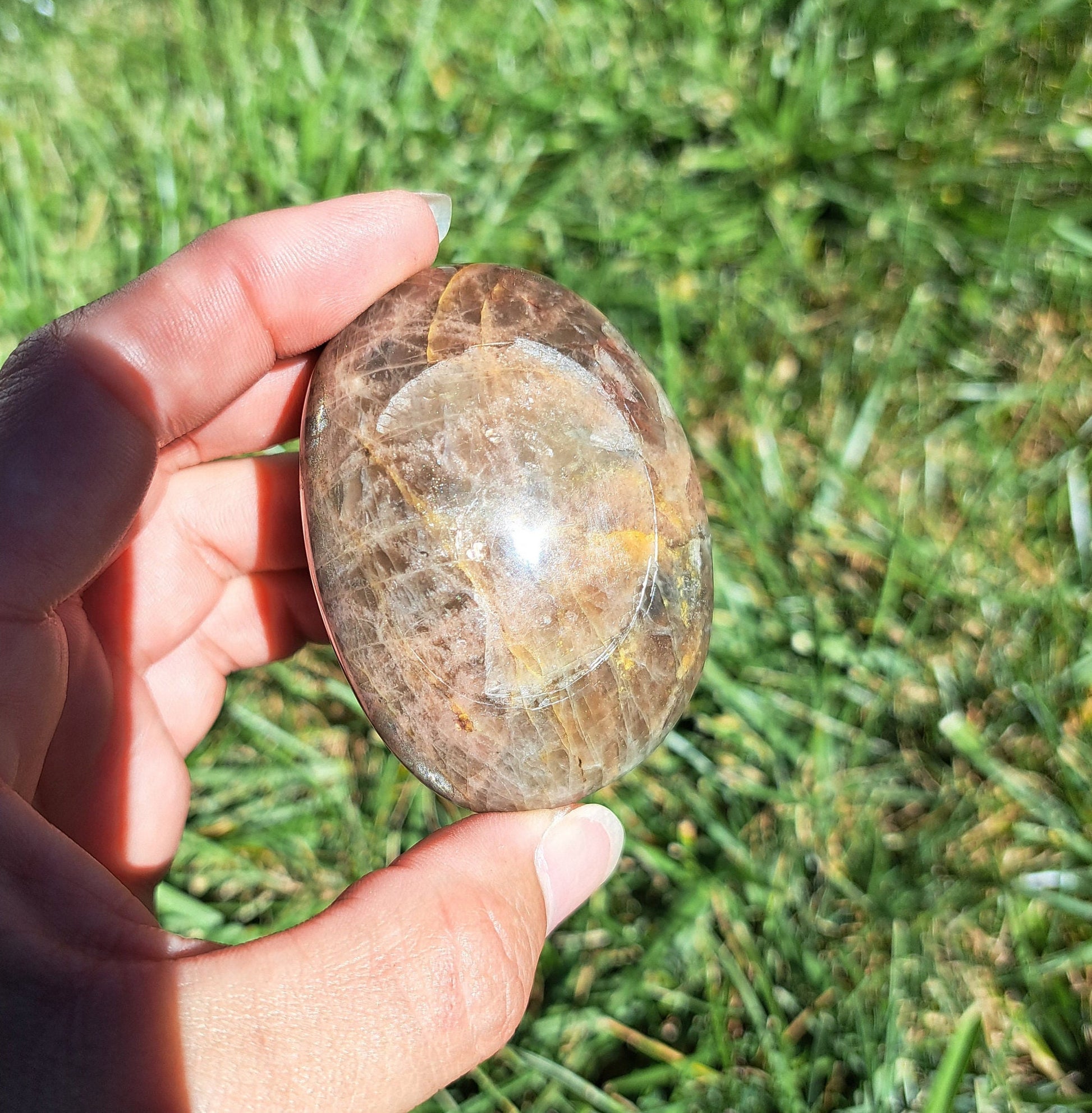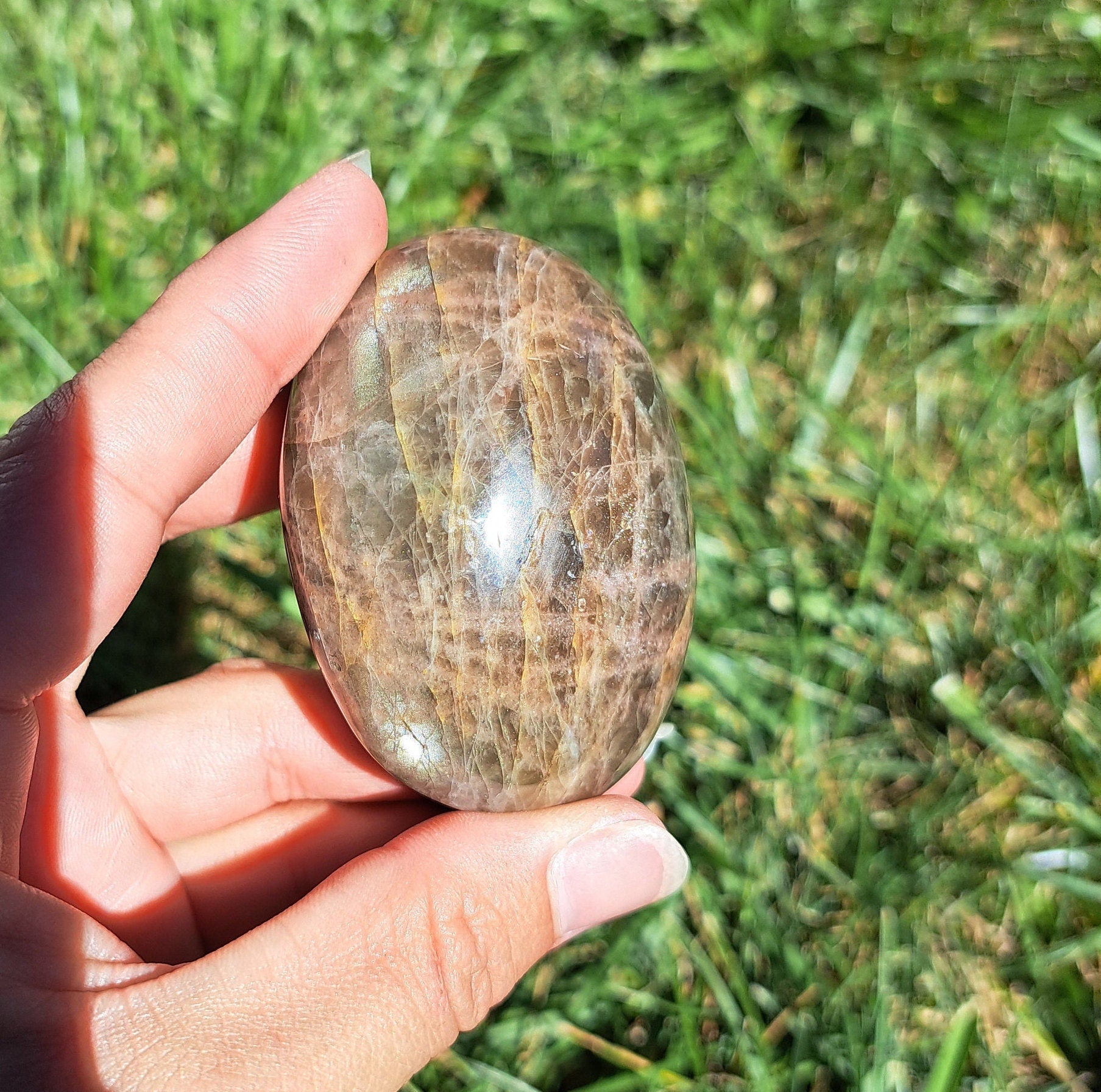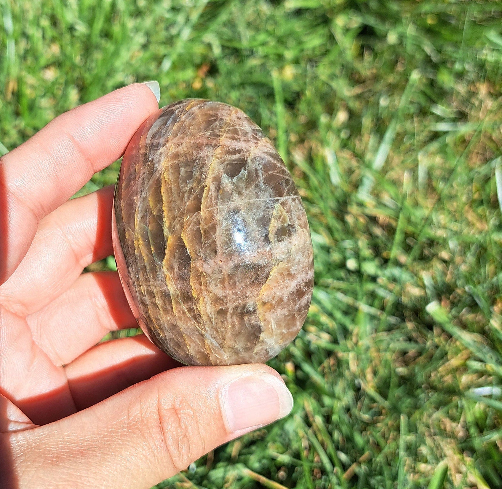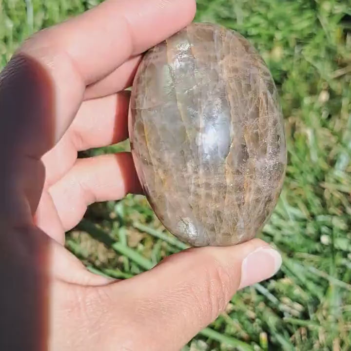 Introducing our stunning Black Moonstone Palm Stone! This exquisite crystal is a must-have for any crystal enthusiast or spiritual seeker. The sleek black surface mesmerizes with its captivating shine, while the unique moonstone properties work wonders for balance, intuition, and emotional healing. Designed to fit perfectly in the palm of your hand, this palm stone is not only aesthetically pleasing but also acts as a powerful energy tool. Whether you are meditating, practicing Reiki, or simply seeking comfort and grounding, this Black Moonstone Palm Stone is a delightful companion that will enhance your spiritual journey. Add it to your crystal collection today and experience the transformative power of this enchanting gemstone.