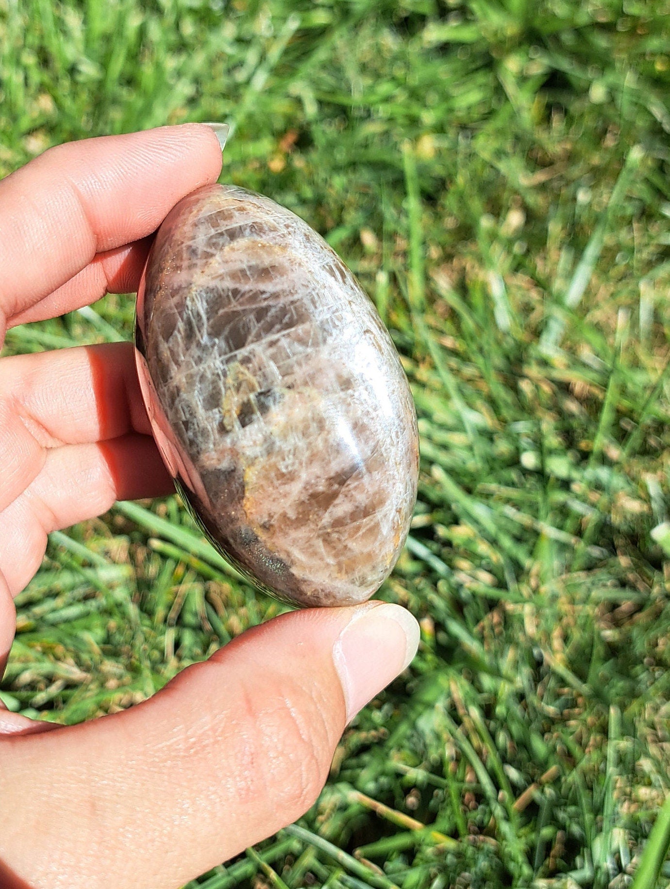 Black Moonstone Palm Stone - Meditation, Intuition, Protection