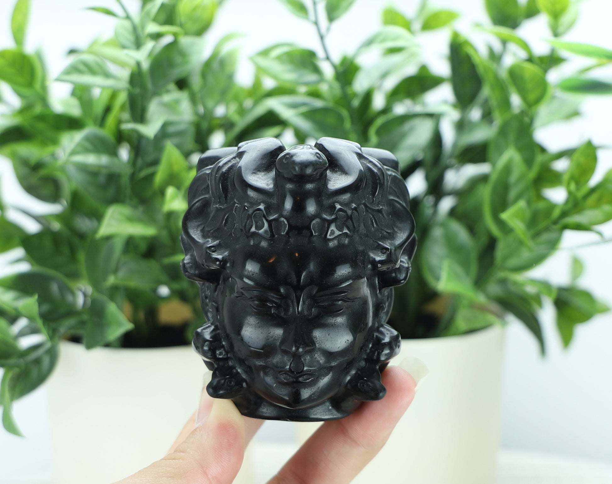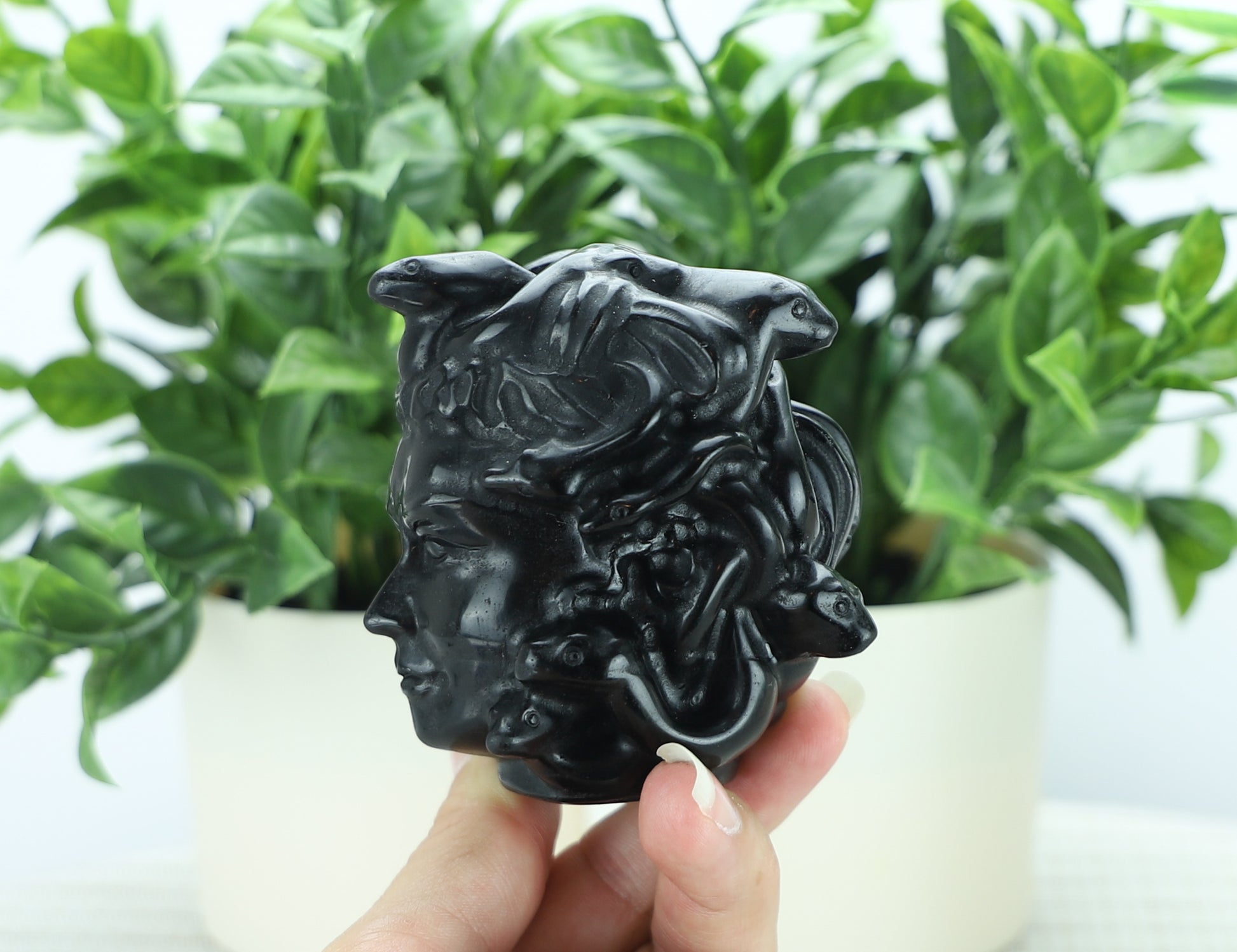 Black Obsidian Medusa Head Carving – Crystal Sculpture for Protection, Shadow Work & Home Decor