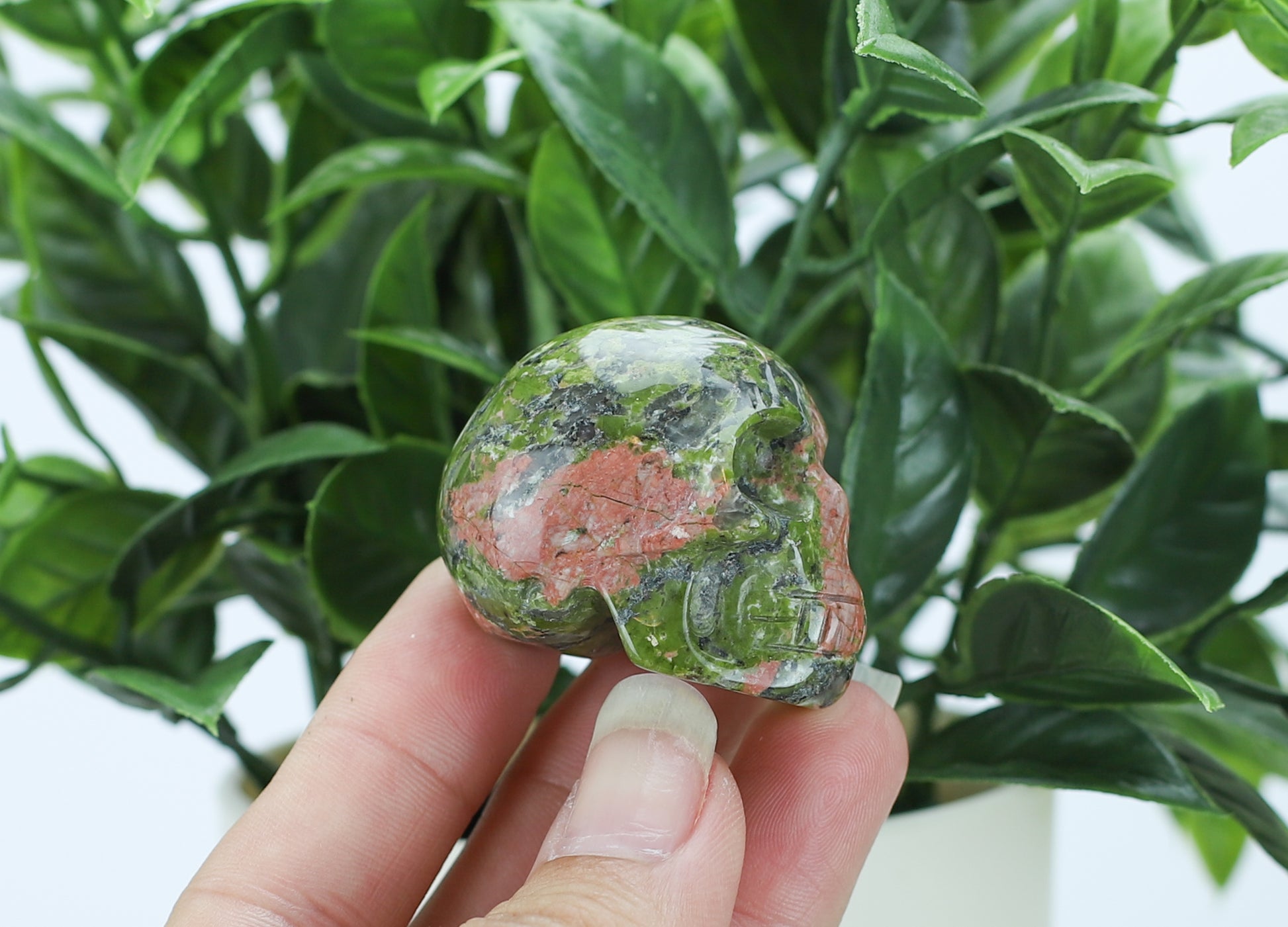 Embrace emotional healing and soulful transformation with this Unakite Mini Skull Carving—a beautiful blend of nature’s power and ancient symbolism. Hand-carved from natural Unakite stone, this mini crystal skull is rich with earthy green and soft pink hues that symbolize the harmony between heart and earth.