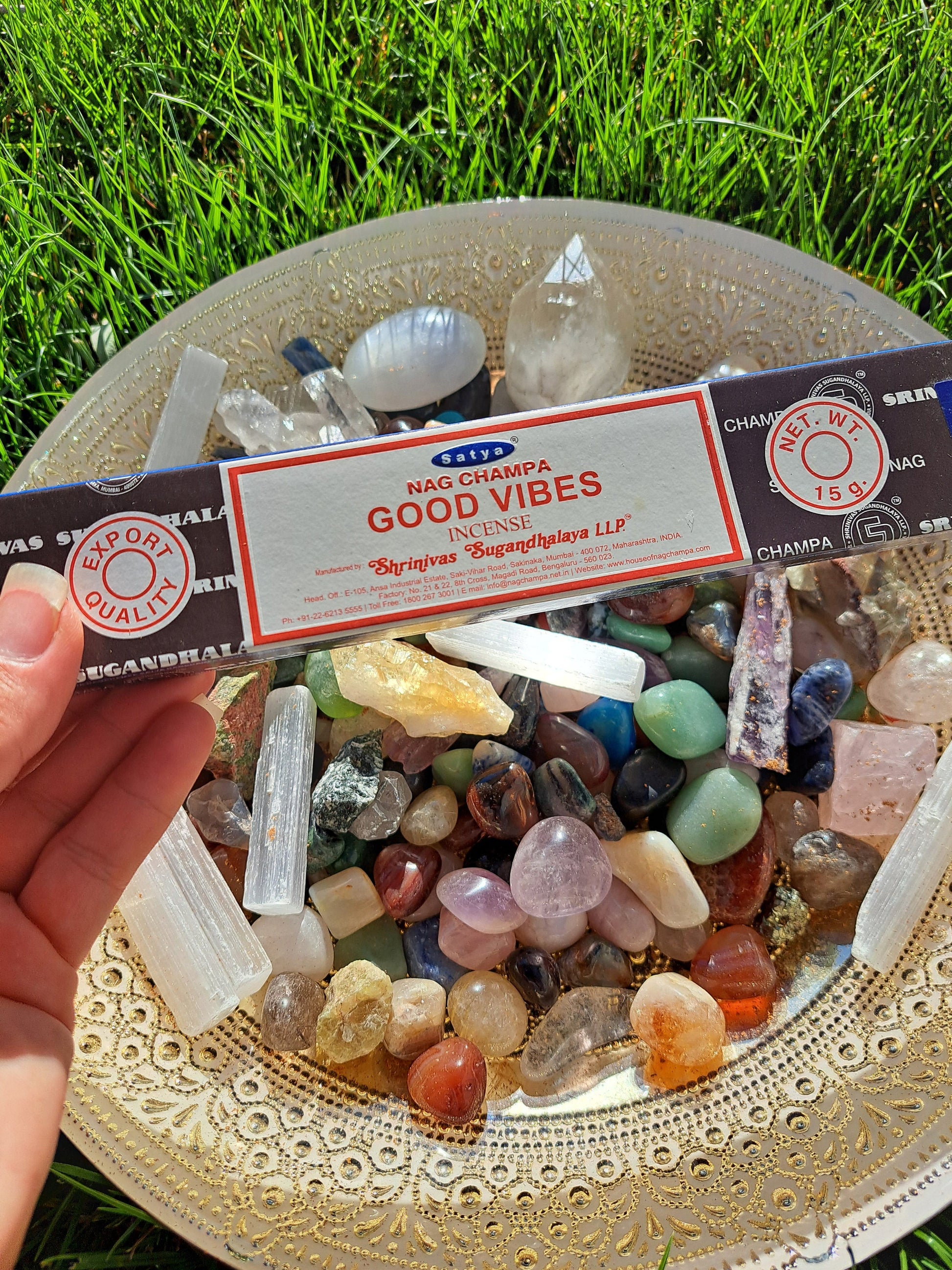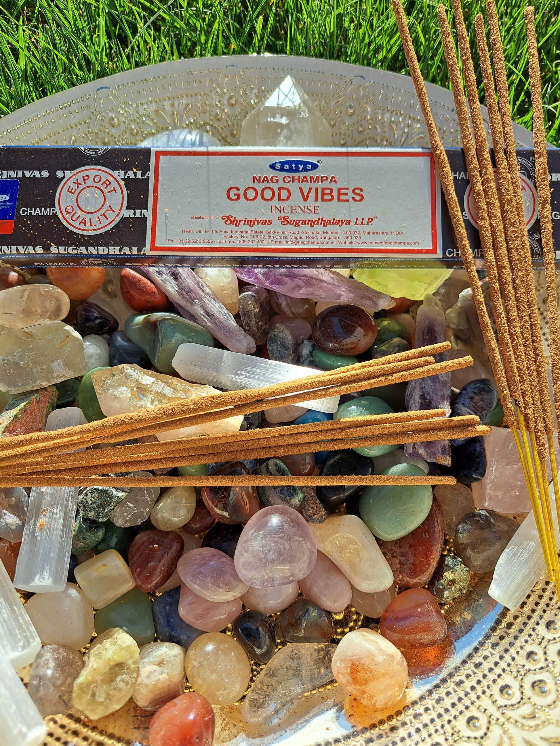 Introducing our Good Vibes Incense Sticks, created to infuse your surroundings with positive energy and uplifting fragrances. Each stick is carefully handcrafted with love and intention, using only the finest organic ingredients. A harmonious blend of soothing aromas, these incense sticks are designed to help you relax, meditate, and create a peaceful ambiance. Let the gentle wafts of these Good Vibes Incense Sticks enhance your living space, inviting tranquility and inner peace into your everyday life. Perfect for spiritual practices, yoga sessions, or simply to create a serene atmosphere at home, these incense sticks are a mindful gift to yourself or a loved one. Embrace positivity and elevate your space with our Good Vibes Incense Sticks today.
