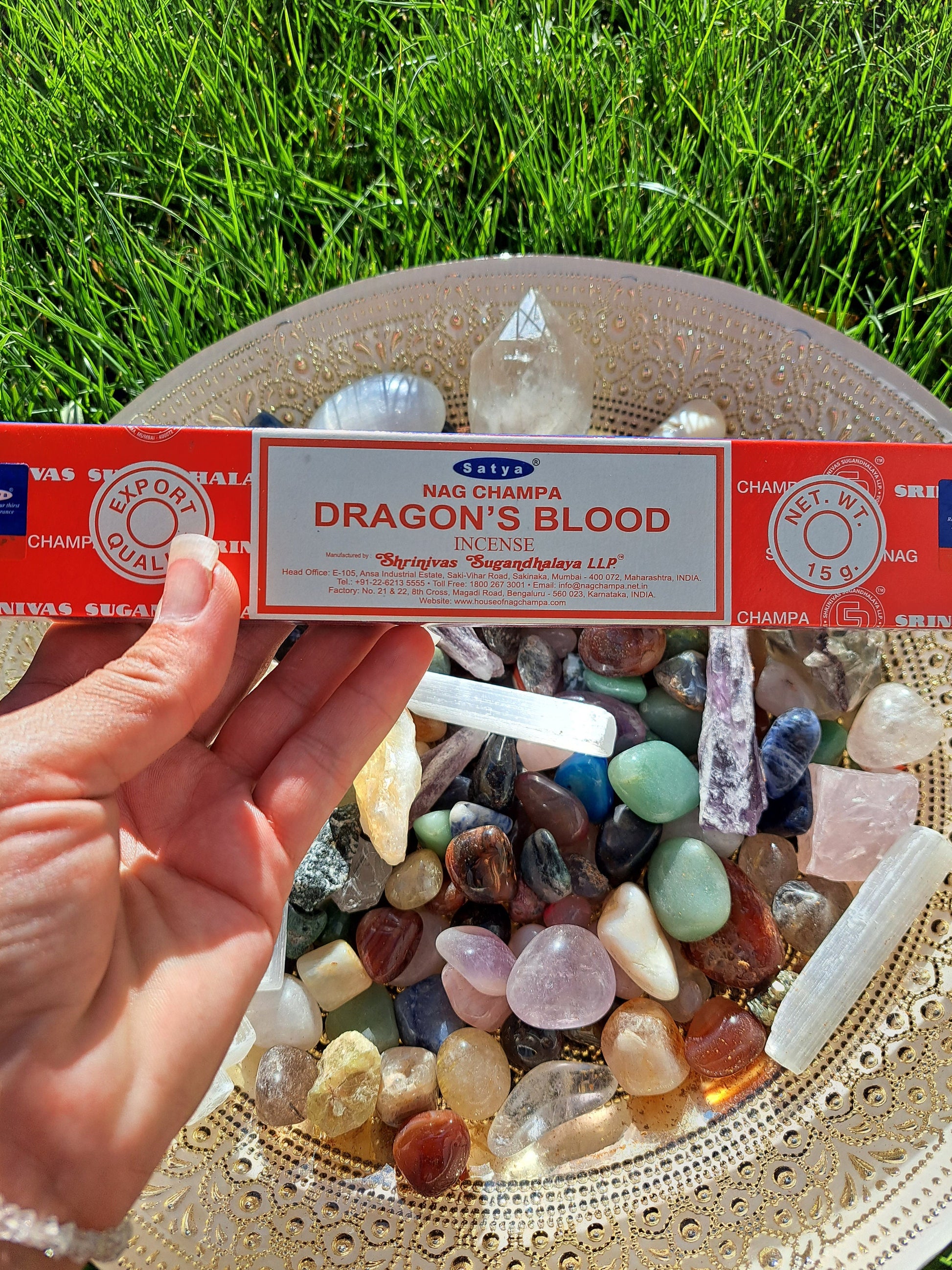 Introducing our enchanting Dragons Blood Incense Sticks! Ignite your senses and transport yourself to a realm of mystical wonders with the deep, aromatic fragrance of this ancient incense. Handcrafted from the finest natural ingredients, these incense sticks exude a captivating scent that is both comforting and empowering. As the smoky tendrils of Dragons Blood fill the air, feel the energy shift around you, creating an atmosphere of tranquility and contemplation. Perfect for meditation, rituals, or simply creating a serene ambiance in your space, these incense sticks will fill your surroundings with an aura of magic and intrigue. Allow yourself to be captivated by the allure of Dragons Blood and infuse your day with a touch of enchantment.