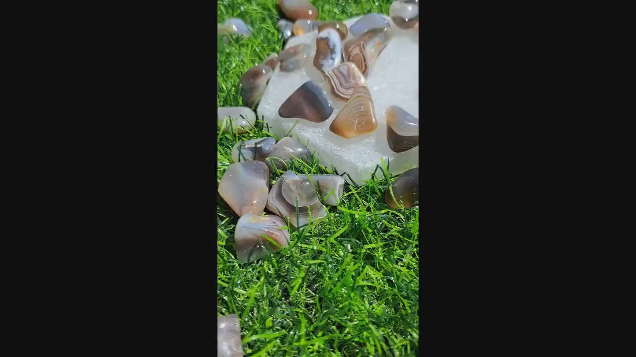 Introducing our stunning Natural Botswana Agate Crystal Tumble stones! These exquisite gems showcase beautiful earthy tones and mesmerizing patterns, making them the perfect addition to your crystal collection. With their grounding properties, Botswana Agate is known to bring a sense of stability and balance, enabling you to find inner peace during chaotic times. Each tumble stone is carefully handpicked to ensure its unique beauty and energy. Whether you are a crystal enthusiast or simply looking to enhance your spiritual journey, these Natural Botswana Agate Crystal Tumble stones are a must-have. Add them to your meditation space, jewelry creations, or place them in your home décor to invite calmness and harmony into your surroundings. Embrace the natural beauty and energy of Botswana Agate with these exquisite tumbled stones.
