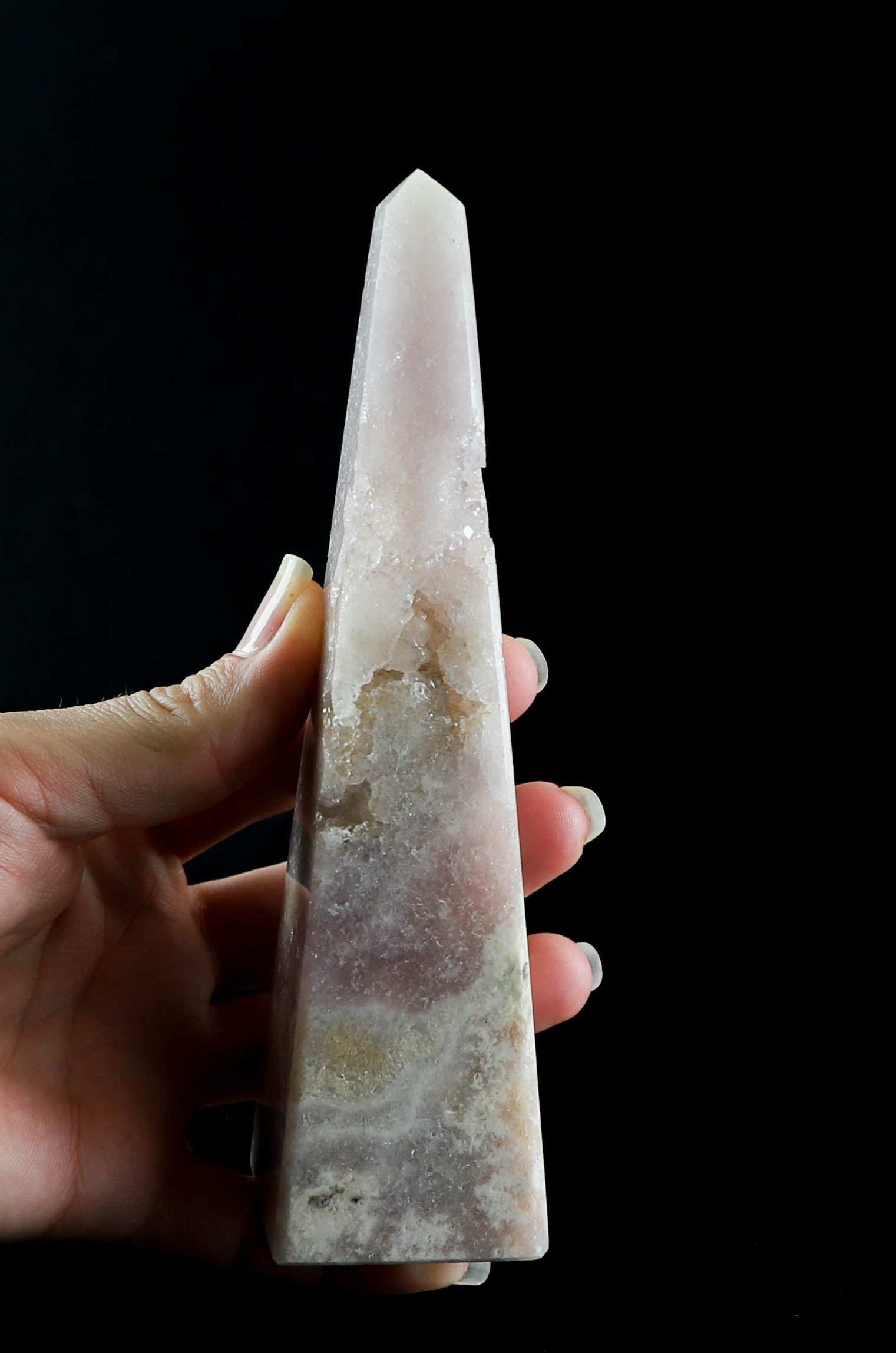 Introducing our stunning Pink Amethyst Tower! This mesmerizing crystal is a true gem, radiating elegance and beauty in every facet. With its delicate pink hue and ethereal energy, this tower is the perfect addition to your crystal collection or home décor. Crafted with utmost care, each tower is unique, showcasing magnificent natural formations that will capture your heart. Whether you're seeking spiritual healing or simply searching for a breathtaking centerpiece, this Pink Amethyst Tower is sure to enchant and inspire. Embrace the harmonizing vibes and fill your space with tranquility and positive energy. Upgrade your crystal game today with this captivating Pink Amethyst Tower!