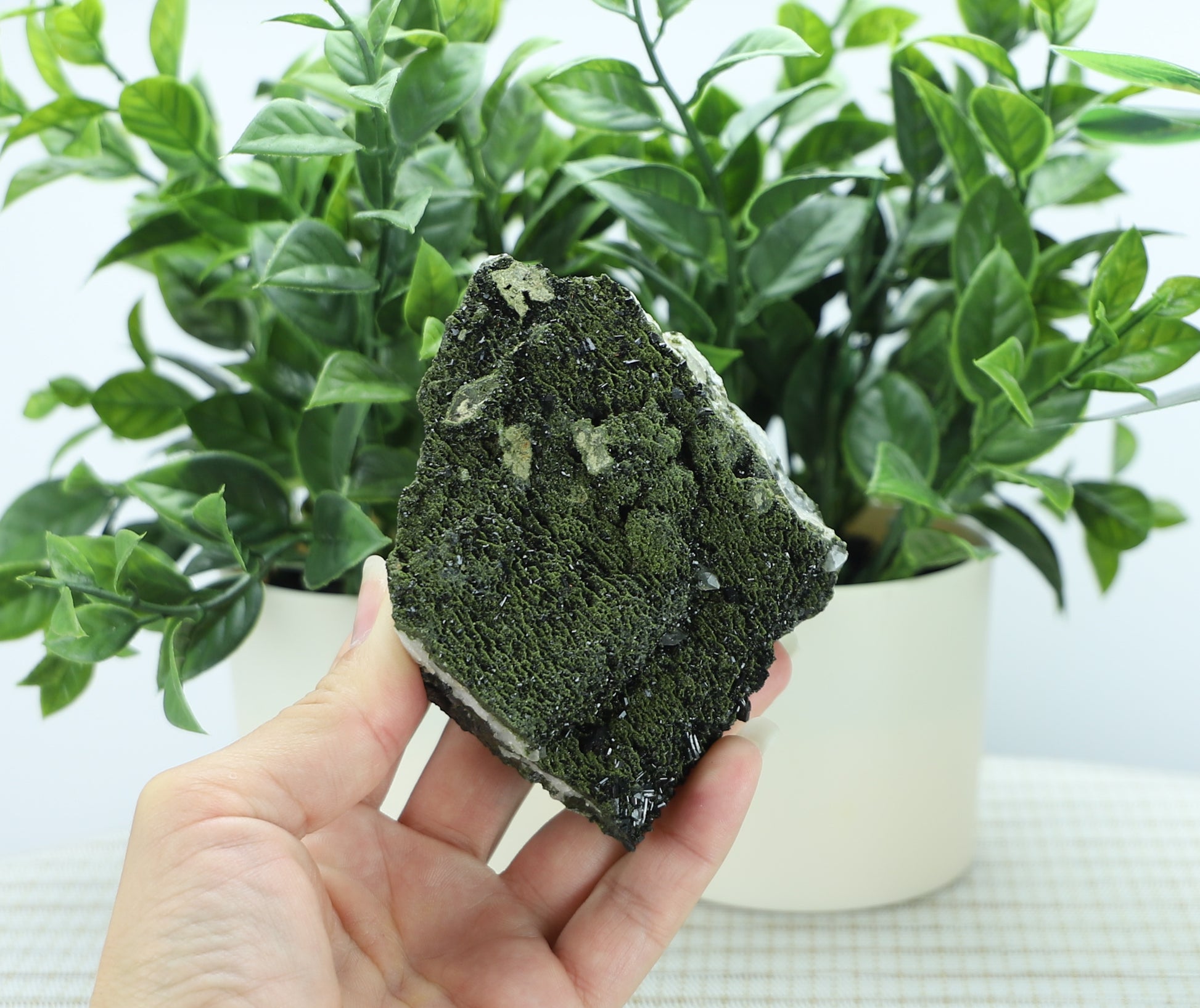 Bring the magic of a fairy forest into your space with these stunning quartz and epidote crystals. Each piece is 100% nature made, filled with sparkling green inclusions that resemble moss, vines, and hidden groves.