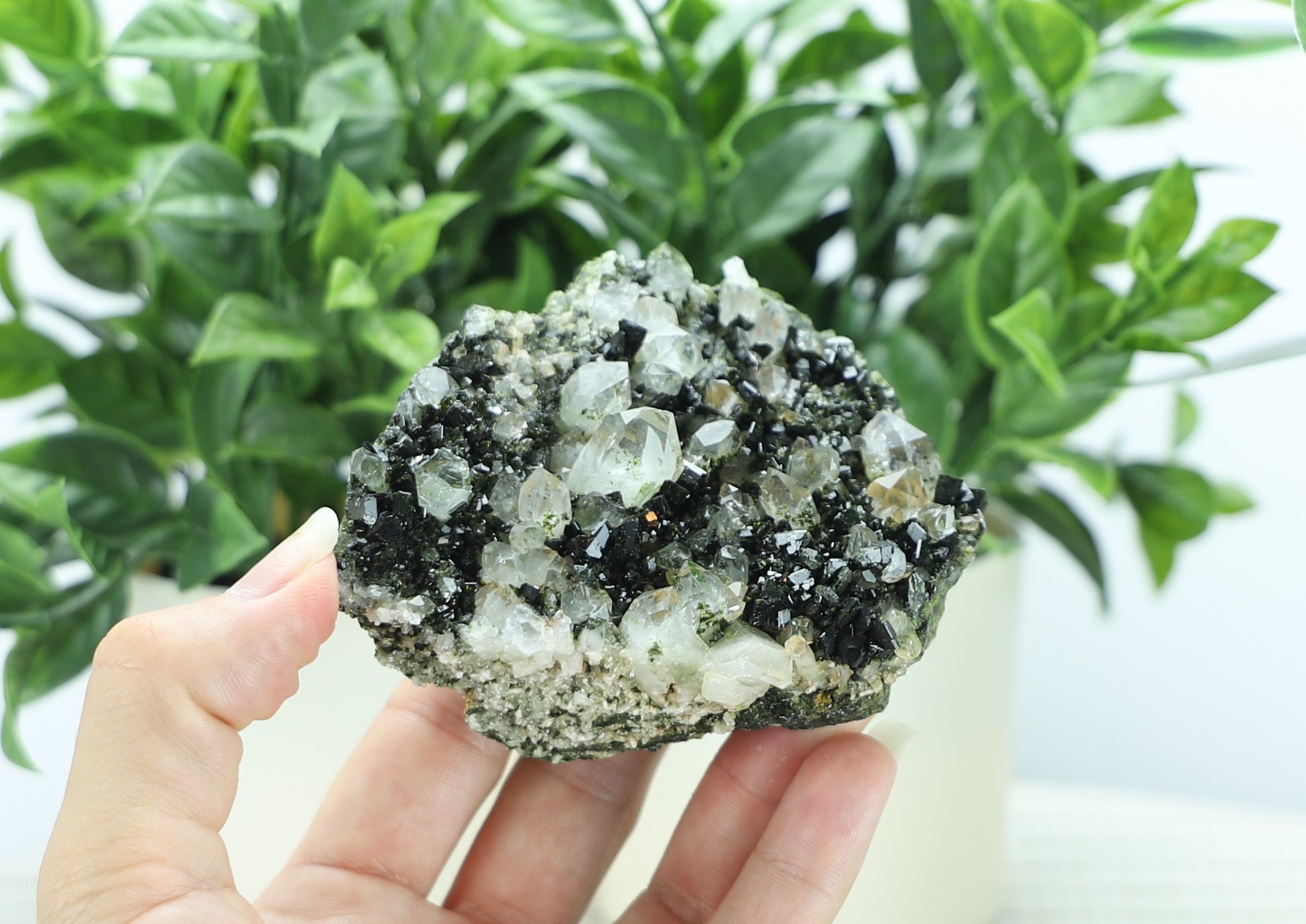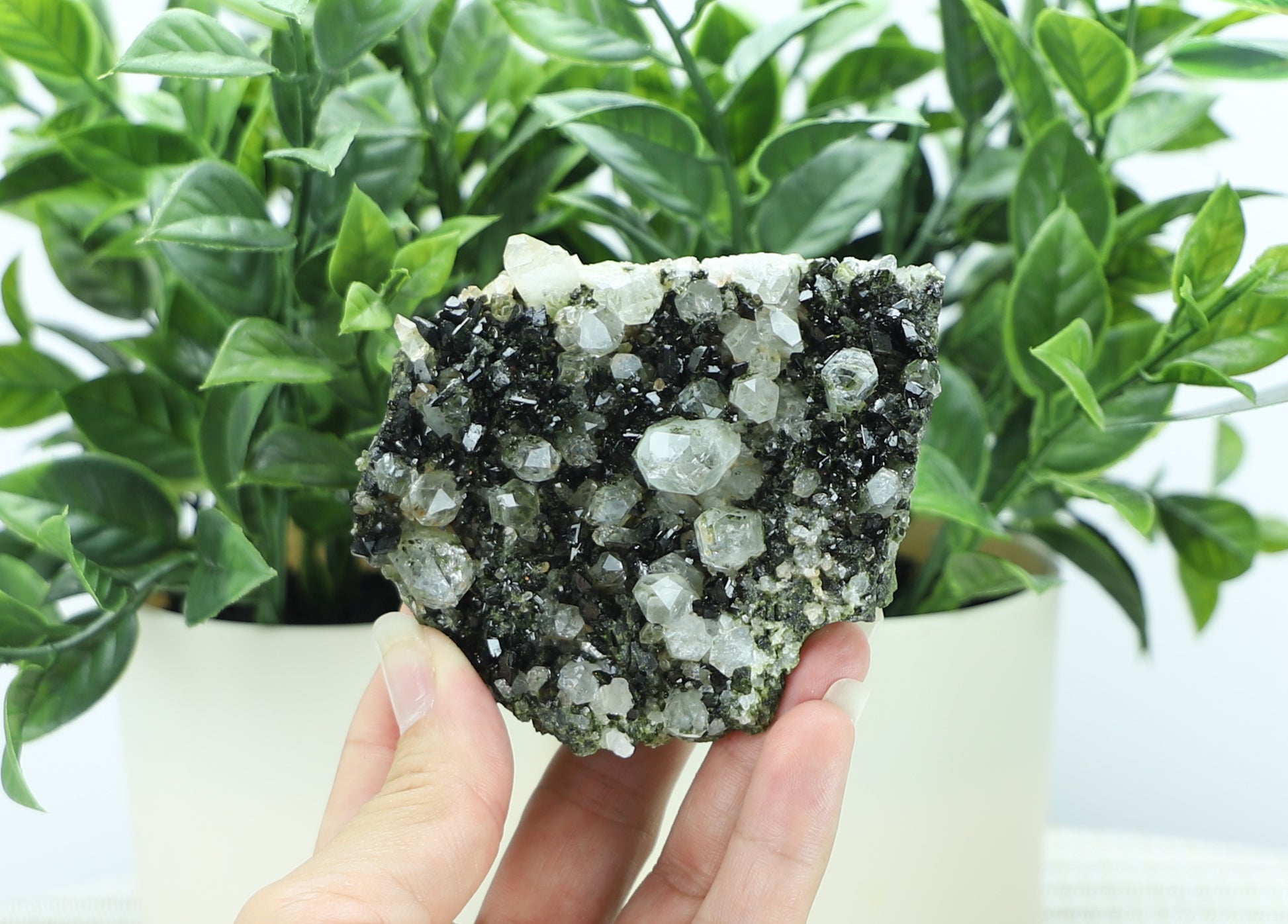 Bring the magic of a fairy forest into your space with these stunning quartz and epidote crystals. Each piece is 100% nature made, filled with sparkling green inclusions that resemble moss, vines, and hidden groves.