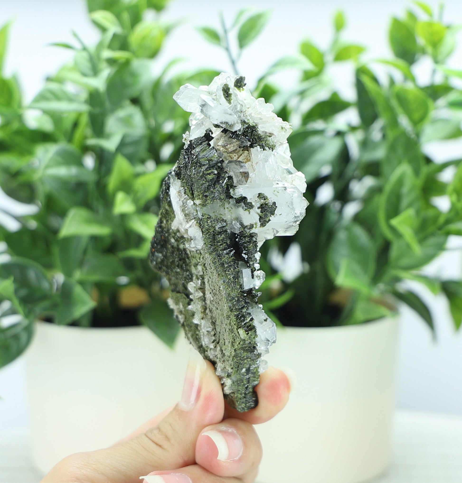 Bring the magic of a fairy forest into your space with these stunning quartz and epidote crystals. Each piece is 100% nature made, filled with sparkling green inclusions that resemble moss, vines, and hidden groves.