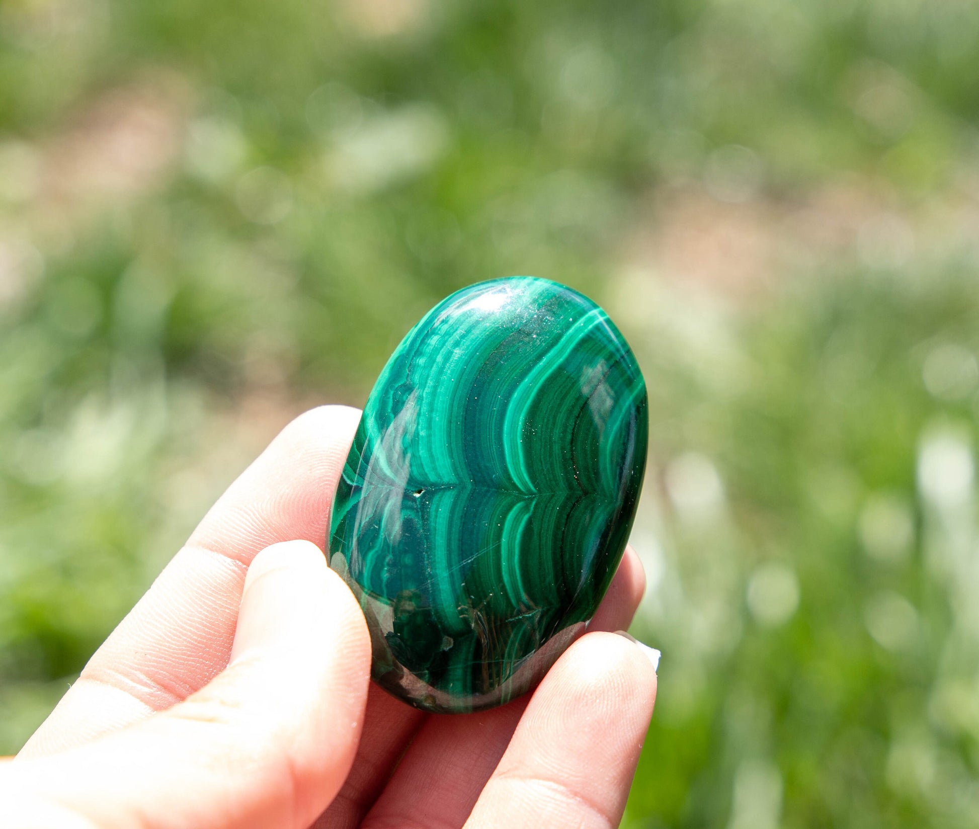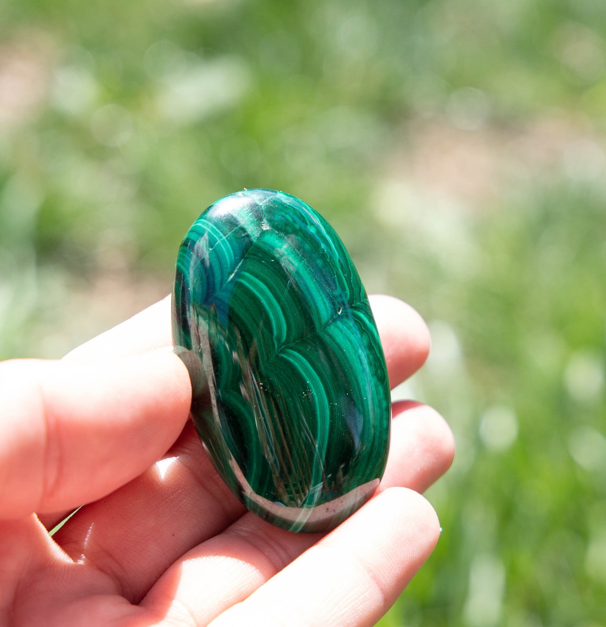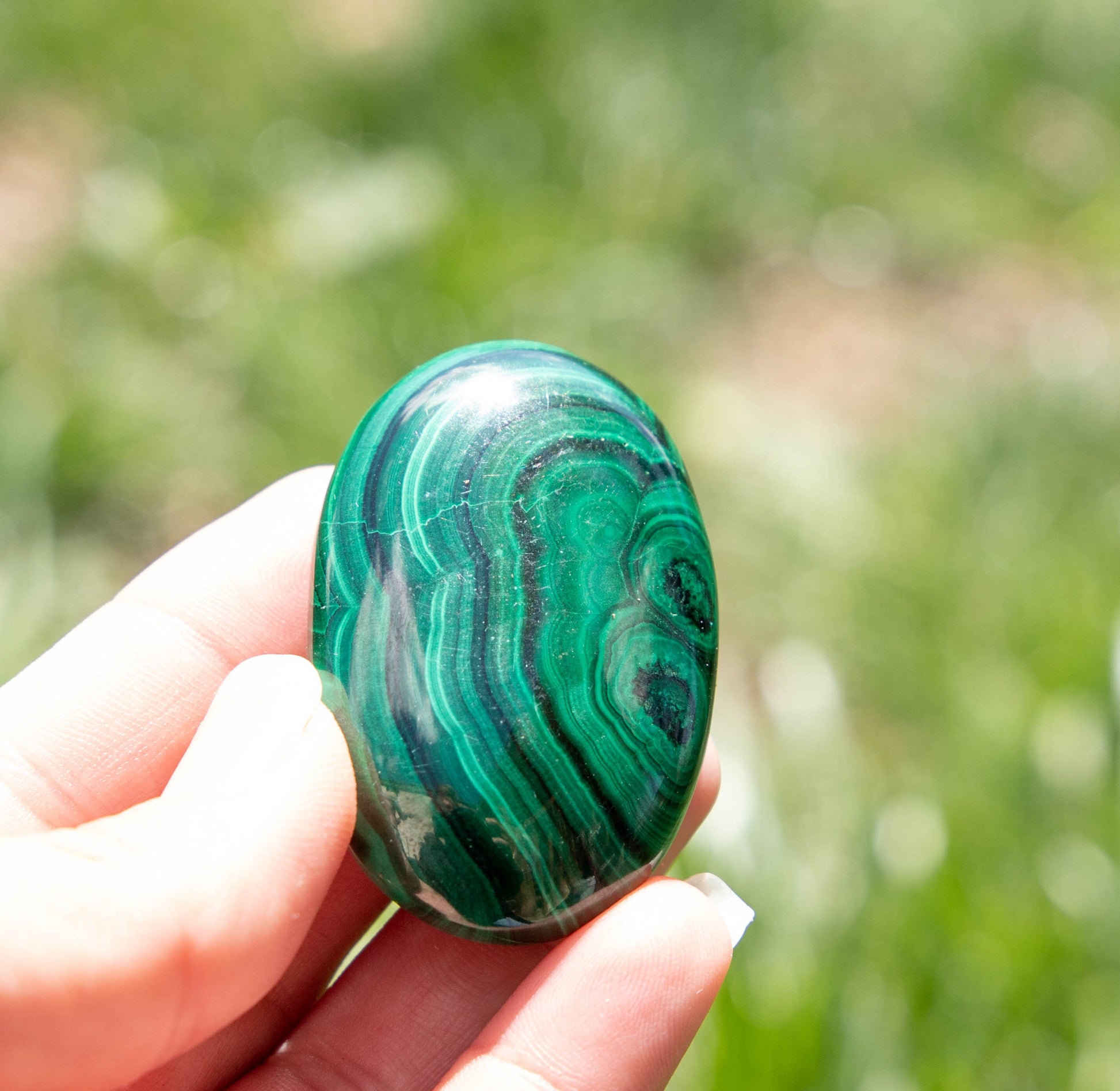 Genuine Malachite Palm Stone - Handcrafted Crystal for Energy Healing