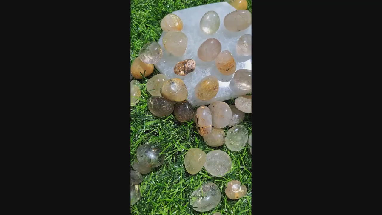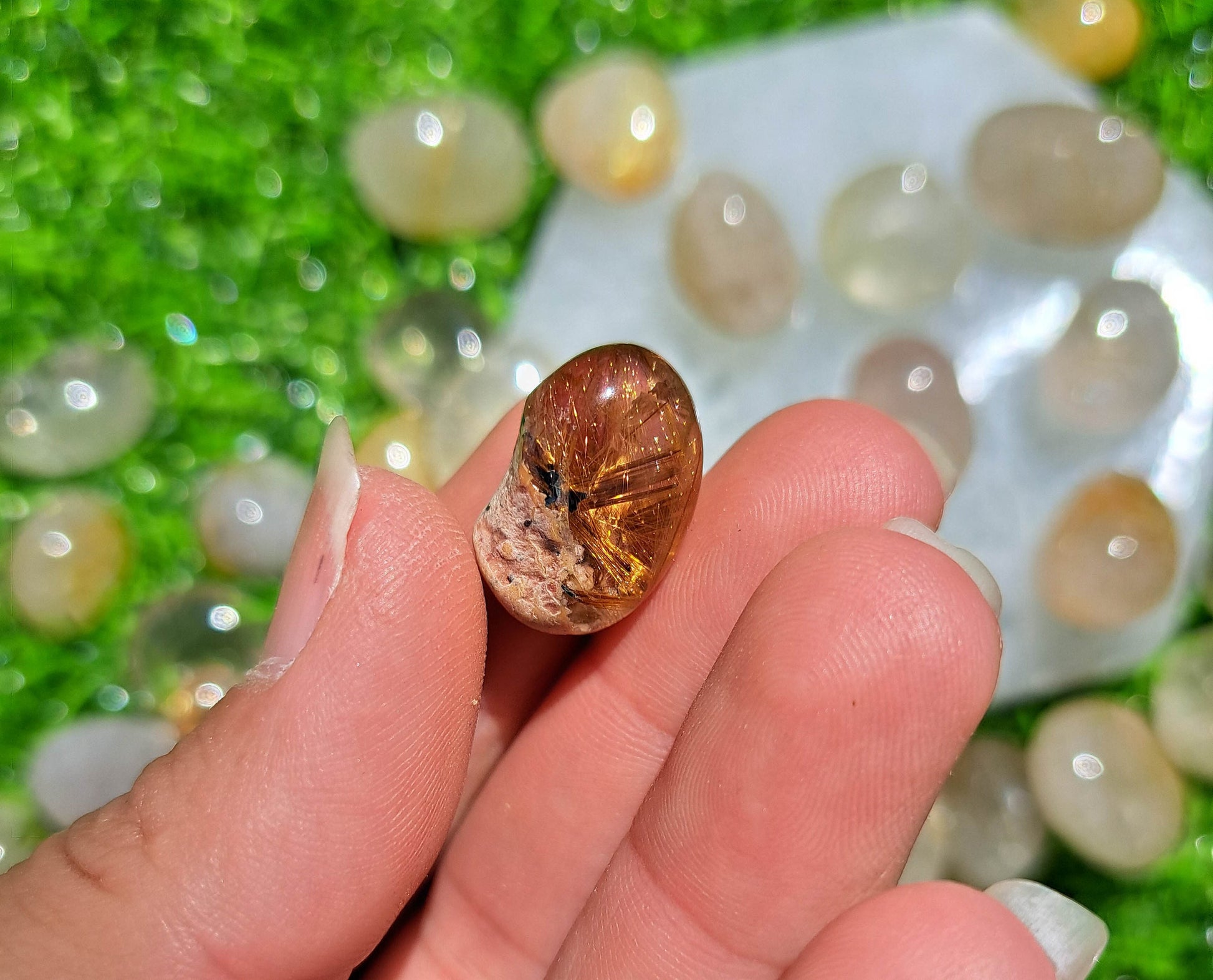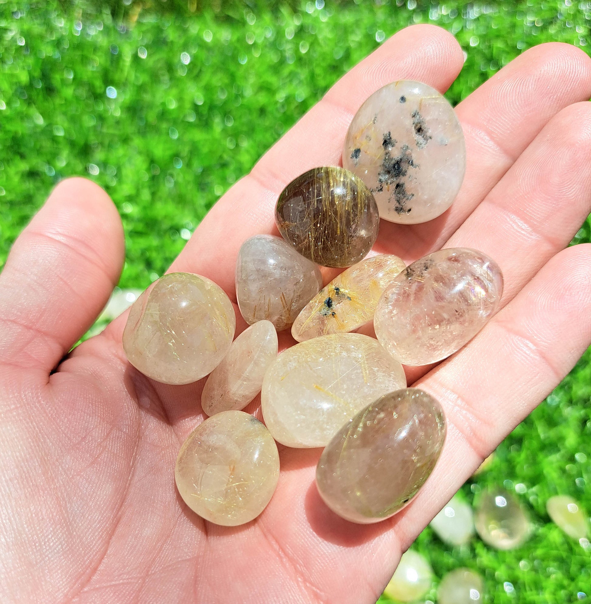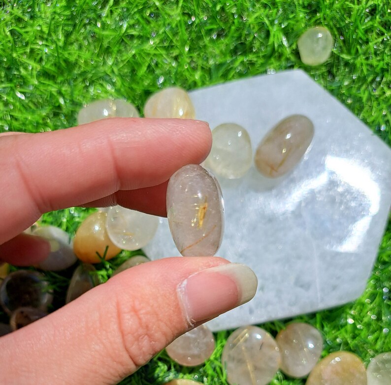 *You will receive 1 hand selected Golden Rutile Quartz Tumble. Sizes vary from 0.5" - 1" approximately. Each stone is unlike the other, unique and beautiful. Each stone varies in size and pattern, and some even contain garden with the rutile!