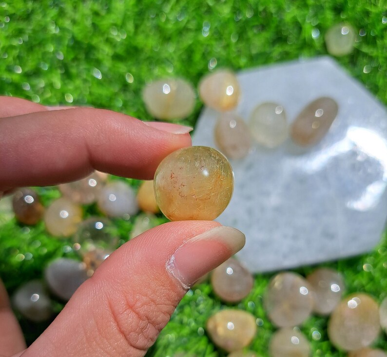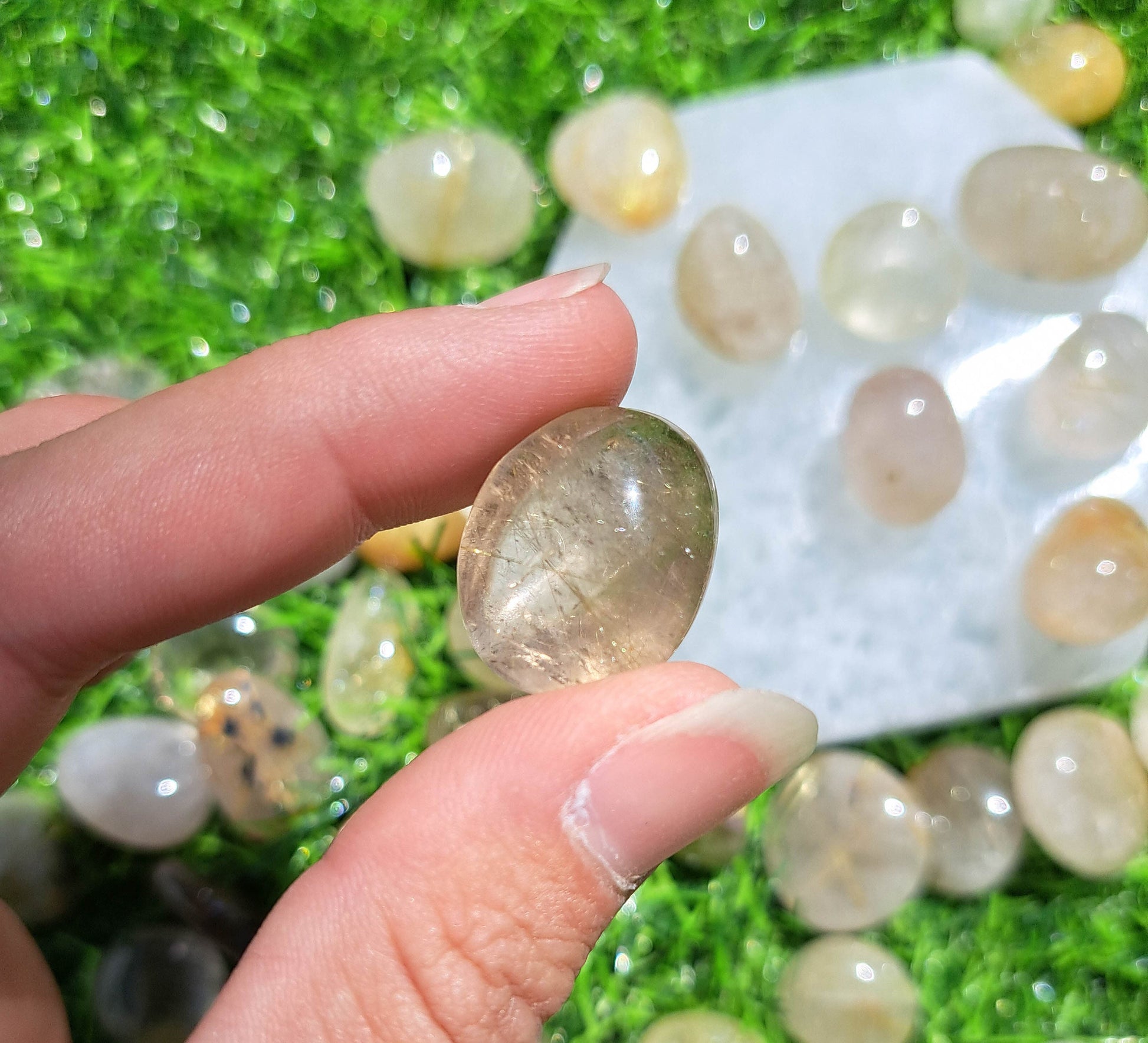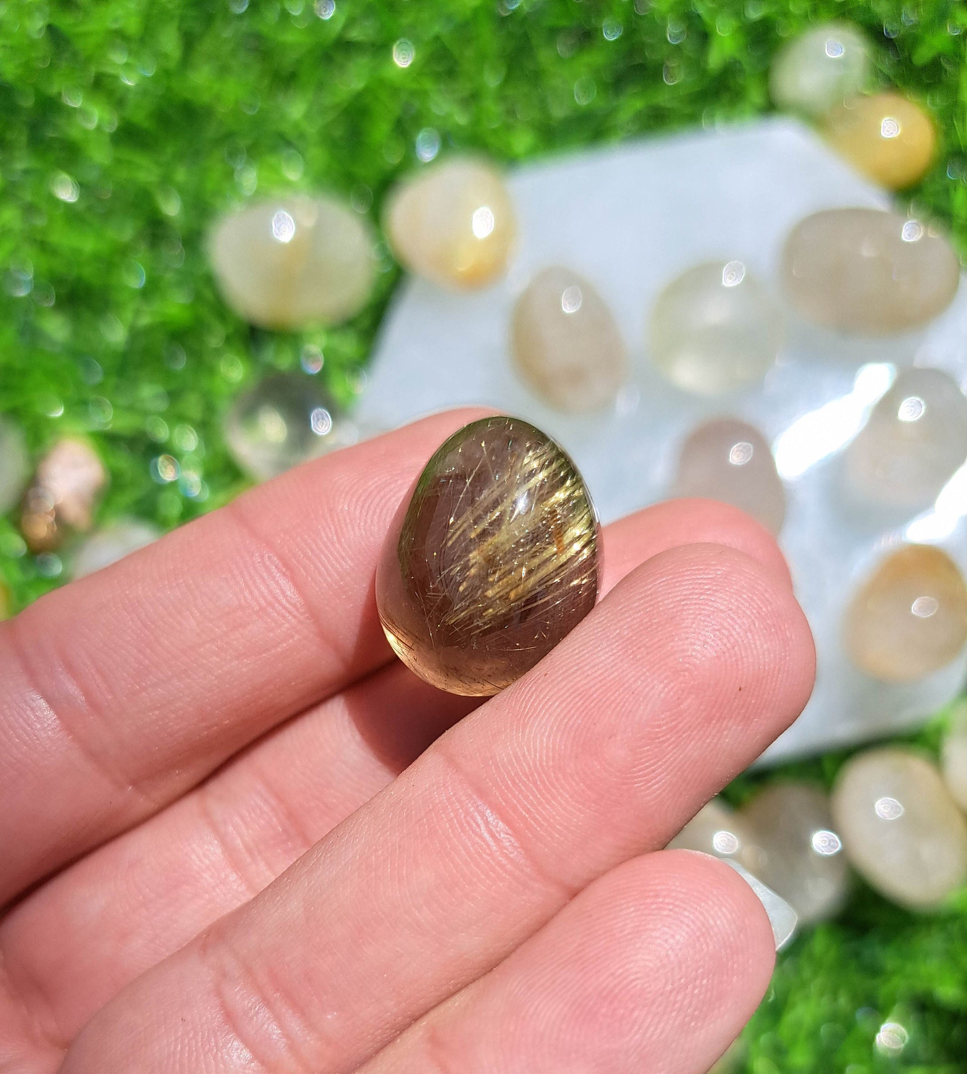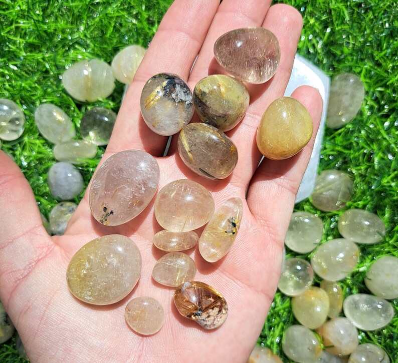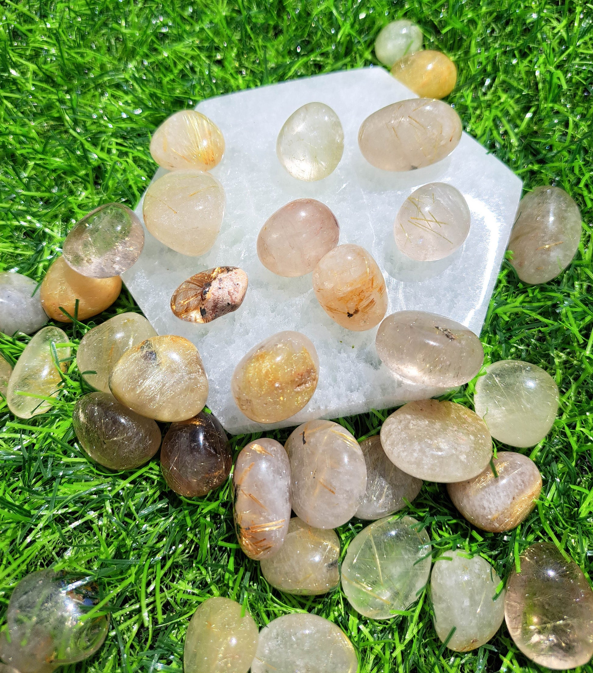 *You will receive 1 hand selected Golden Rutile Quartz Tumble. Sizes vary from 0.5" - 1" approximately. Each stone is unlike the other, unique and beautiful. Each stone varies in size and pattern, and some even contain garden with the rutile!