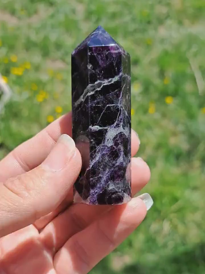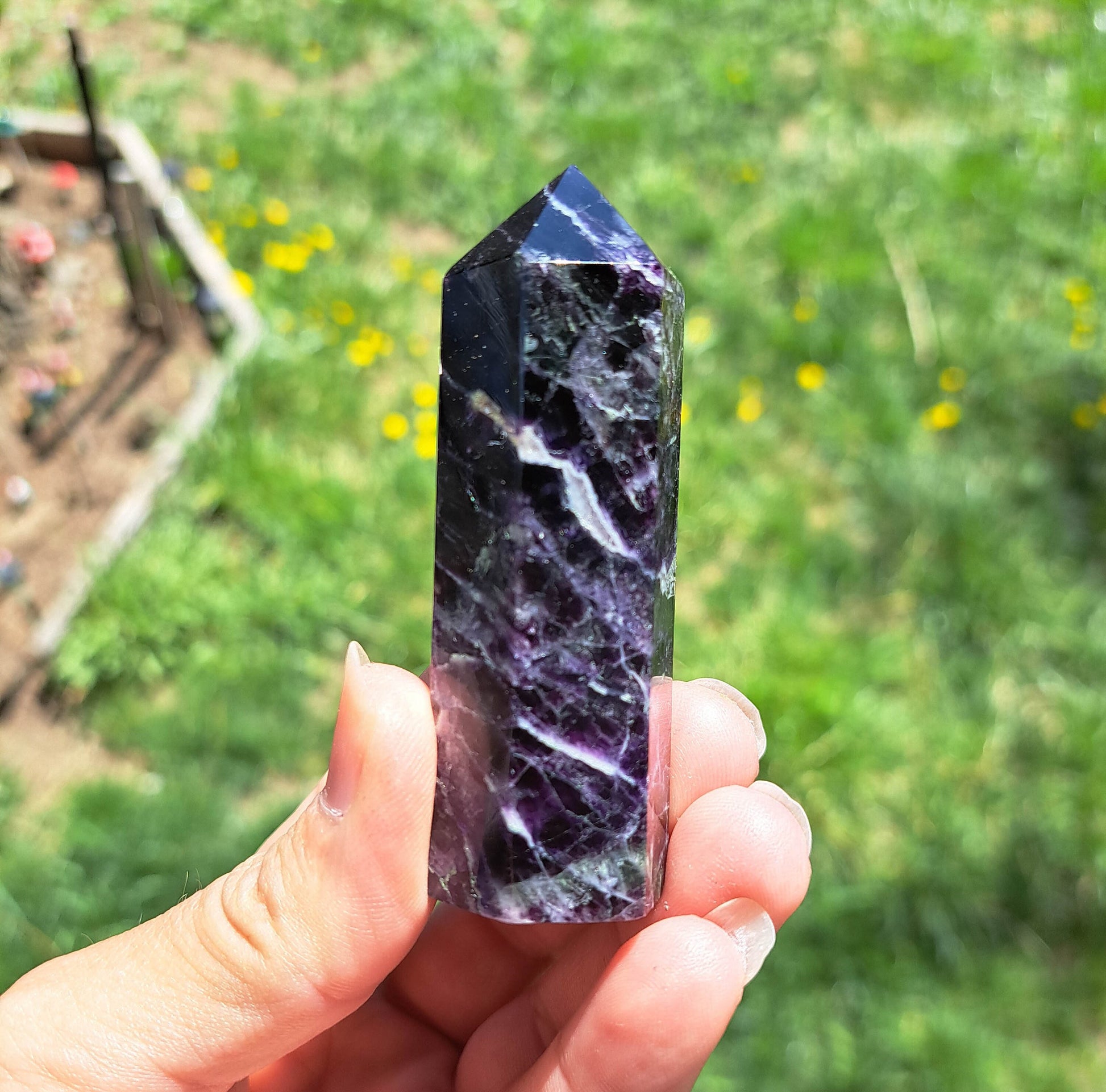 Introducing this enchanting Purple Fluorite Tower, a mesmerizing crystal that radiates both beauty and healing energy. Handcrafted with precision and care, this tower showcases the magnificent hues of deep purple, creating a striking visual display. Each facet captures the light, illuminating any space with a soothing and tranquil ambiance. Known for its calming properties, Purple Fluorite is believed to stabilize and restore balance to the mind, body, and spirit. Place this stunning tower in your favorite sacred space, meditation room, or even on your work desk to promote focus, clarity, and serenity. The perfect piece to add to your crystal collection! Allow the powerful vibrations of Purple Fluorite to guide you on your spiritual journey and bring harmony to your daily life.