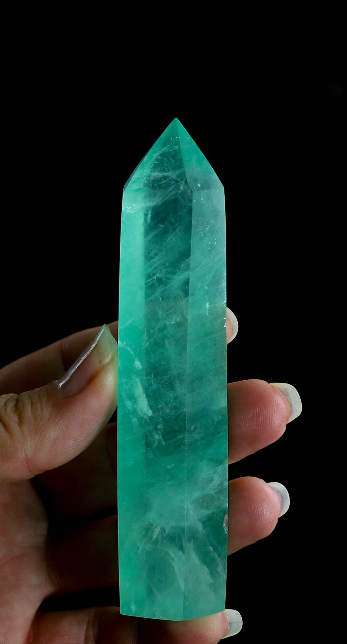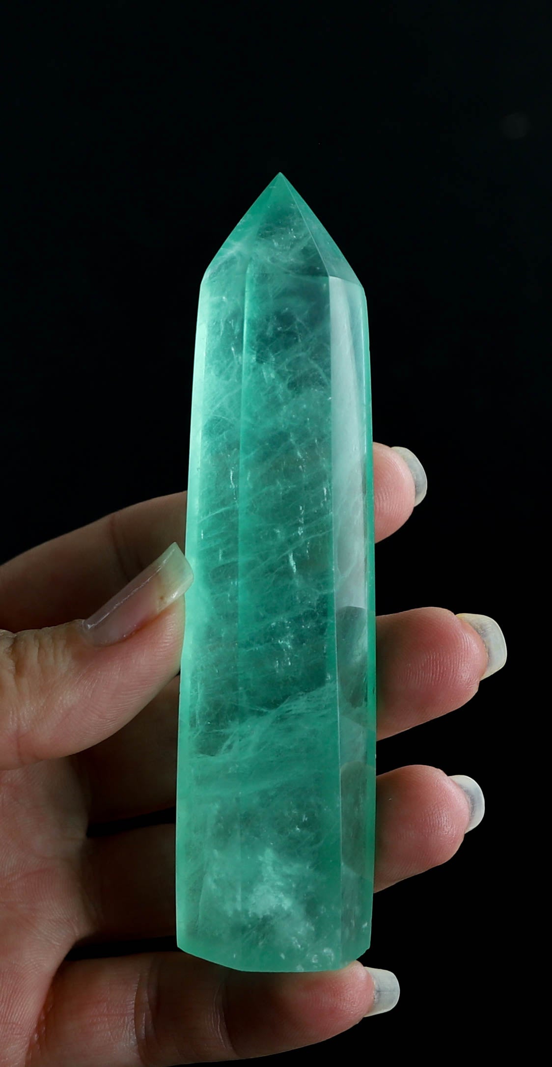 Introducing this mesmerizing Green Fluorite Tower, a true gem for the crystal enthusiasts! Hand-carved with utmost precision, this stunning tower showcases the enchanting shades of green that the fluorite stone is known for. Its sleek and elegant design makes it a perfect addition to any crystal collection or a thoughtful gift for a loved one. Green fluorite is believed to bring balance, clarity, and positive energy, making it an ideal companion when meditating or practicing spiritual rituals. Display it proudly on your desk, shelf, or wherever you seek its soothing vibes. Embrace the natural beauty and healing properties of this Green Fluorite Tower today!