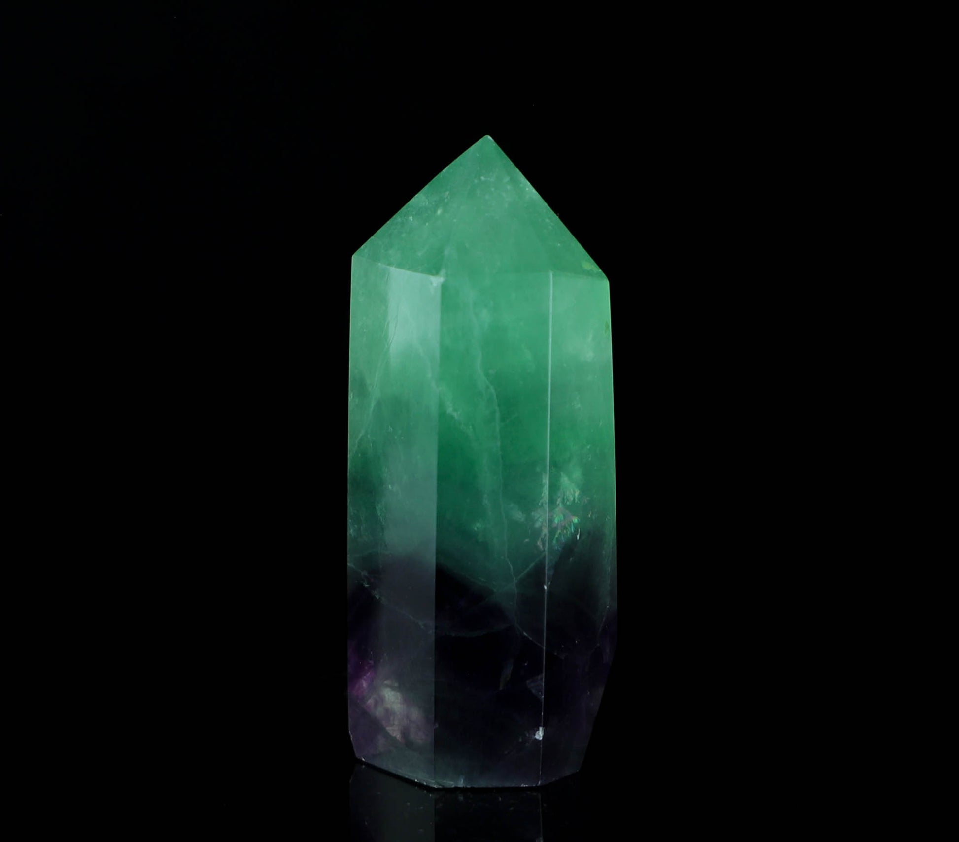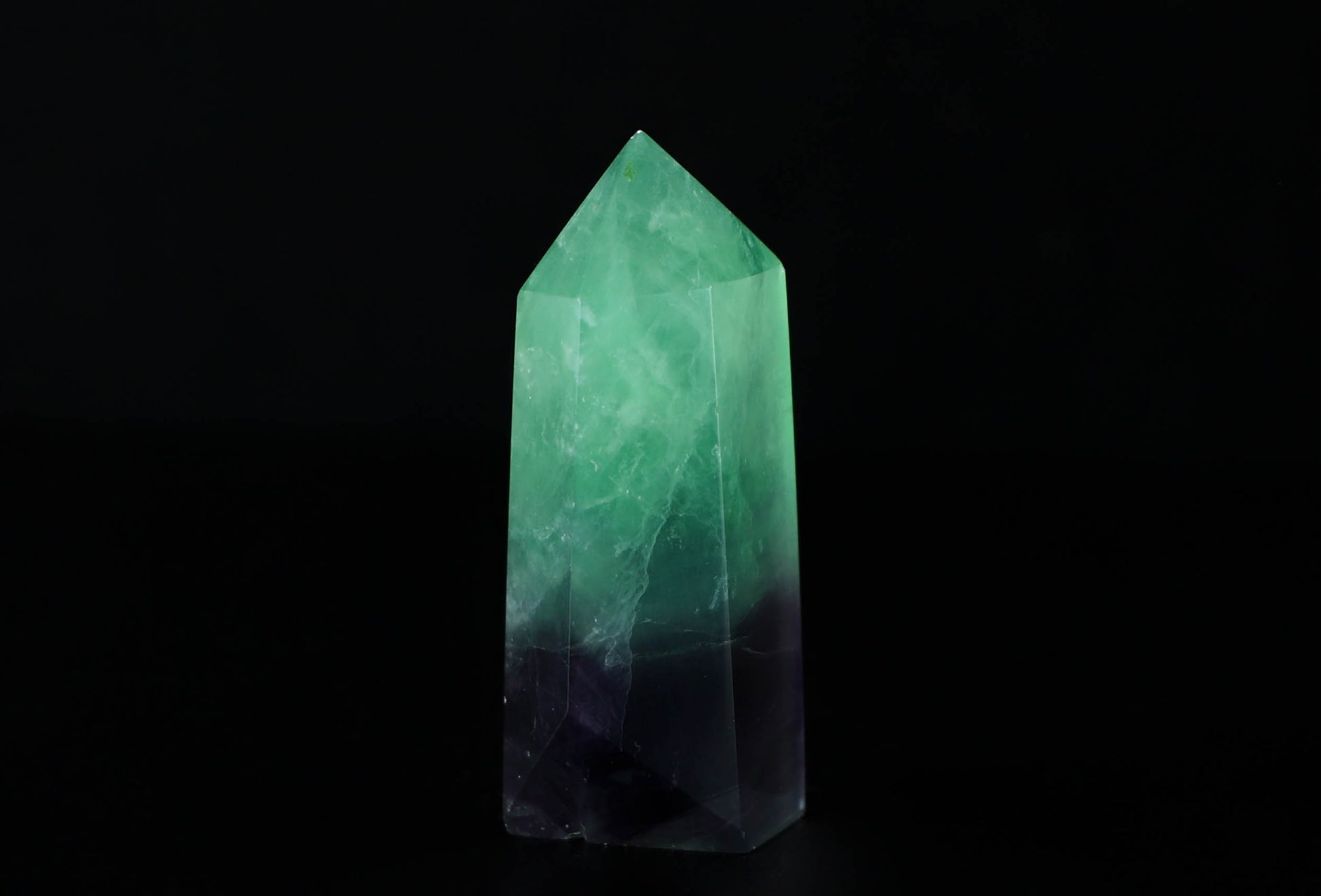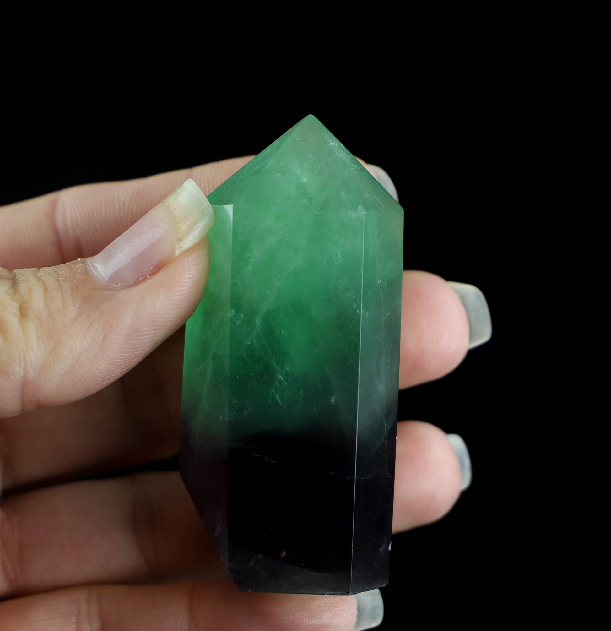 Introducing our stunning Green & Purple Fluorite Tower! This exquisite crystal beauty is sure to captivate and mesmerize. Featuring gorgeous deep green and purple color, this Fluorite tower is mesmerizing. Handcrafted with precision and love, this tower stands bold as a symbol of spiritual growth and harmony. Its iridescent clarity enhances your intuition and channels positive energy into your sacred space. Whether used for meditation, crystal healing, or simply as a captivating home décor piece, this Green Fluorite Tower is a must-have for your crystal collection. Bring a touch of enchantment to your life and let the vibrant energies of this stunning tower illuminate your space.