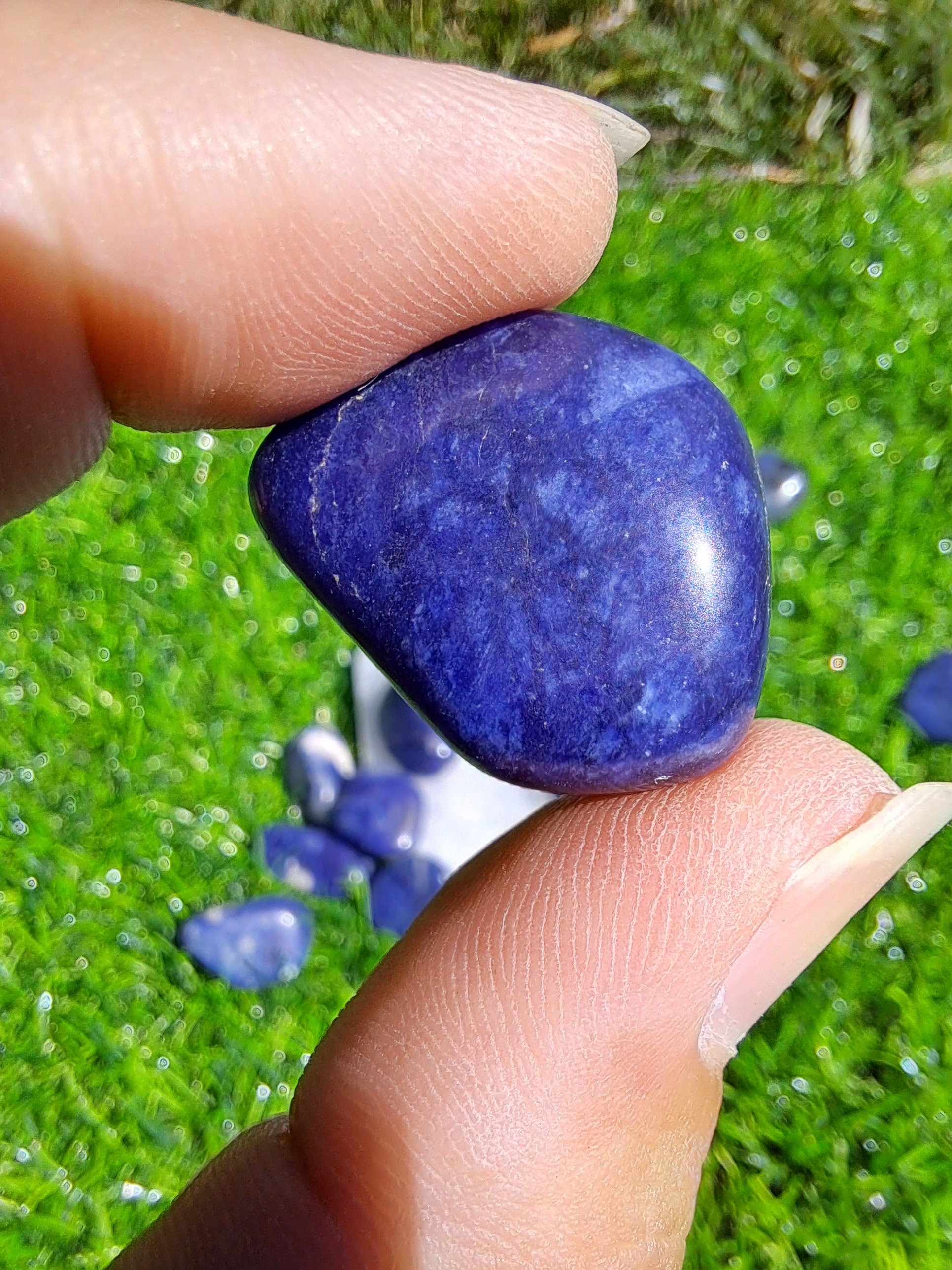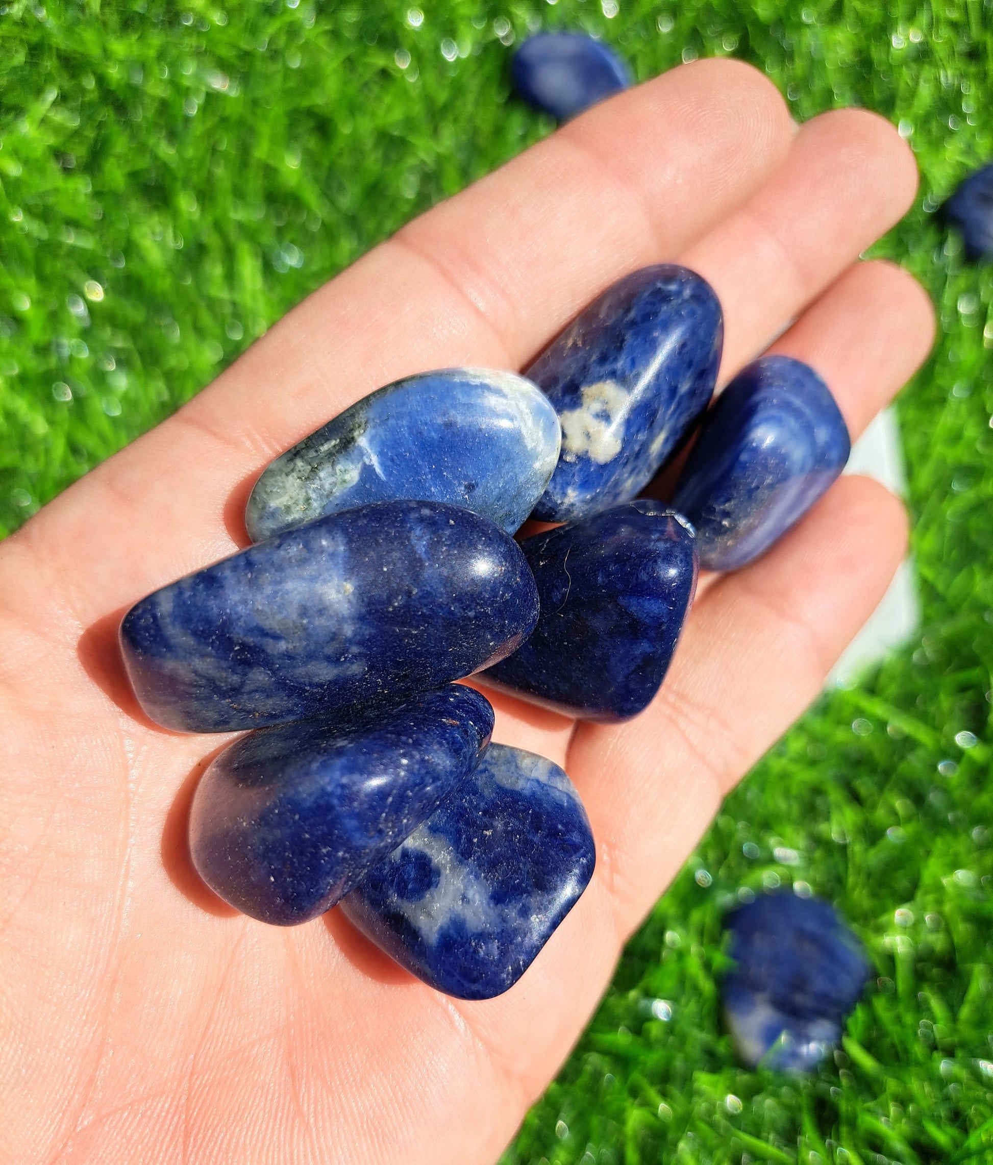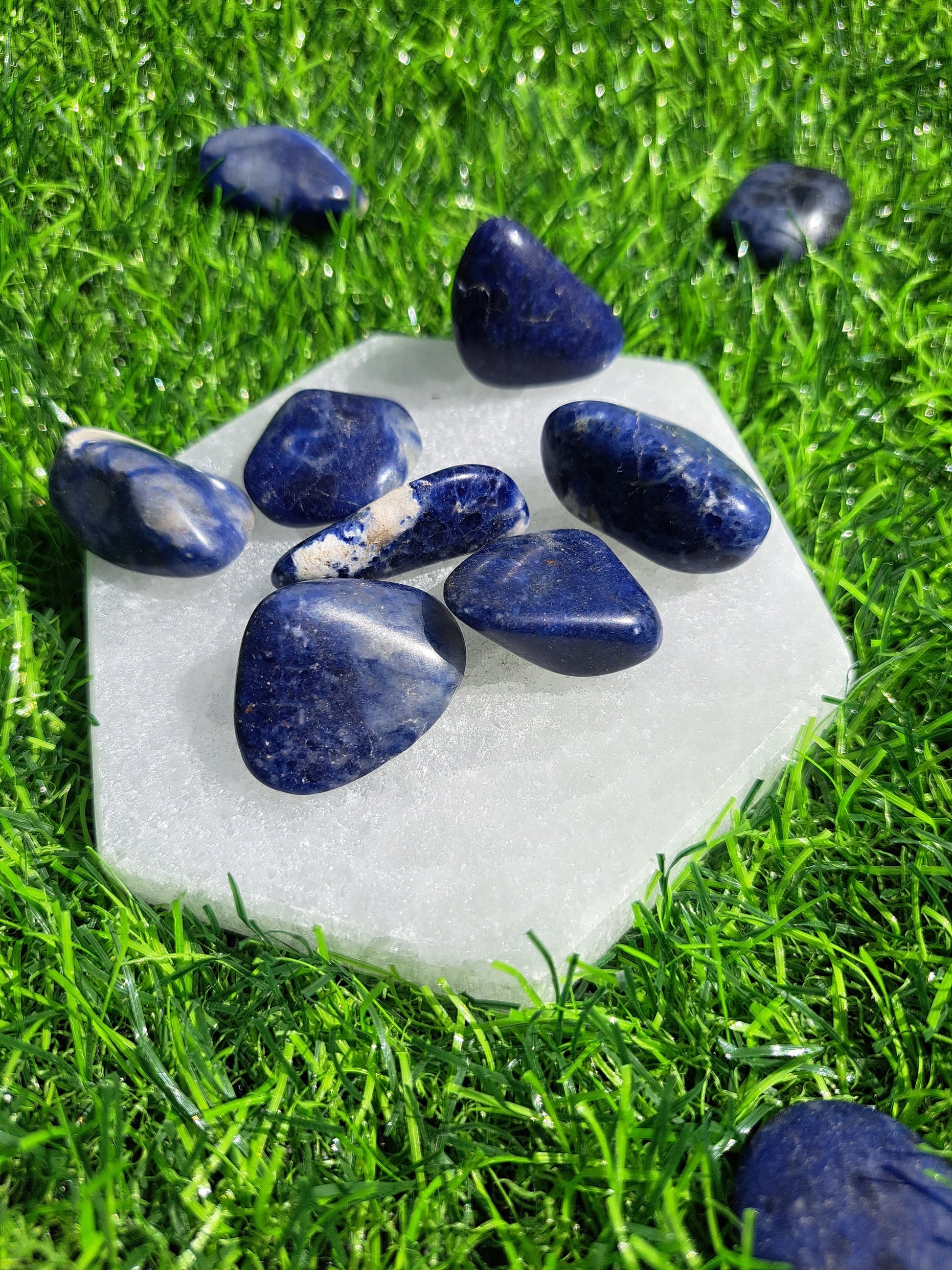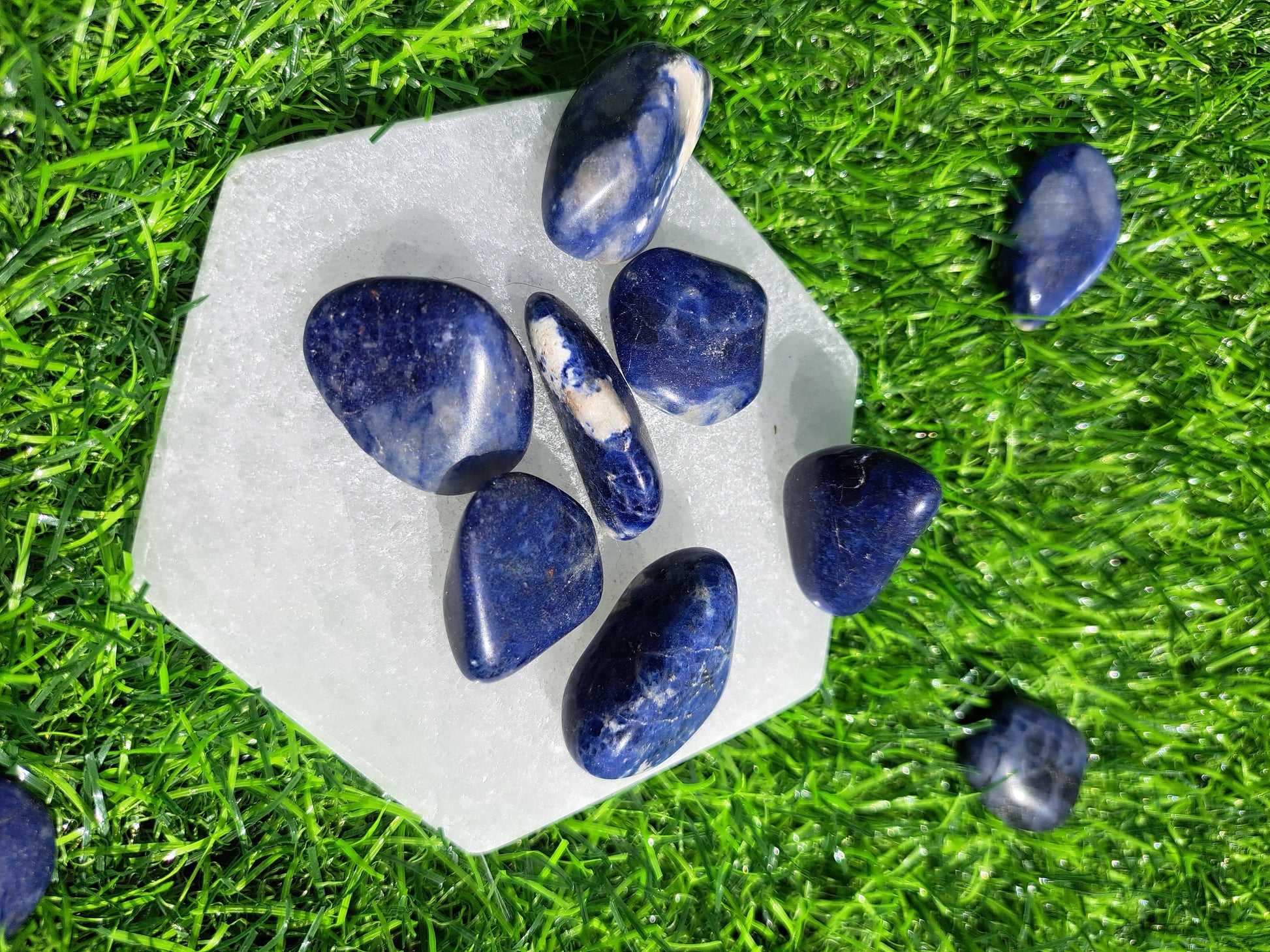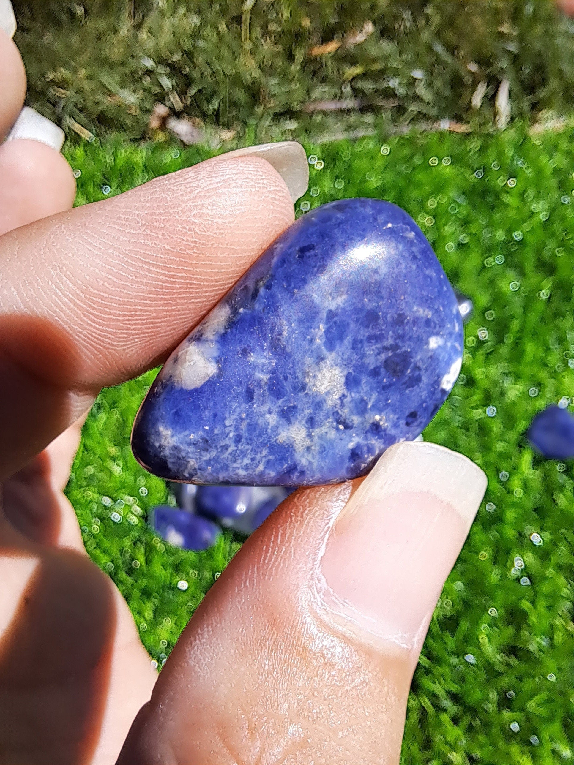 Introducing our Healing Sodalite Crystal Tumble, a must-have for crystal enthusiasts and crystal collectors! Sodalite is known for its striking deep blue hue with mesmerizing white streaks, reminiscent of a starry night sky. Each tumble is carefully hand-polished to enhance its natural beauty and unique patterns. This crystal is believed to promote harmony, peace, intuition, and calming energy, making it the perfect companion for meditation and spiritual practices. Display it on your altar, place it in your pocket, or use it for crystal healing purposes. Whether you're an avid crystal lover or simply looking to add a touch of elegance to your space, our Sodalite Crystal Tumble is a wonderful choice. Elevate your crystal collection and embrace the enchanting energy of Sodalite today!