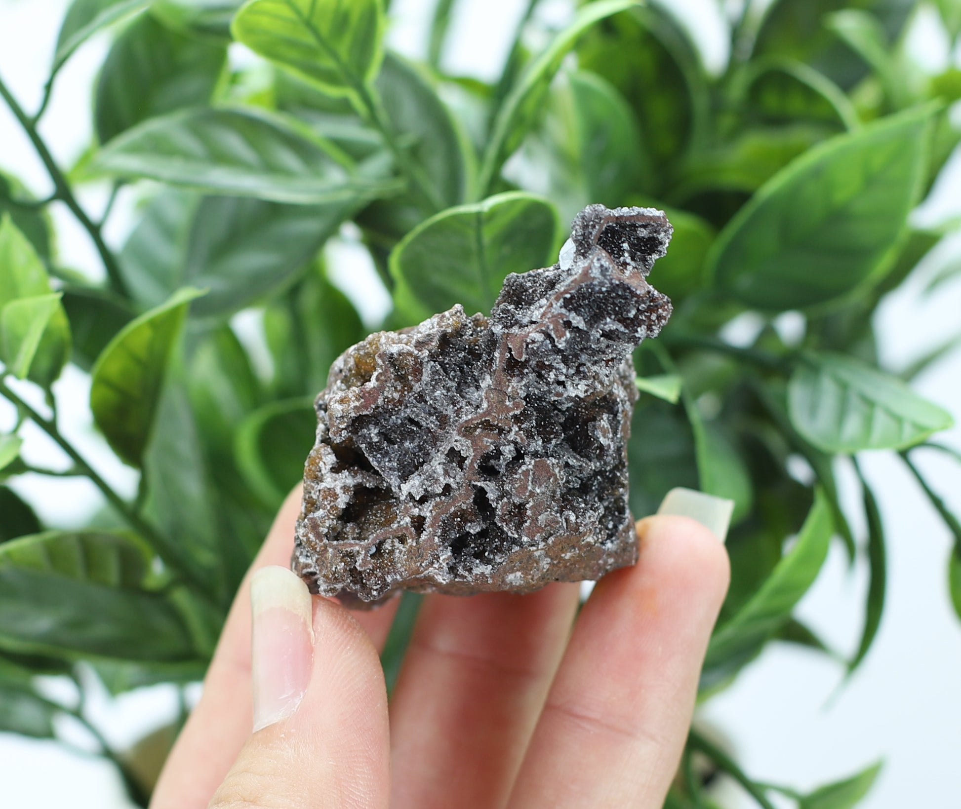 These stunning cluster's feature dazzling manganese and eye catching quartz. The surface shimmers with natural micro-facets—like starlight frozen in crystal. A best-seller for meditation spaces and crystal collectors! Each one is unique, just like you!