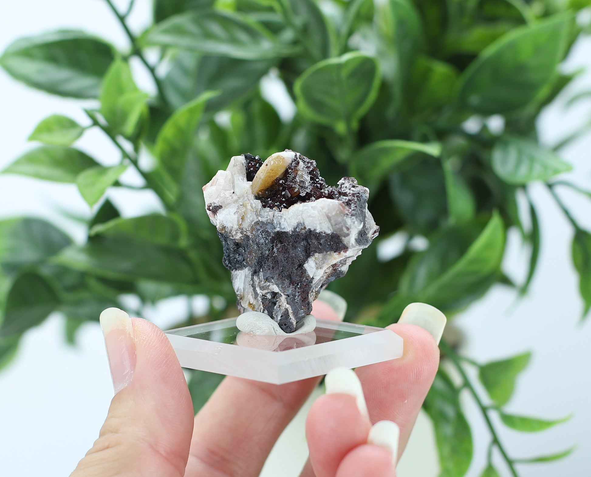 These stunning cluster's feature dazzling manganese and eye catching quartz. The surface shimmers with natural micro-facets—like starlight frozen in crystal. A best-seller for meditation spaces and crystal collectors! Each one is unique, just like you!
