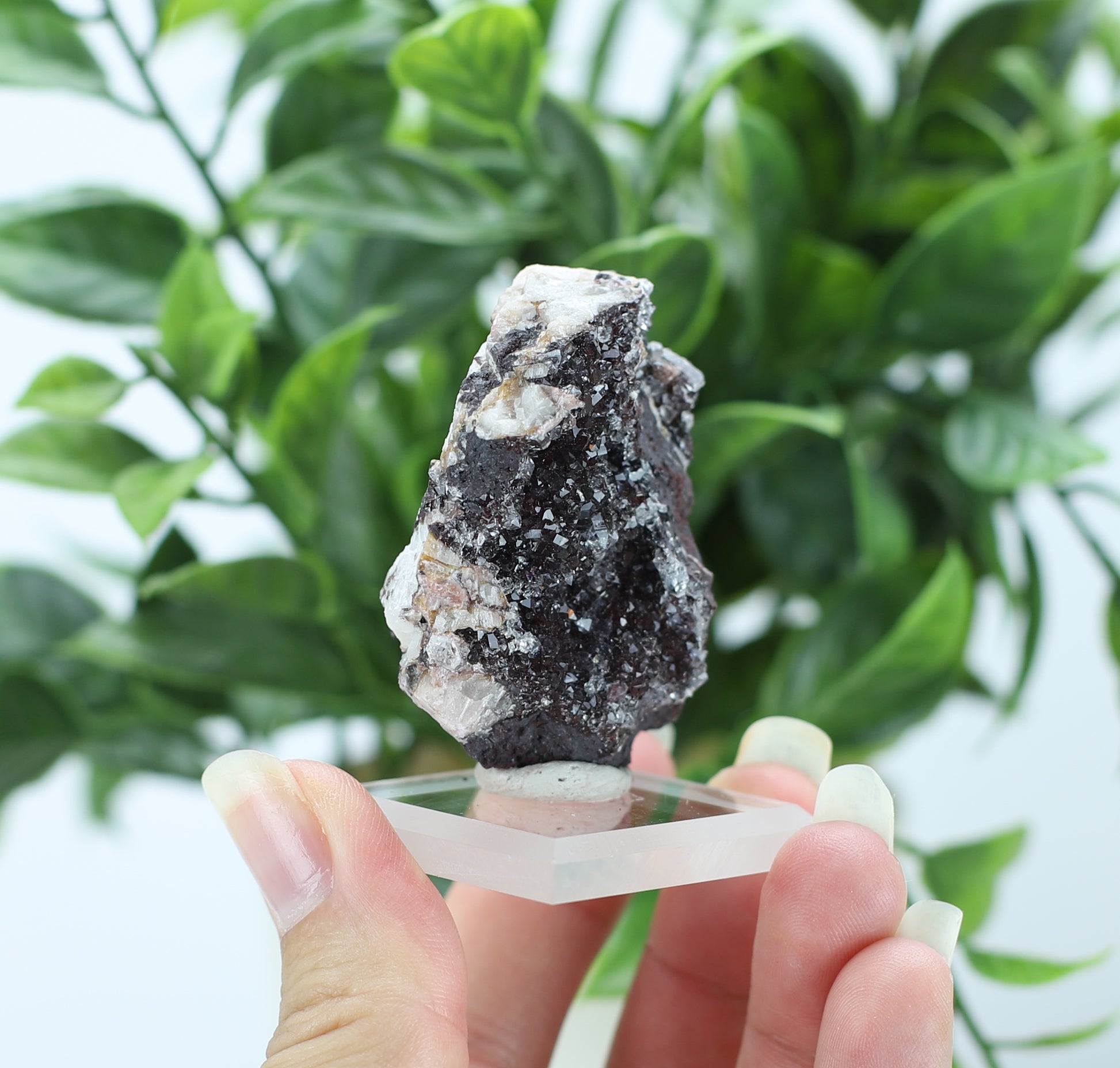These stunning cluster's feature dazzling manganese and eye catching quartz. The surface shimmers with natural micro-facets—like starlight frozen in crystal. A best-seller for meditation spaces and crystal collectors! Each one is unique, just like you!