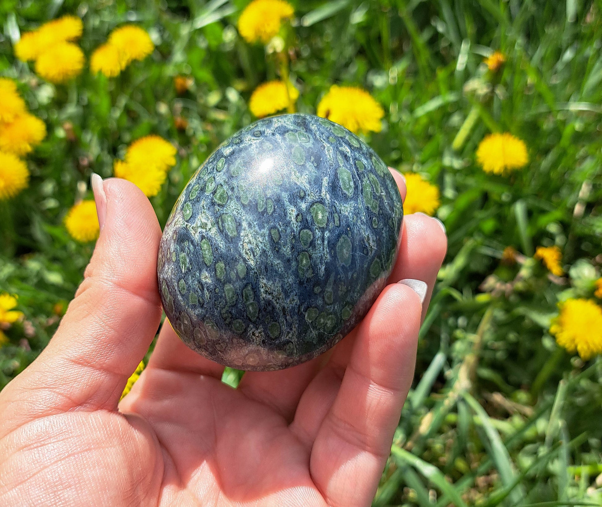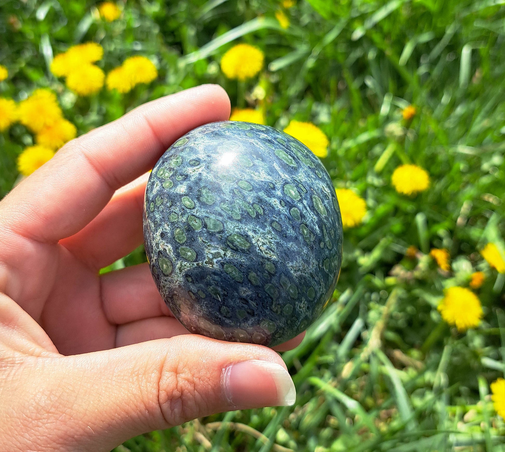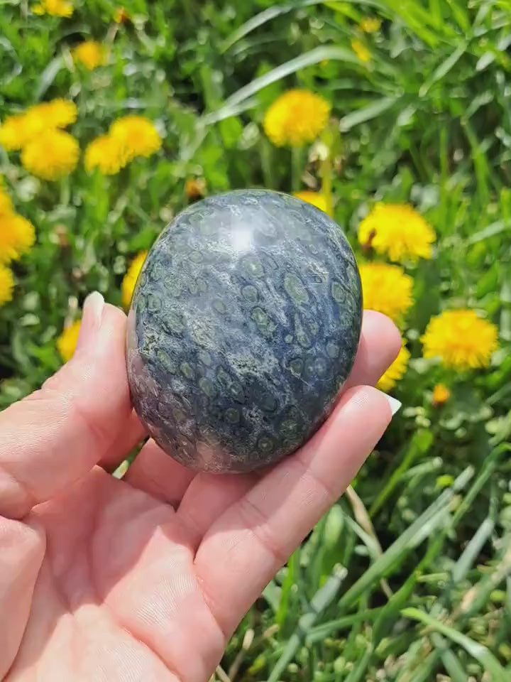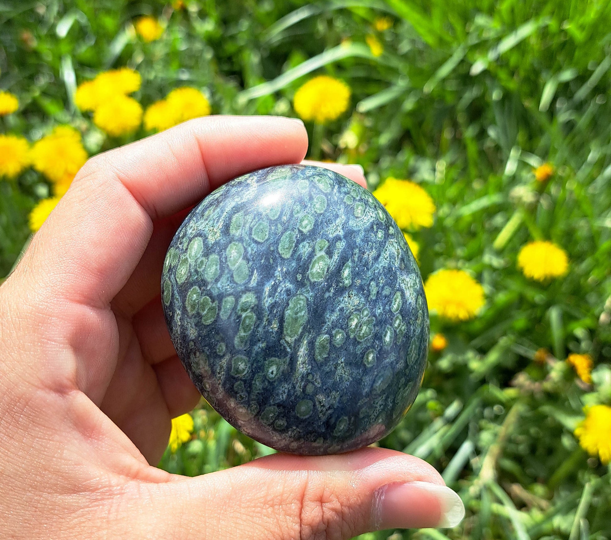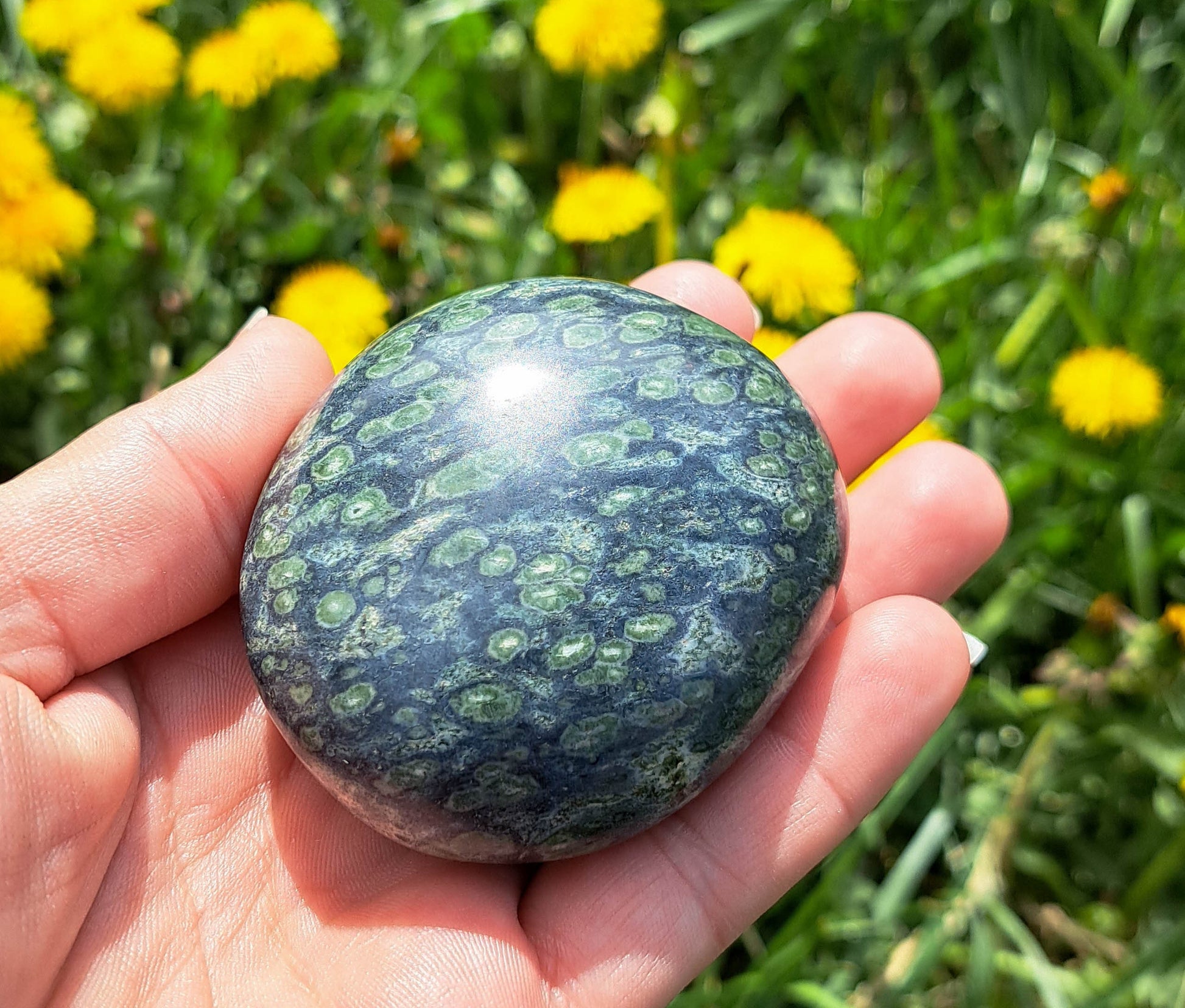 Introducing our exquisite Kambaba Jasper Palm Stone! Perfectly polished to showcase its mesmerizing beauty, this unique palm stone is a true piece of art. Crafted from the finest Kambaba Jasper, known for its striking green and black patterns, this stone embodies ancient wisdom and grounding energy. Whether used for healing practices, stress relief, or as a decorative piece, the smooth surface of this palm stone feels incredibly soothing to the touch. Add a touch of natural elegance to your crystal collection or surprise a loved one with a truly extraordinary gift. Embrace the powerful energy of Kambaba Jasper with this enchanting palm stone today!