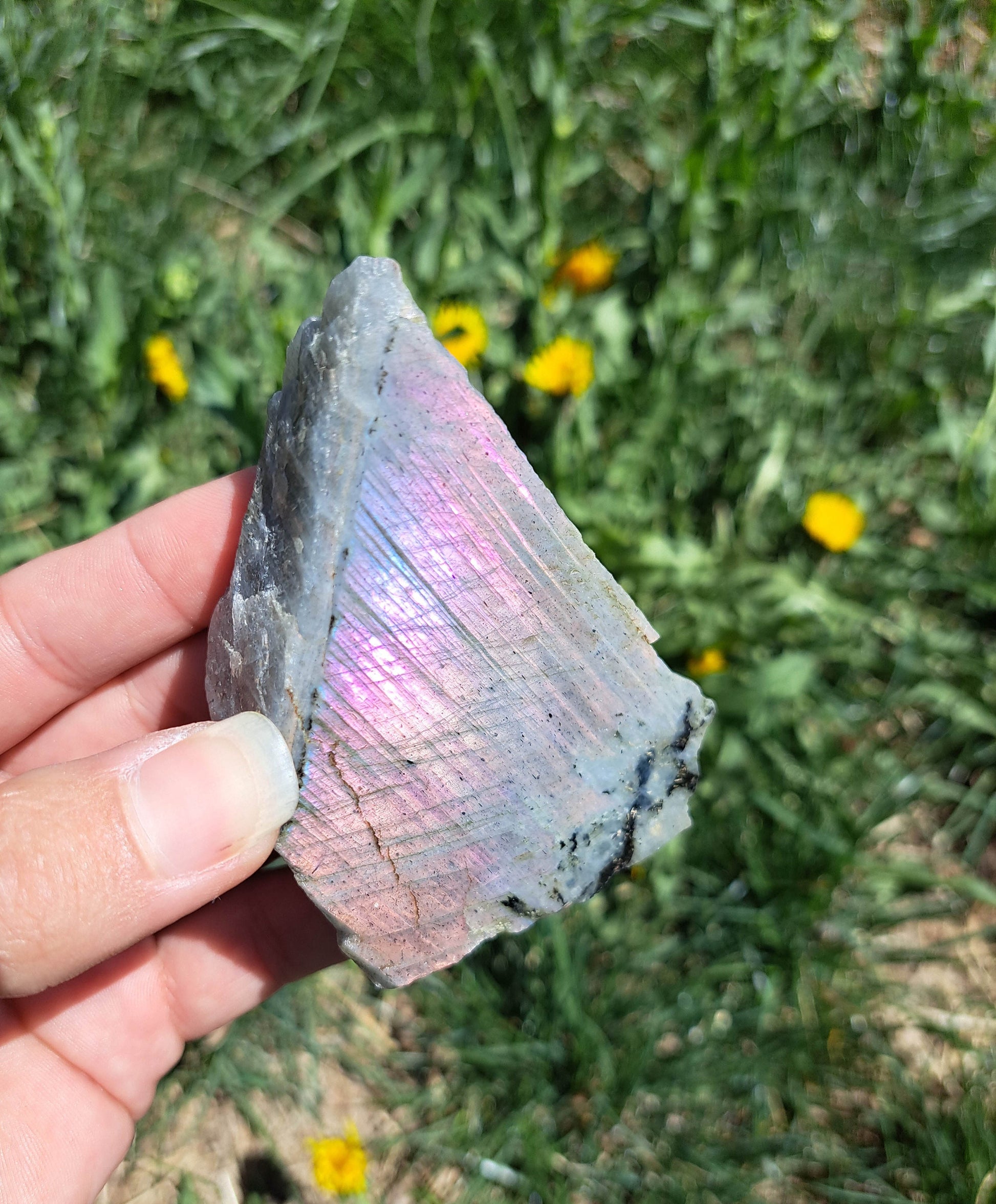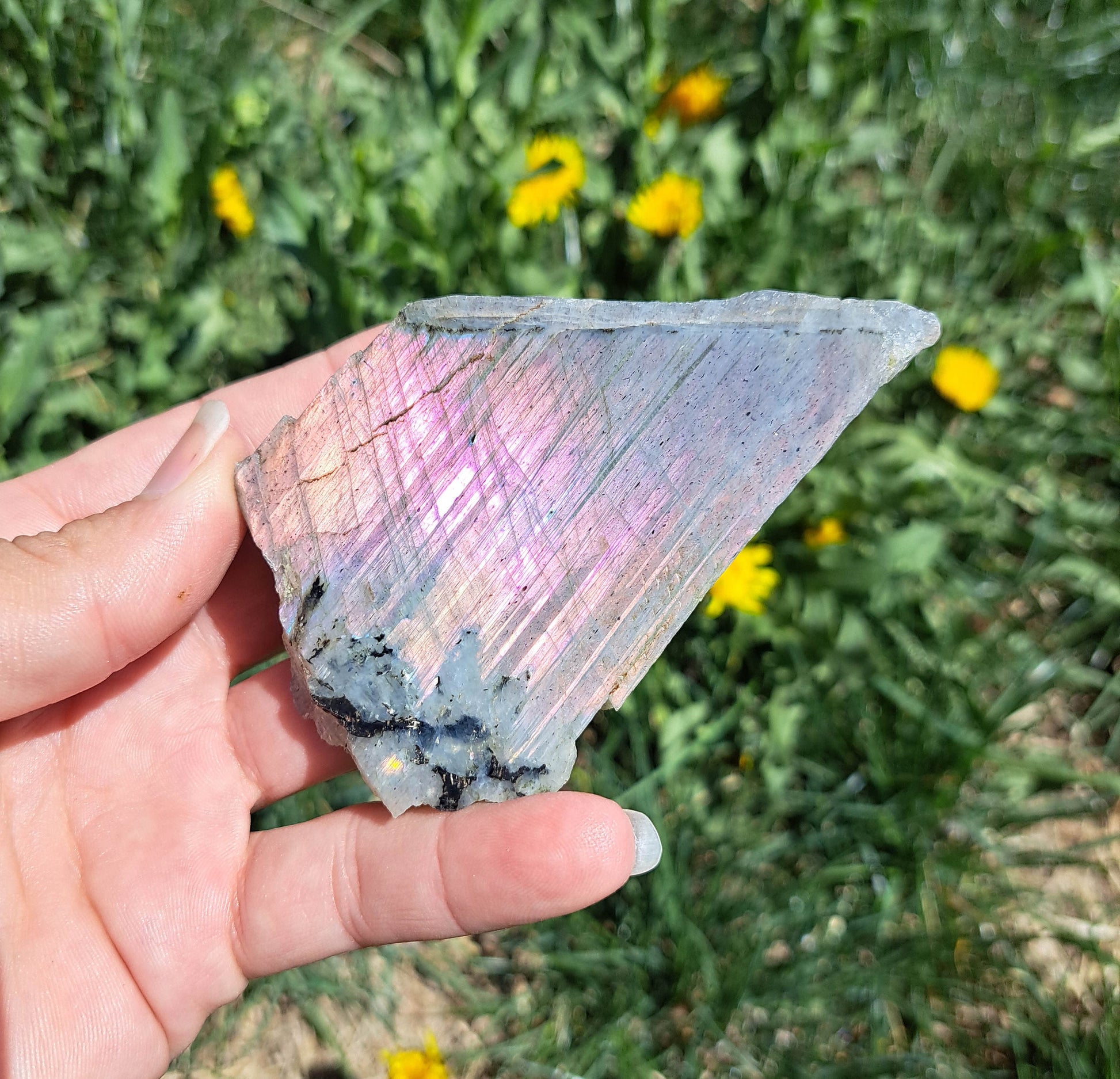 Introducing our exquisite Natural Labradorite Crystal! This enchanting gemstone radiates a mesmerizing play of colors, captivating anyone who lays eyes on it. Each crystal is carefully handpicked to ensure its quality and unique beauty. Skillfully polished on one side and naturally raw on the other, this is must-have gemstone! Known for its powerful healing properties, Labradorite is said to enhance intuition and protect against negative energies. Whether you're a crystal lover looking to enhance your crystal collection or simply seeking a stunning piece to adorn your space, this Natural Labradorite Crystal is a must-have. Allow its ethereal glow to bring tranquility and positivity into your life.