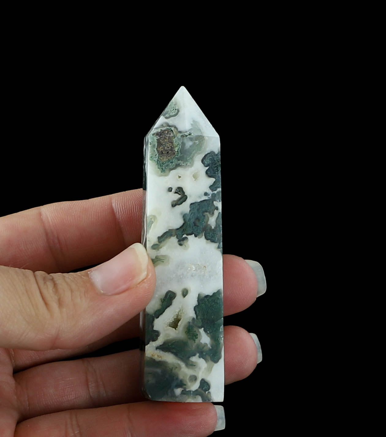 Natural Moss Agate Tower - Grounding and Healing Crystal