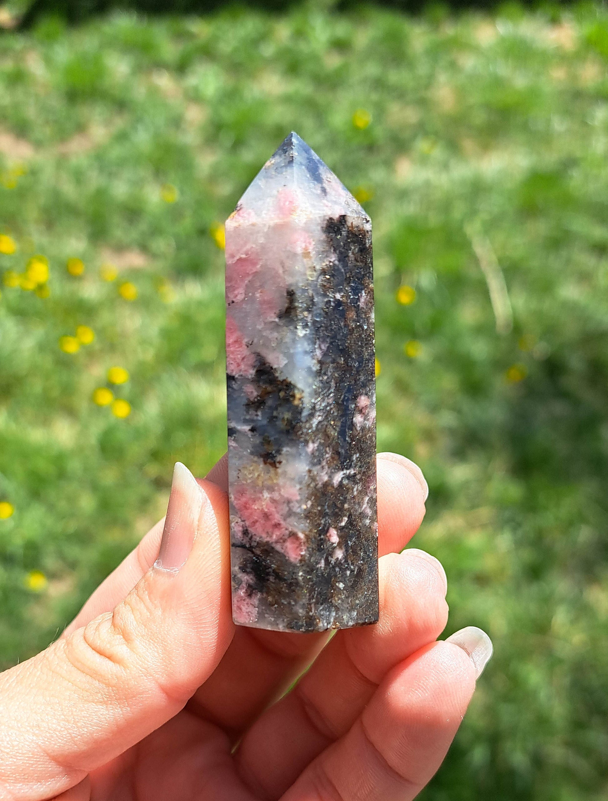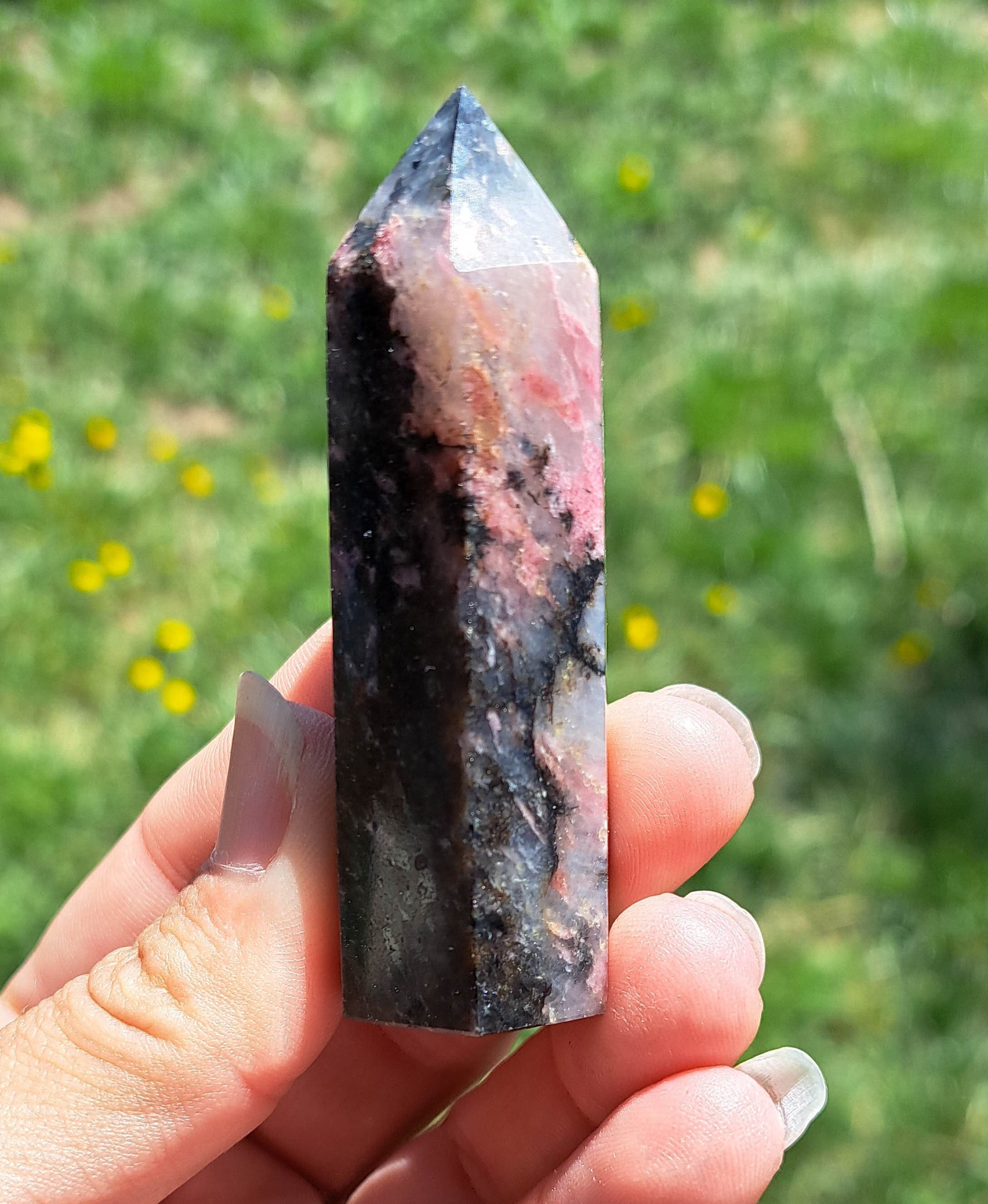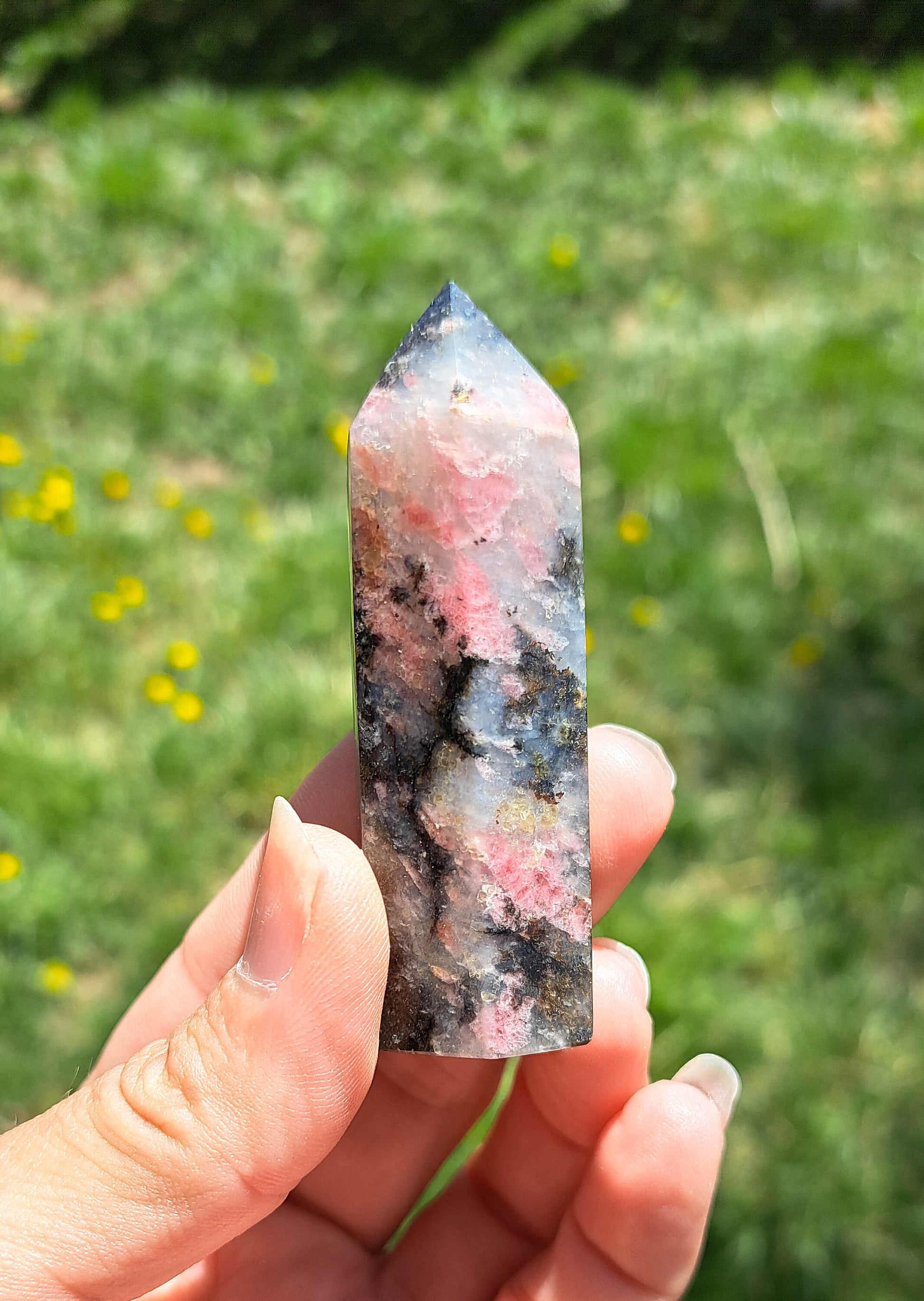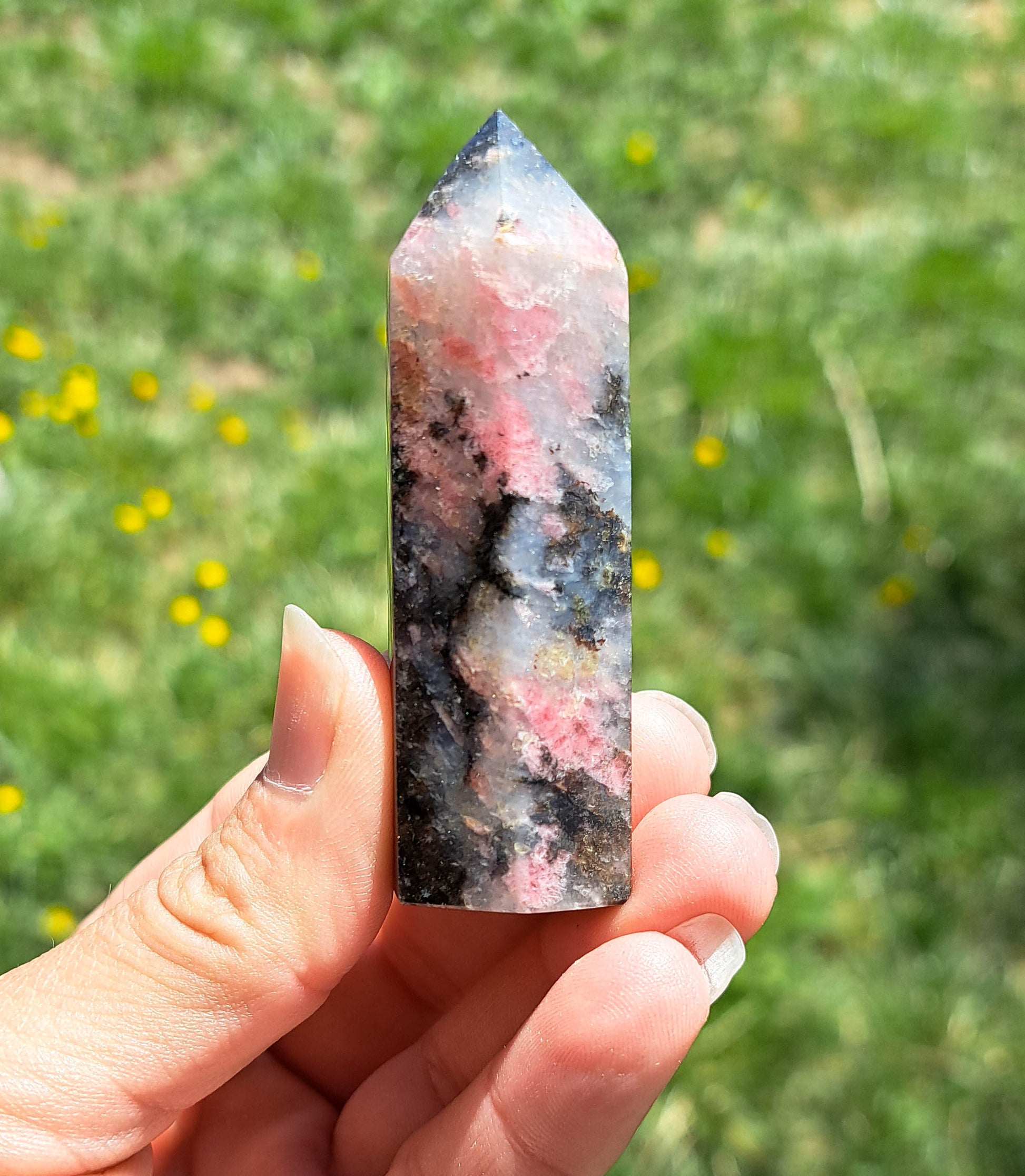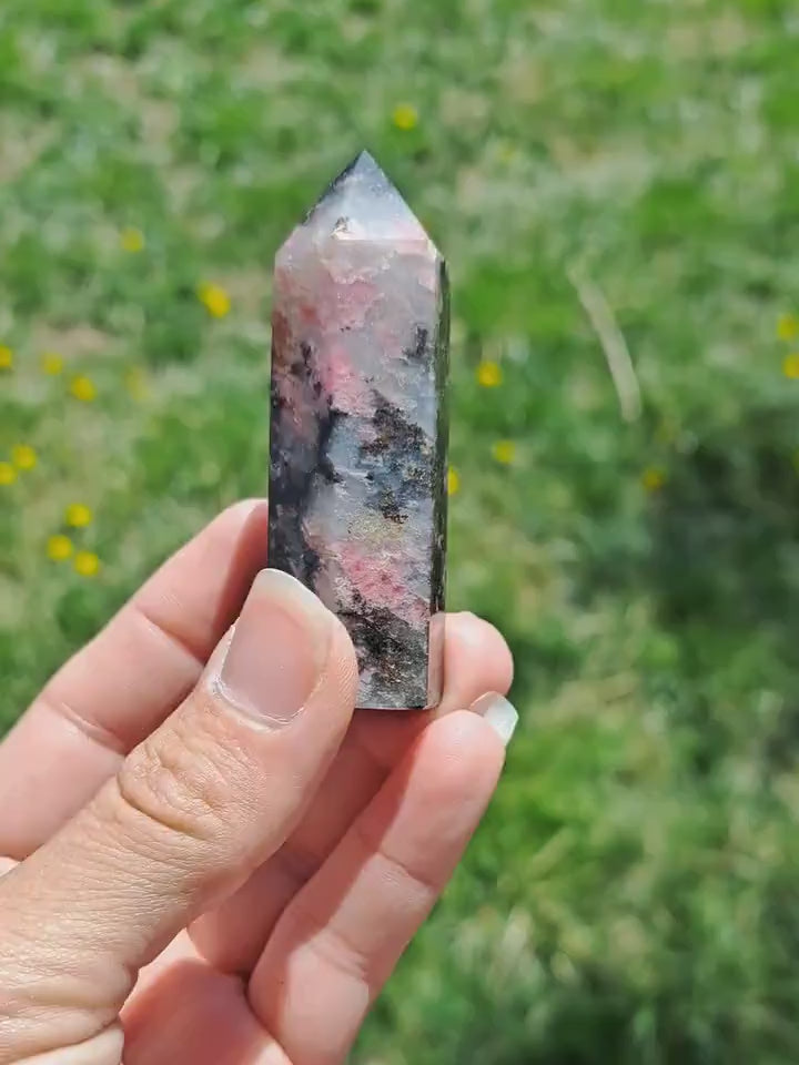 Introducing our exquisite Natural Rhodonite Tower, a stunning addition to any crystal lover's collection. Meticulously handcrafted, this tower showcases the captivating beauty of Rhodonite, with its gorgeous natural patterns and hues. Each piece is unique, making it a one-of-a-kind crystal treasure that will infuse your space with a sense of tranquility and balance. Whether used for meditation, energy healing, or simply as a stunning decorative piece, this Natural Rhodonite Tower is sure to become the focal point of any room. Elevate your spiritual journey and surround yourself with the harmonizing energies of this remarkable crystal.