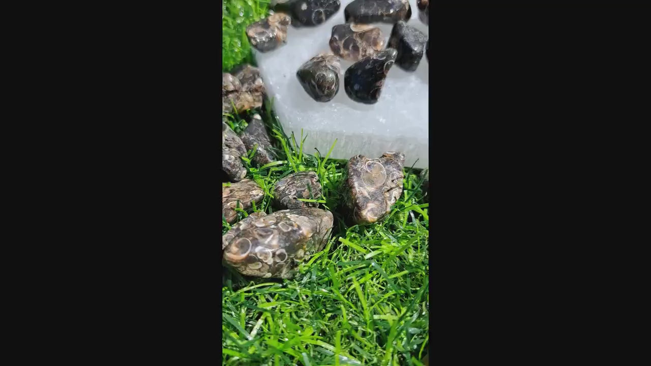 Introducing a truly remarkable Natural Turritella Agate Crystal Tumble! This exquisite stone showcases the distinctive markings and intricate patterns that make Turritella Agate a beloved favorite among crystal collectors. With its earthy tones and fossilized beauty, this tumble is perfect for enhancing your crystal grid, meditation practice, or simply as a stunning addition to your crystal collection. Each piece is carefully hand-selected to ensure the highest quality, making it a unique and captivating gift for nature enthusiasts and crystal lovers alike. Embrace the natural energy of this Turritella Agate Crystal Tumble and let its ancient wisdom surround you with every glance and touch.