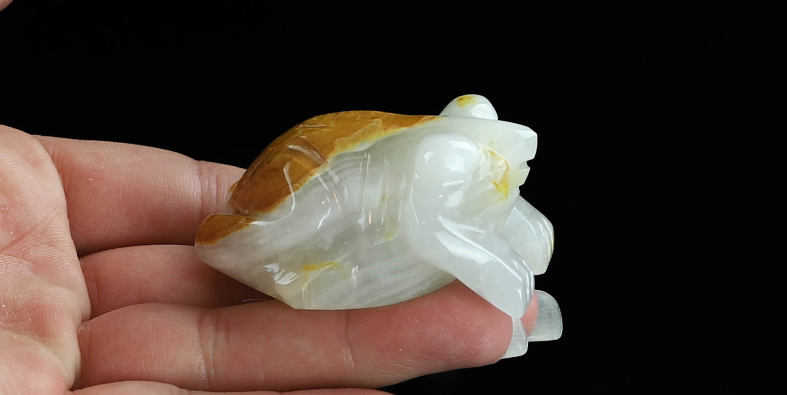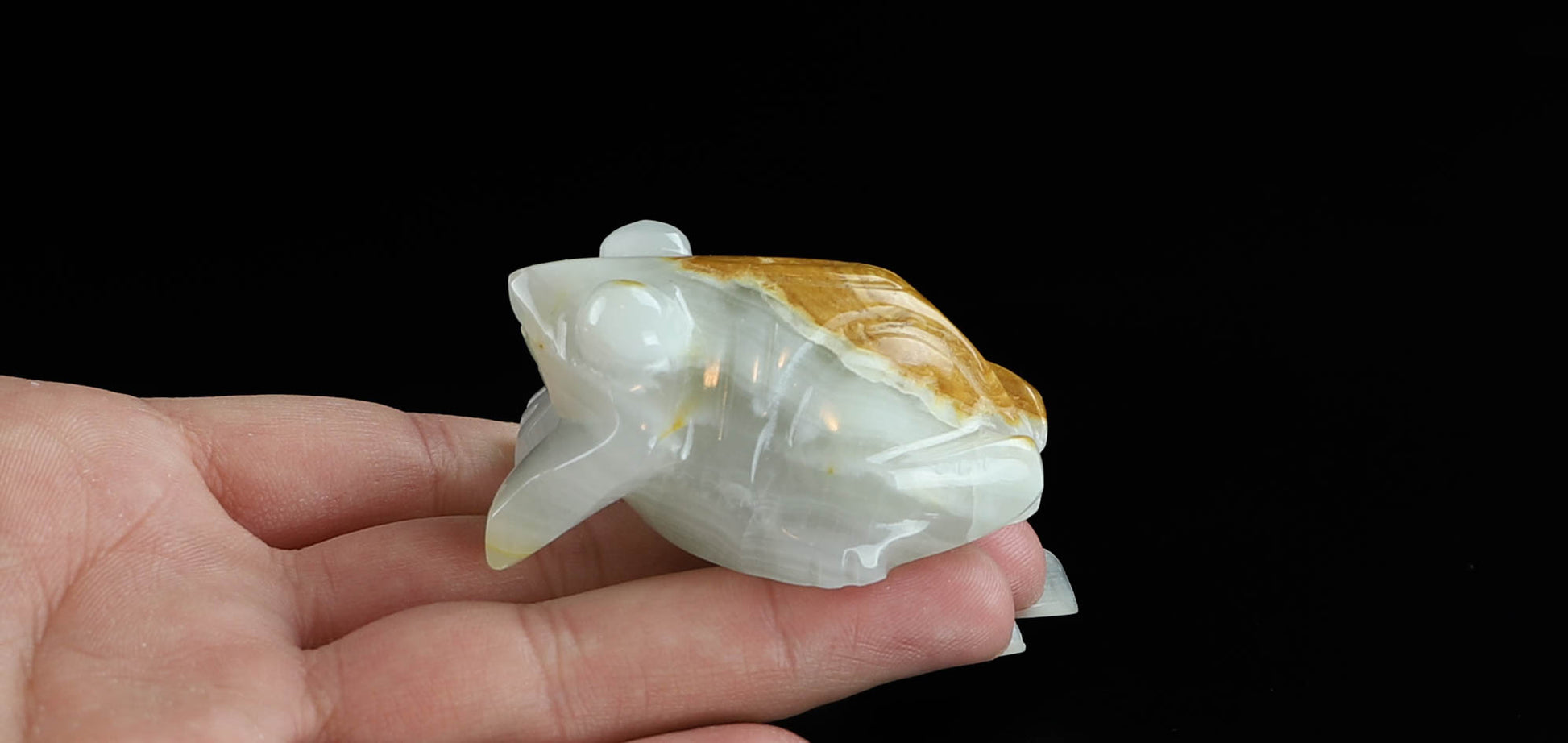 A beautifully hand carved frog made out of natural onyx stone. Frog crystals are perfect for those who need help adapting to situations, calling in wisdom, or those looking for joy. This Crystal frog is perfect for your altar, crystal collection, or home décor.