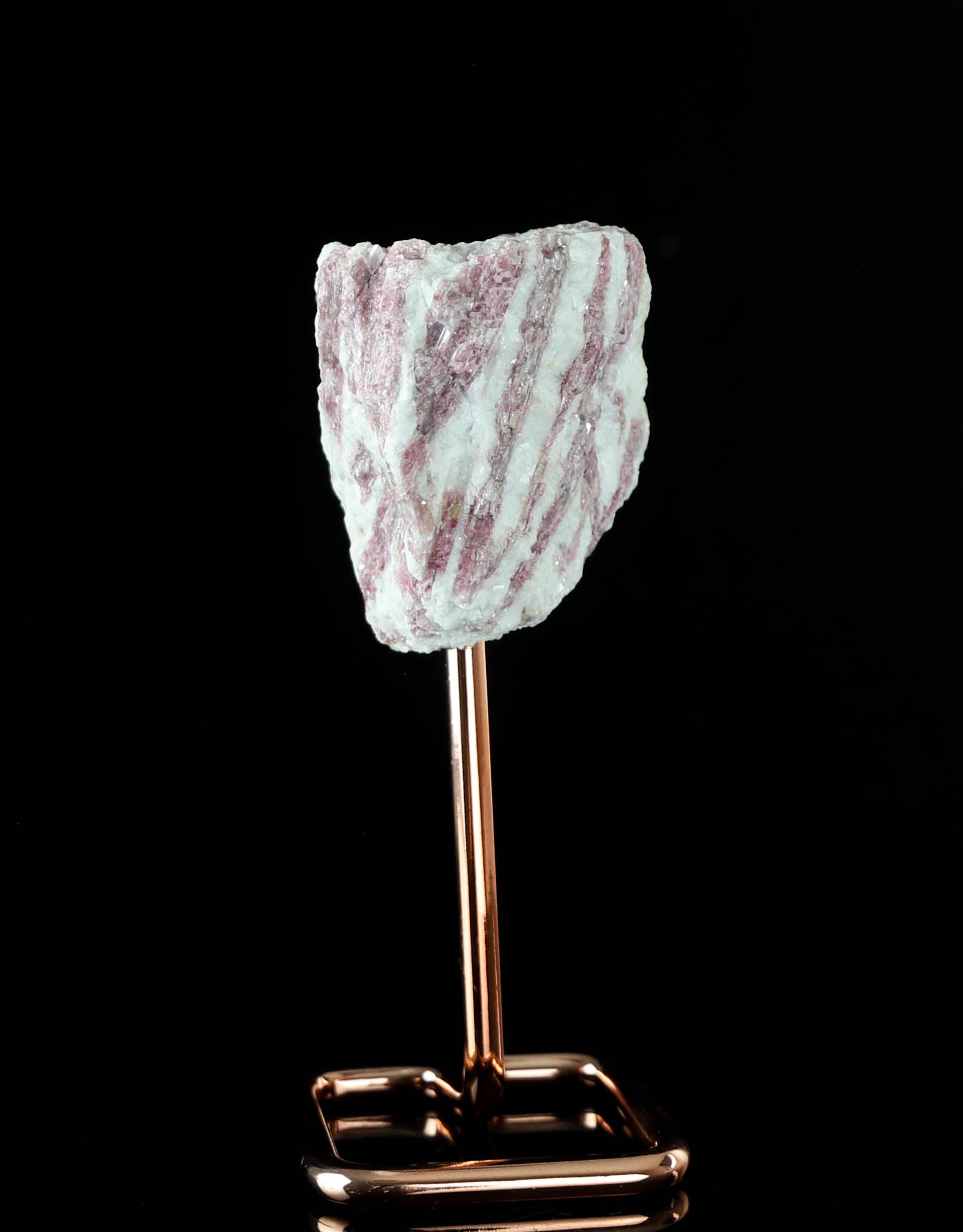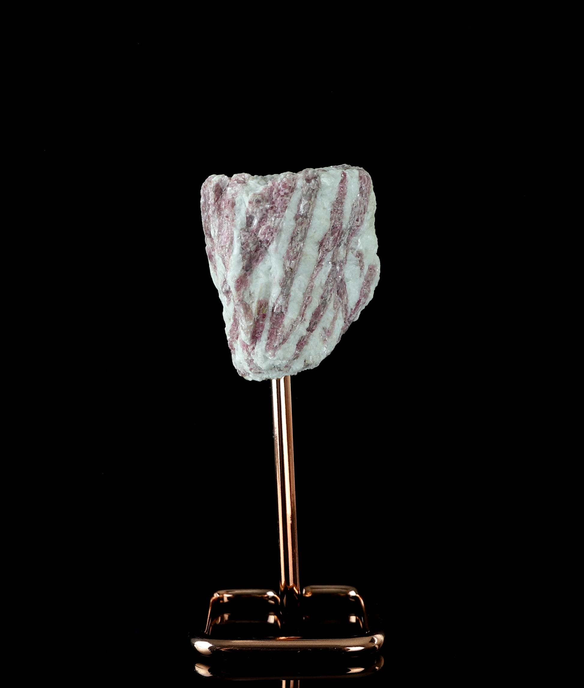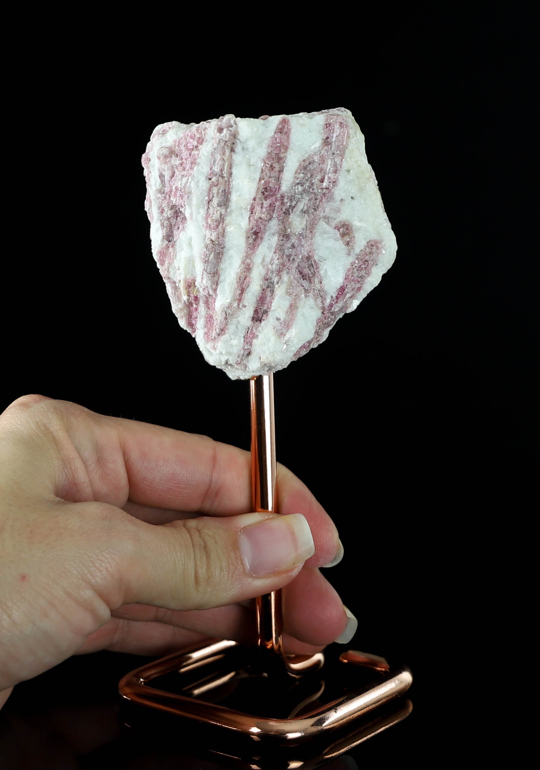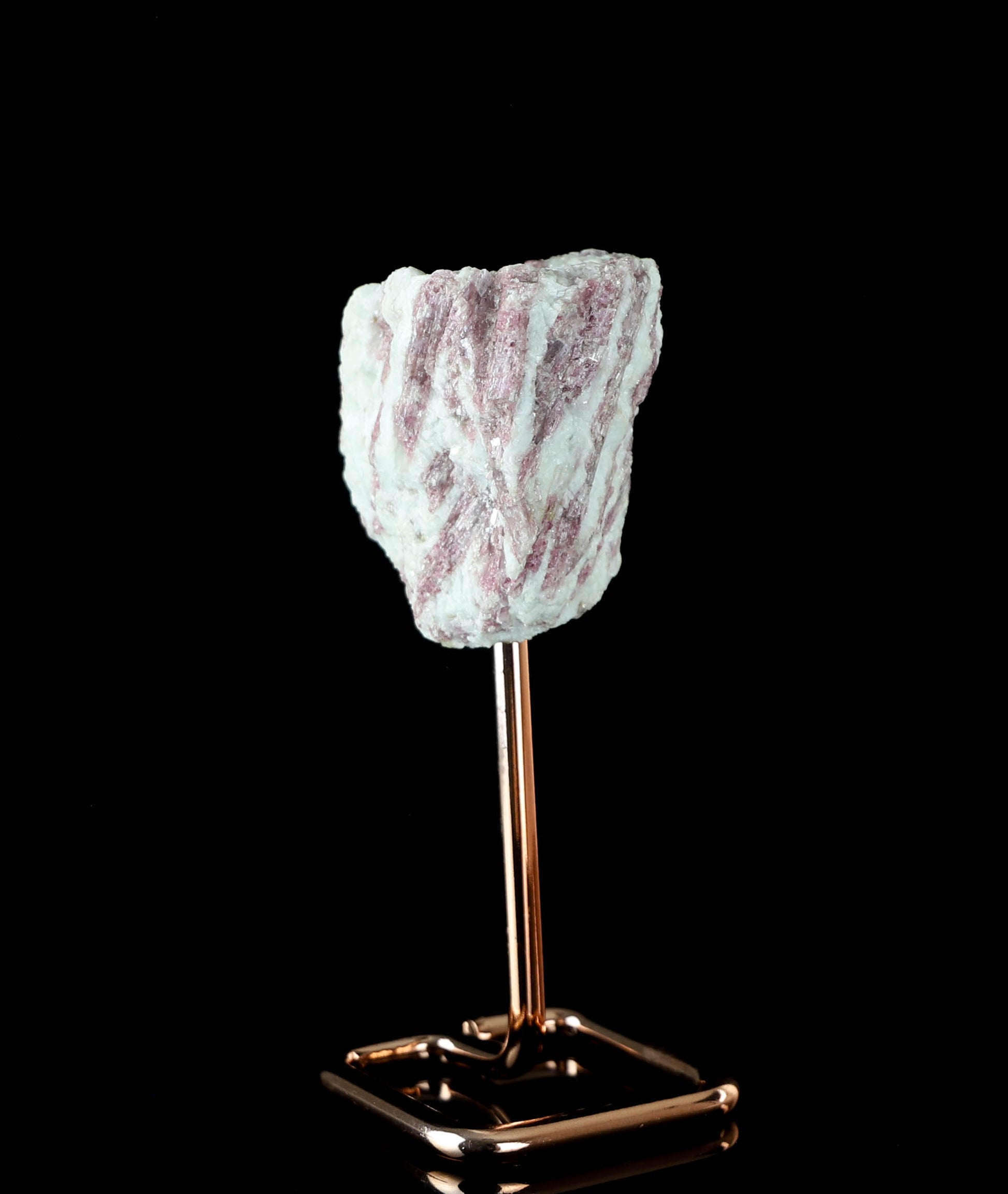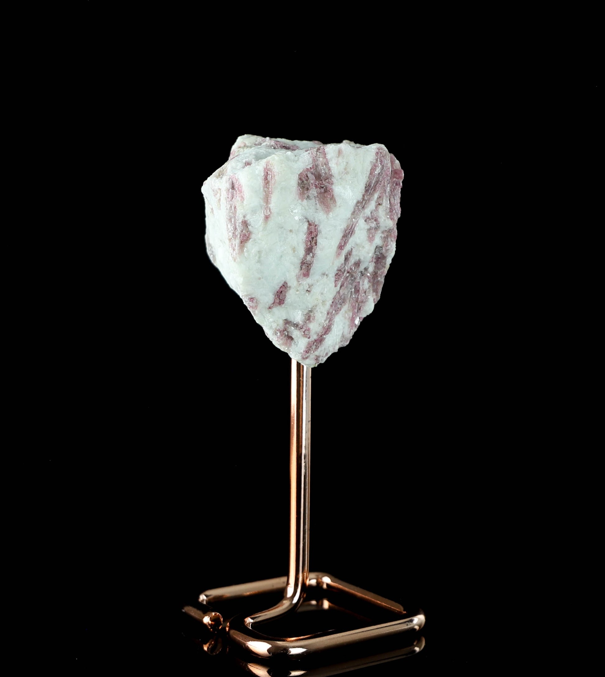This stunning Pink Tourmaline Crystal on a Rose Colored Stand is a one-of-a-kind beauty that will instantly captivate your heart. The lustrous pink hues of this crystal are mesmerizing, making it a perfect addition to any crystal collection or home décor. Carefully picked from mother nature and displayed on a beautiful rose gold colored stand, this Pink Tourmaline Crystal emits soothing and loving energies that promote harmony and balance in your space. Whether you're a crystal enthusiast or looking for a unique gift, this Pink Tourmaline Crystal is sure to delight and inspire. Don't miss out on owning this magnificent piece of nature's artistry.
