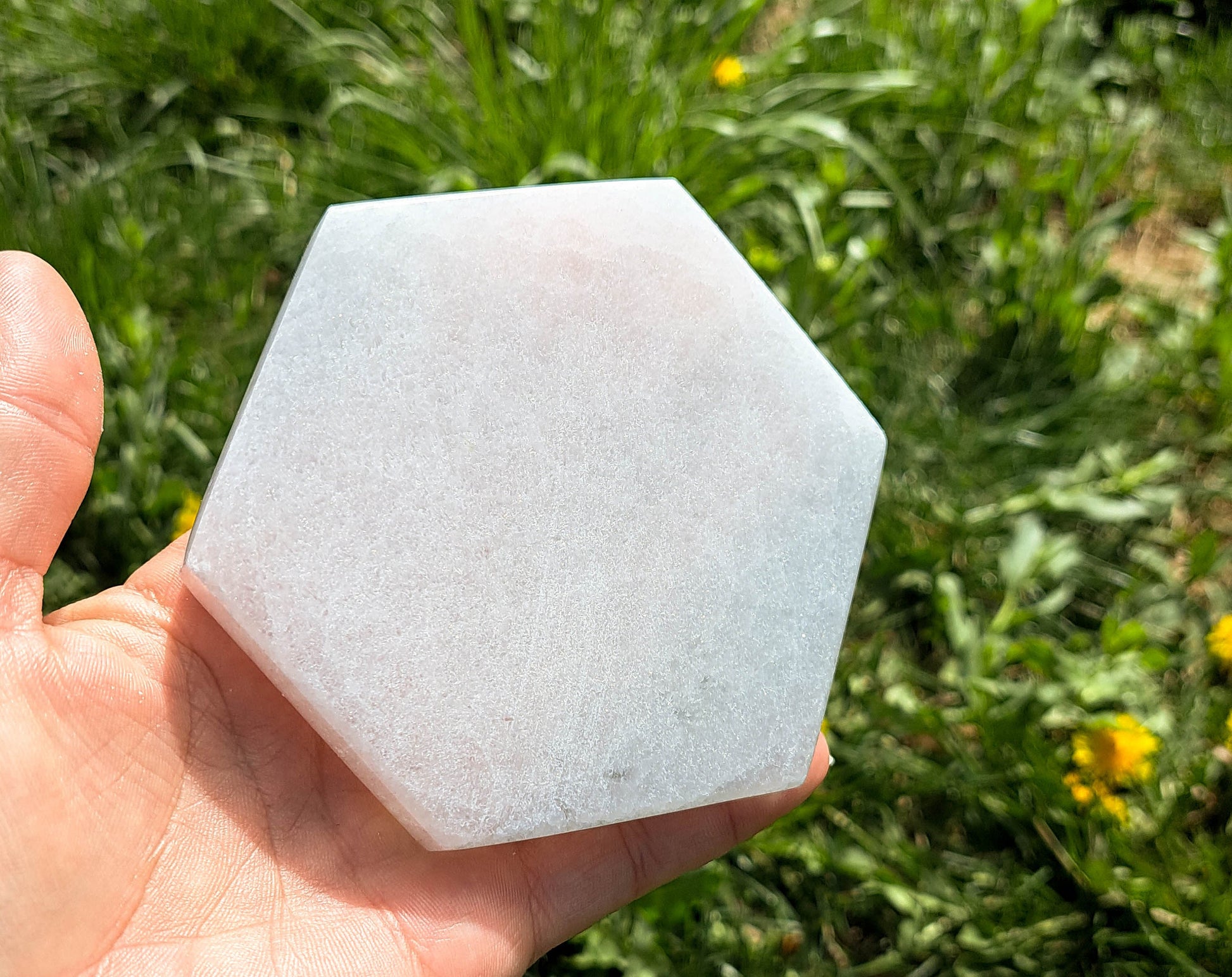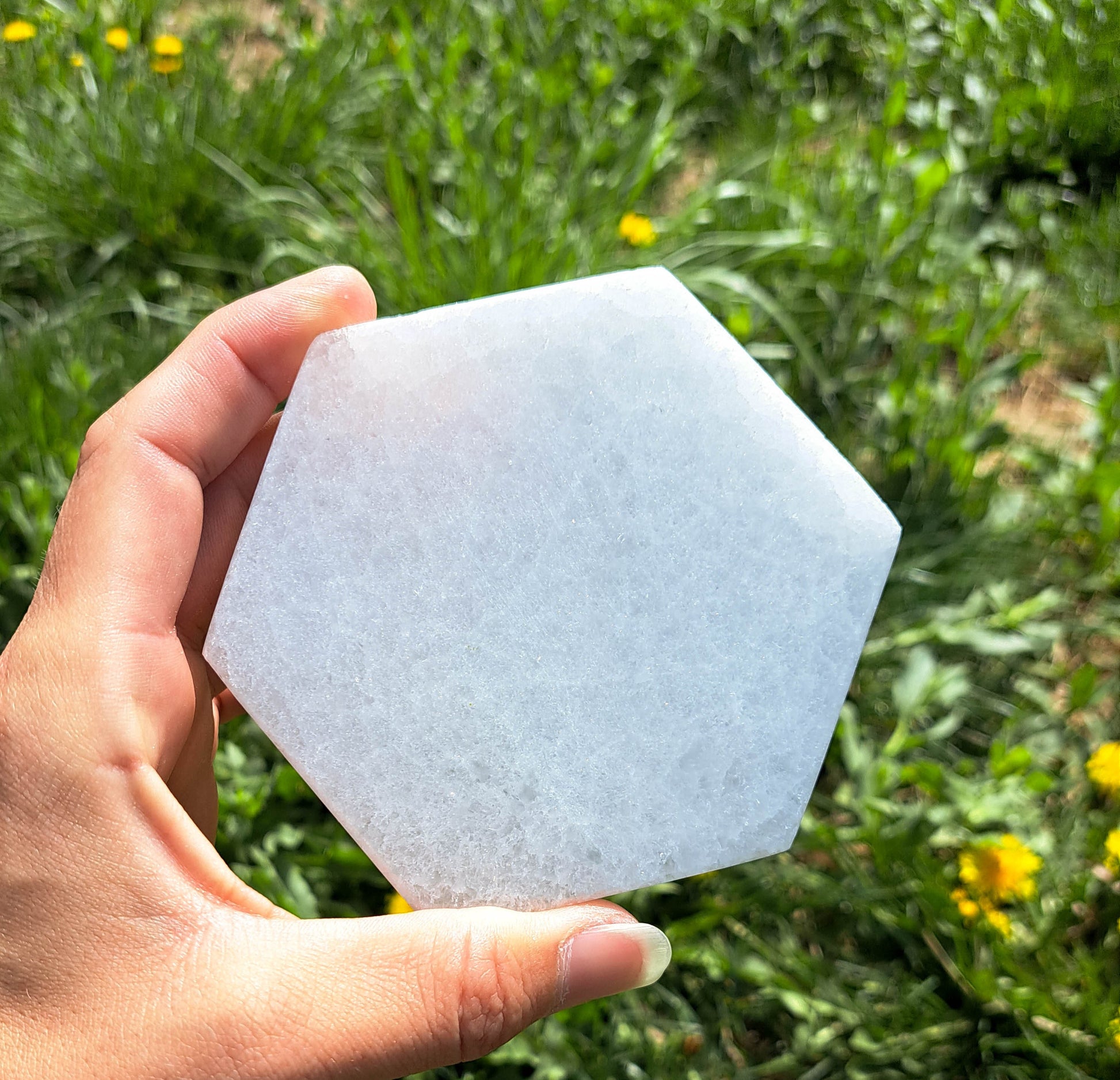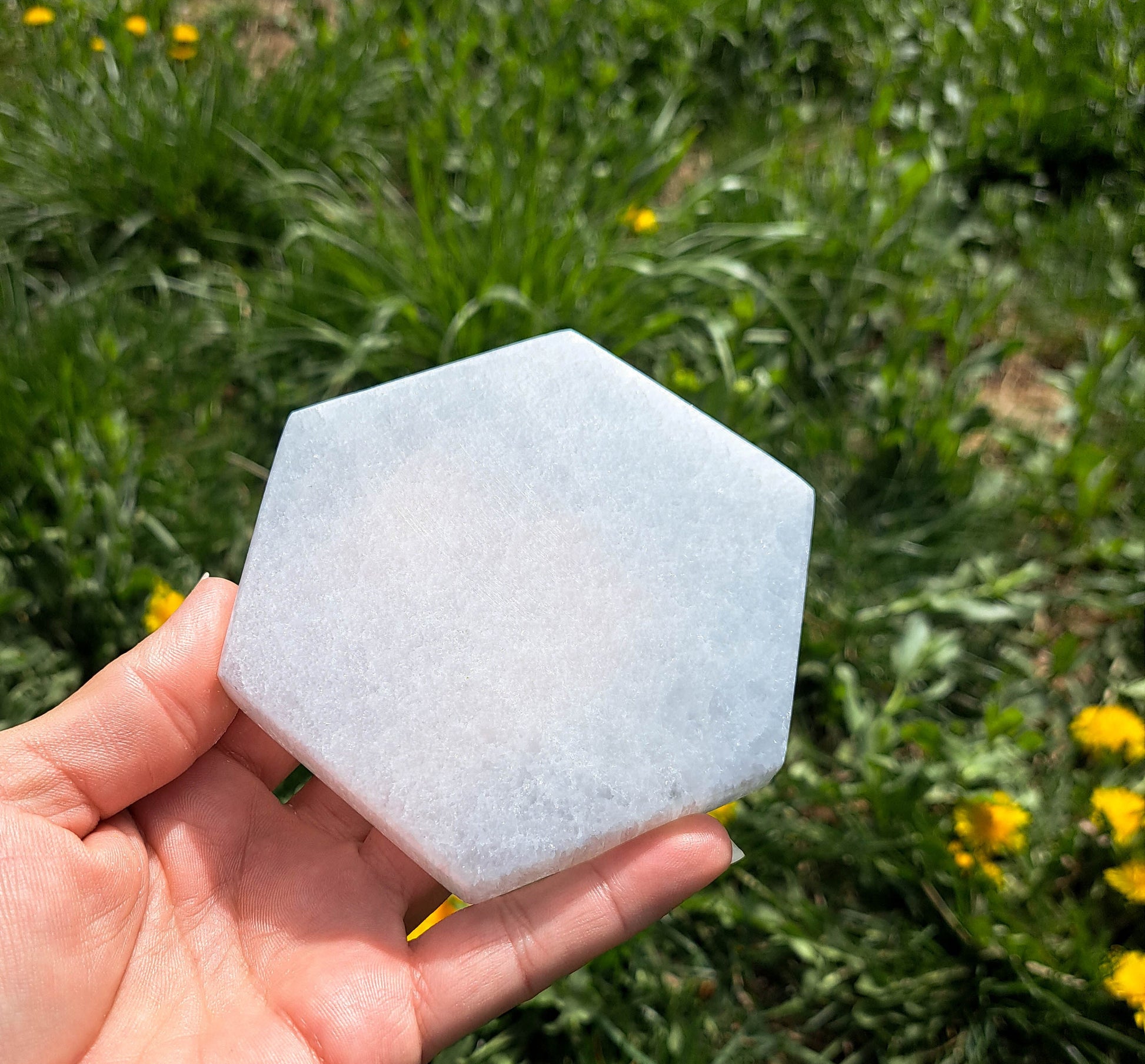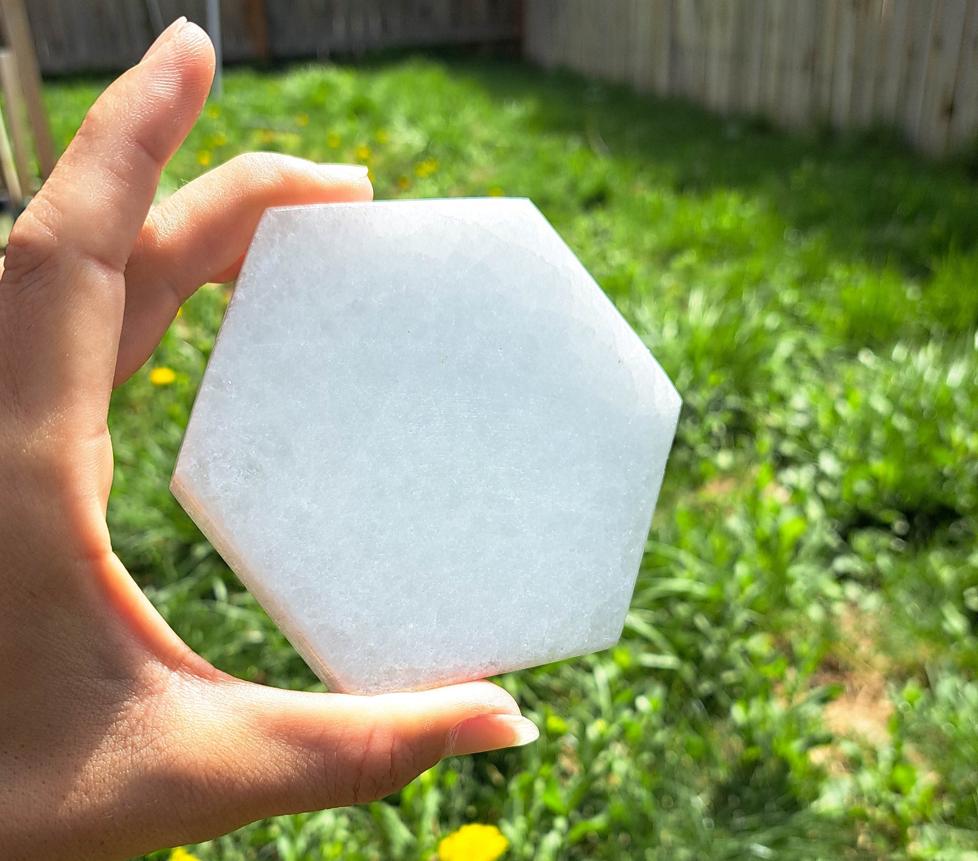 Introducing our exquisite Selenite Charging Plate, a must-have tool for crystal enthusiasts and spiritual seekers alike. Crafted with precision and care, this charging plate emanates a gentle and positive energy that cleanses and charges your crystals in no time. Made from genuine Selenite, known for its powerful healing properties, this plate will effortlessly absorb any negative energy and provide a serene ambiance to your sacred space. Whether you're new to crystal healing or an experienced practitioner, this Selenite Charging Plate is a perfect addition to your crystal collection, aiding in the restoration of balance, clarity, and inner peace. Its smooth, pristine surface and timeless design make it a beautiful home décor piece on its own or as a focal point for your crystal grids. Embrace the power of Selenite and elevate your crystal rituals - order your Selenite Charging Plate now and embark on a transformative journey towards spiritual growth and well-being.