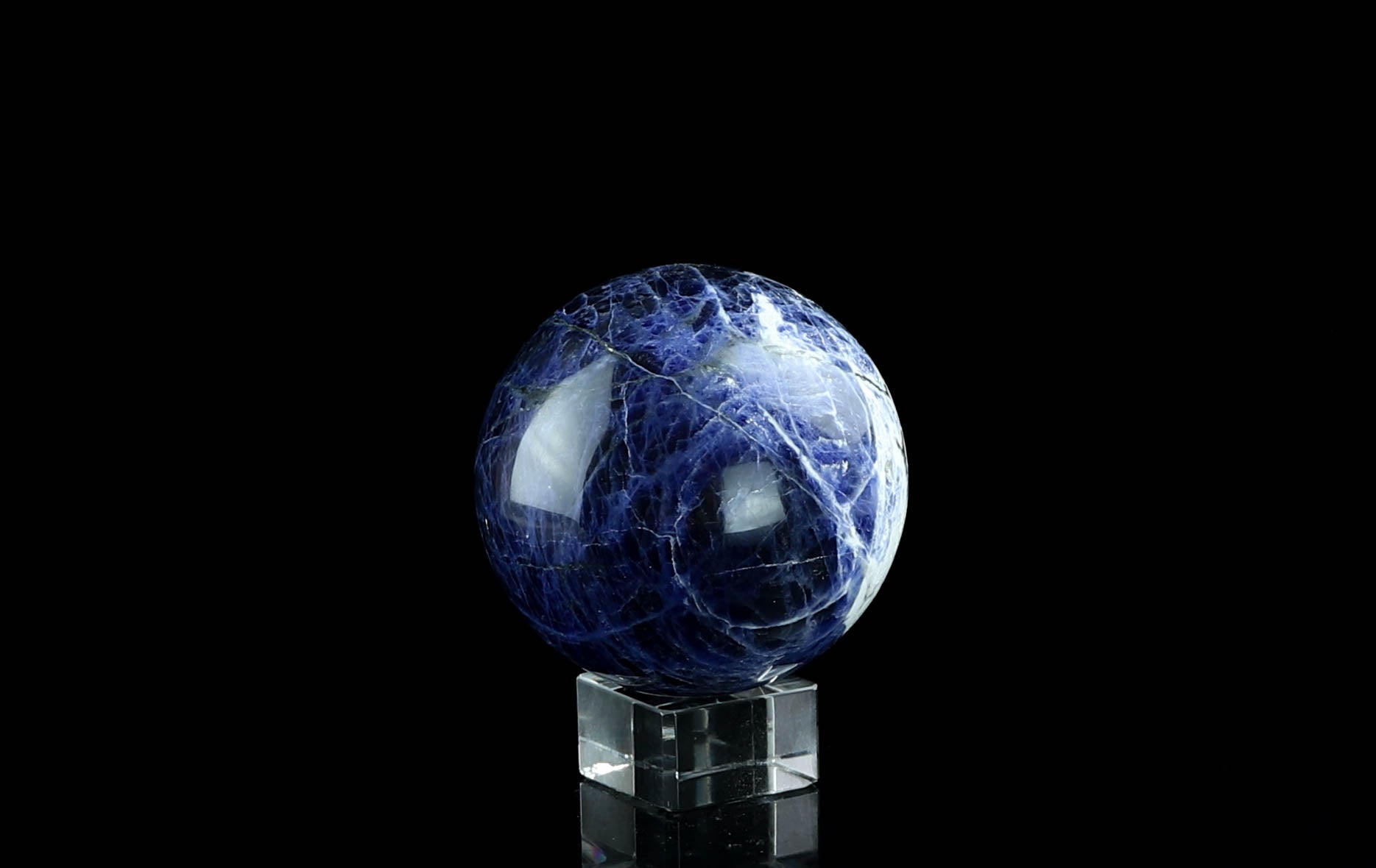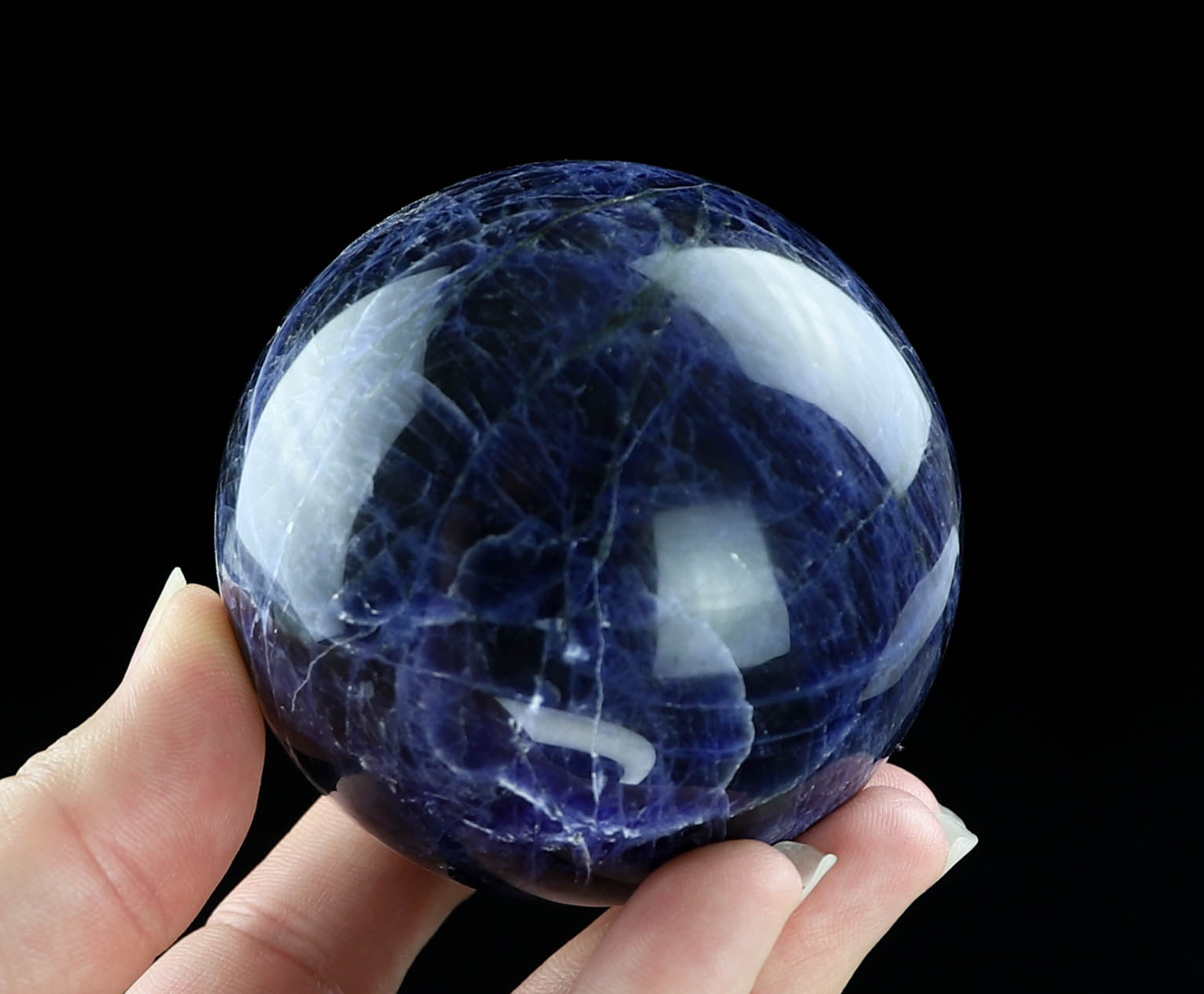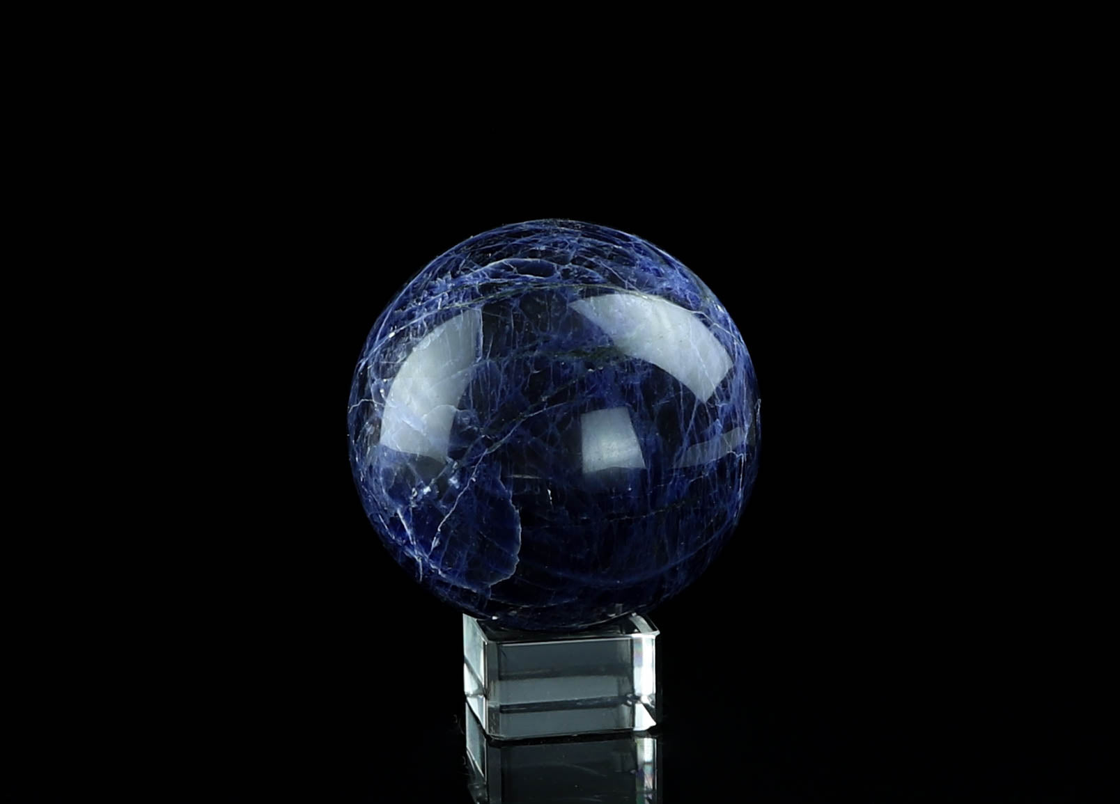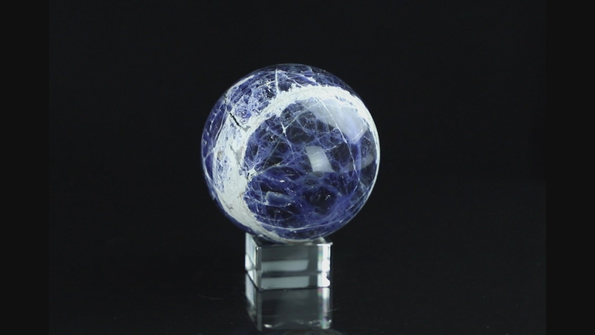 Natural Sodalite Sphere. This crystal sphere is a must have for any crystal collection! Featuring Dark blue color with white veins running through, a stunning center piece for your home decor!