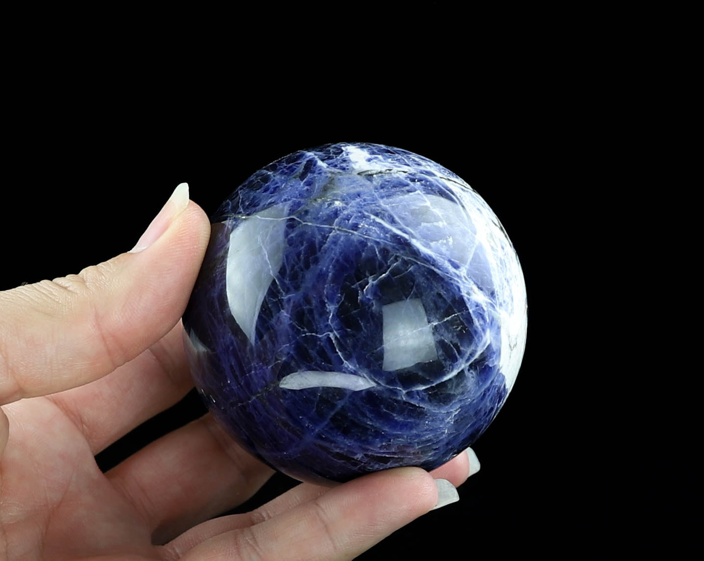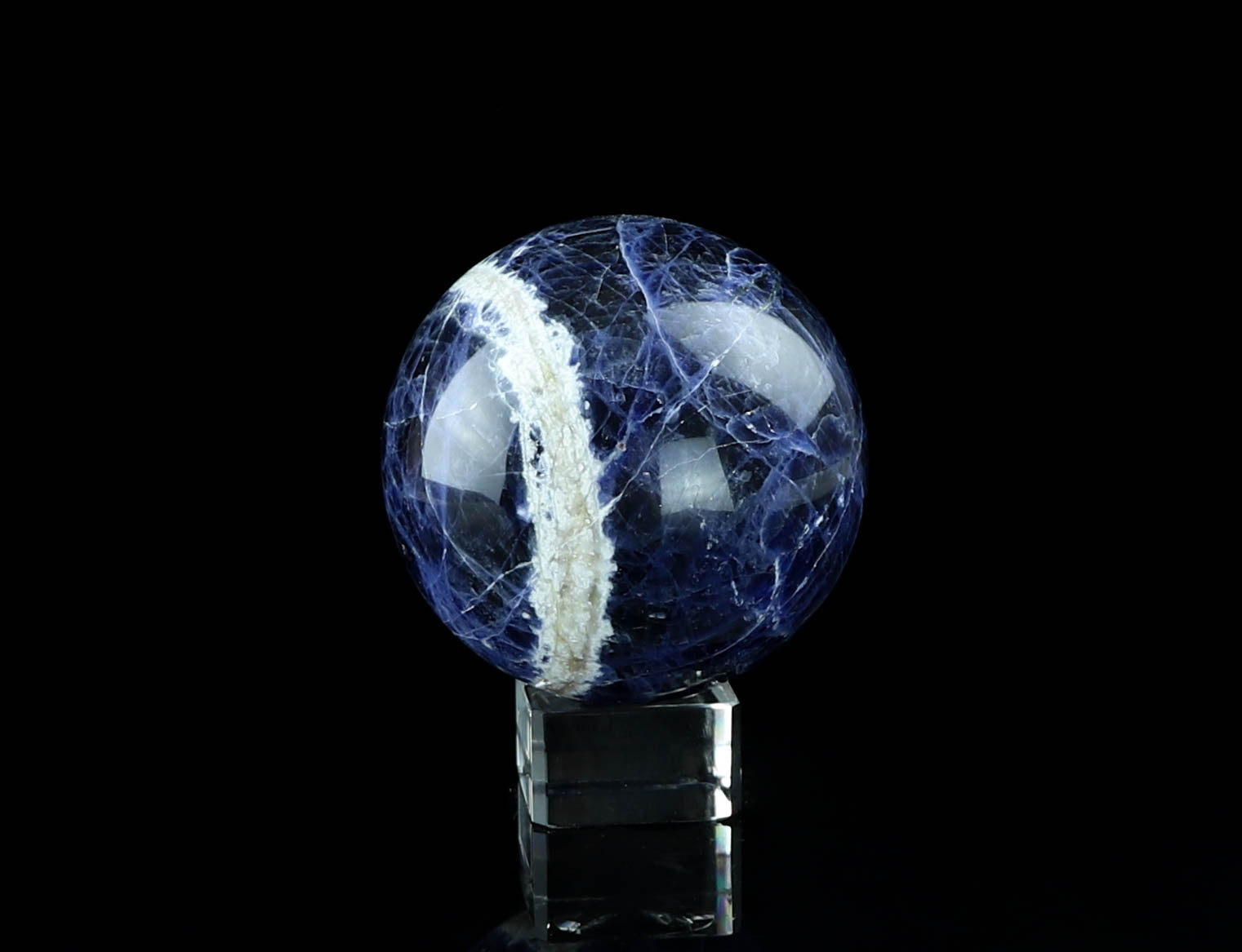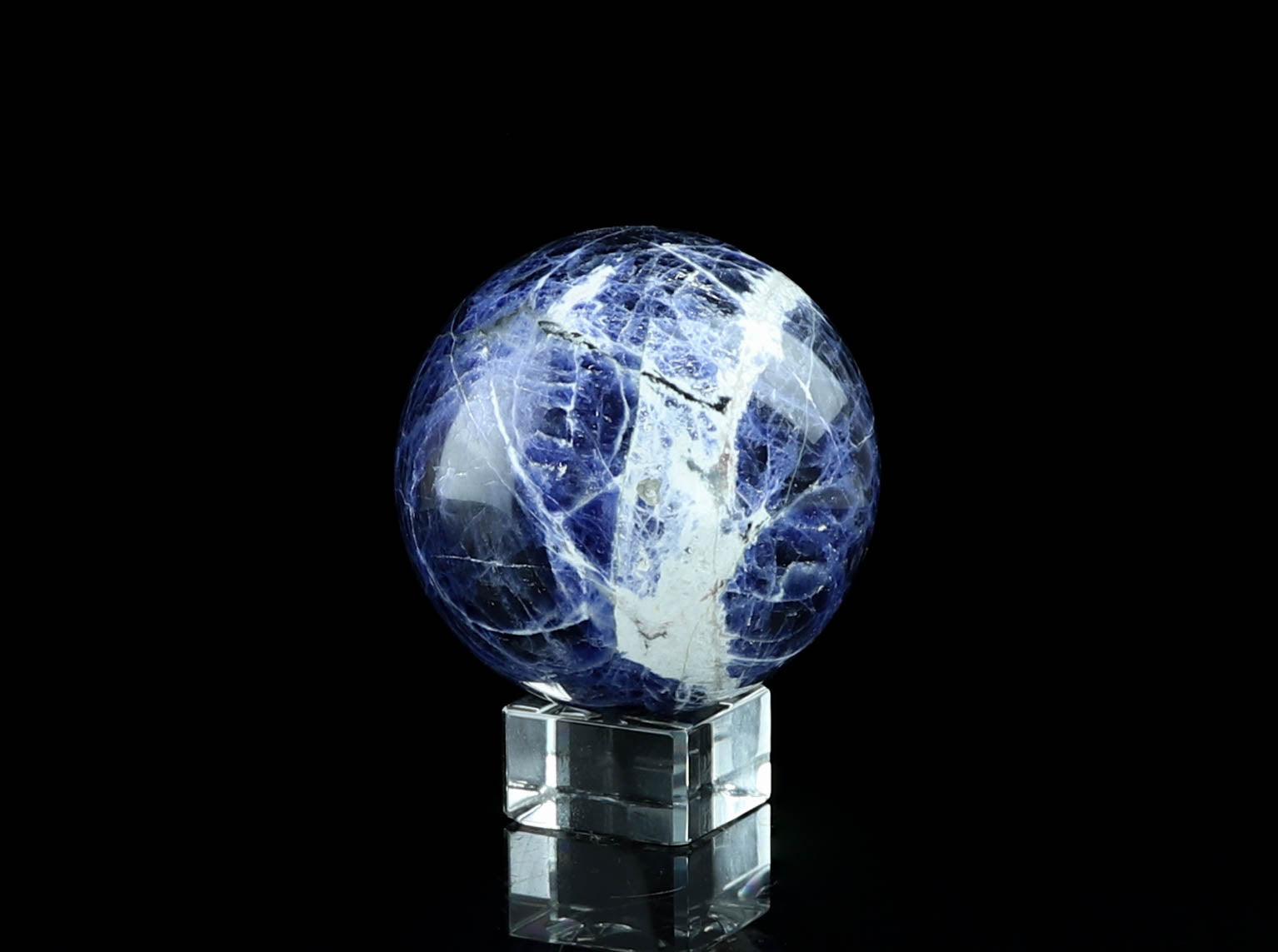 Natural Sodalite Sphere. This crystal sphere is a must have for any crystal collection! Featuring Dark blue color with white veins running through, a stunning center piece for your home decor!