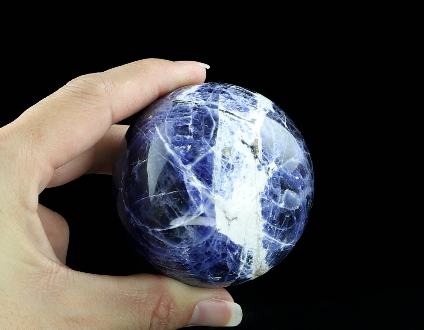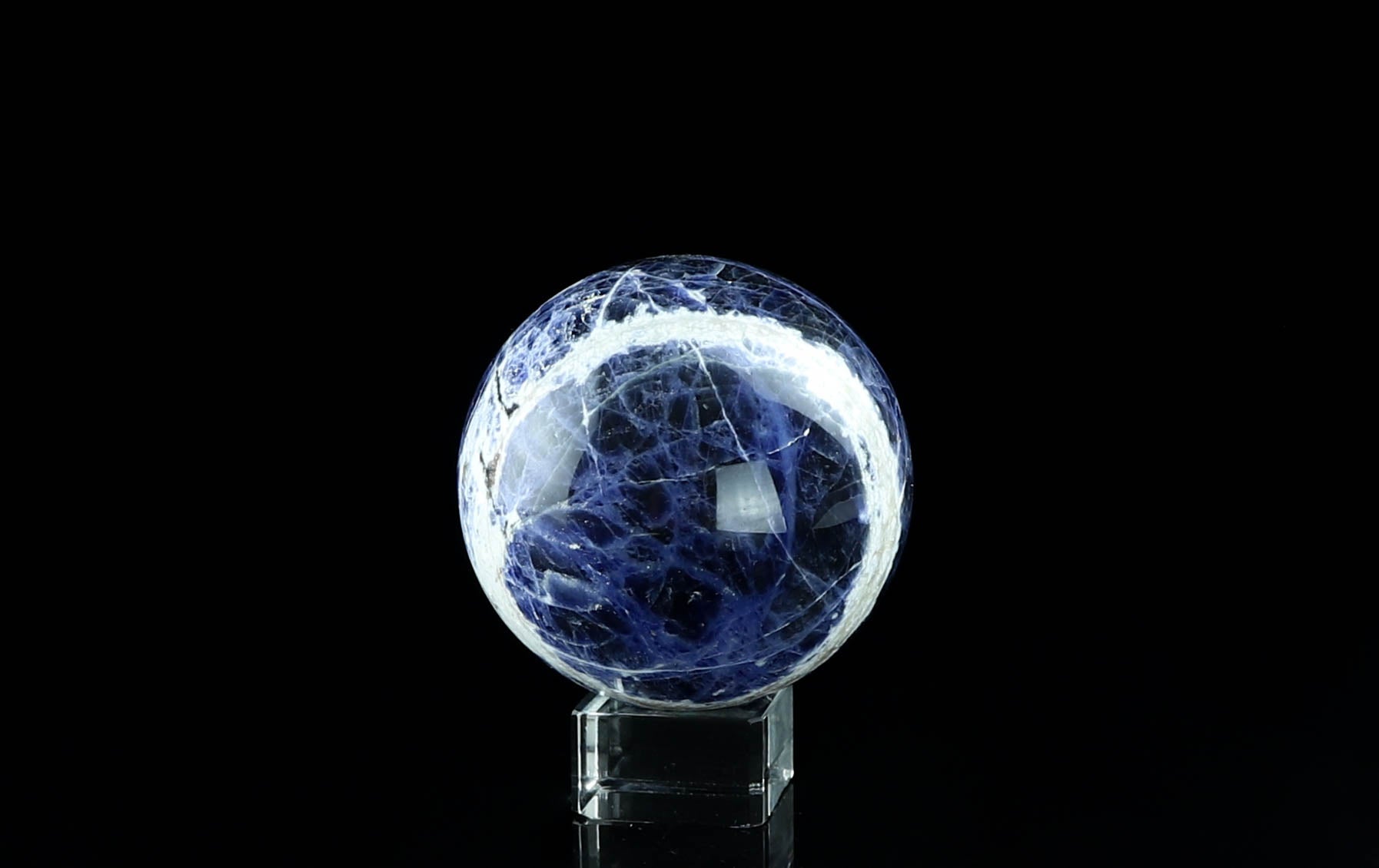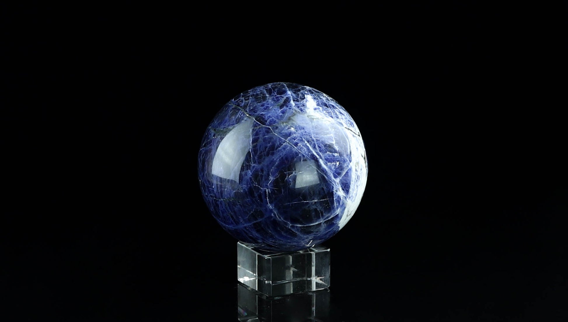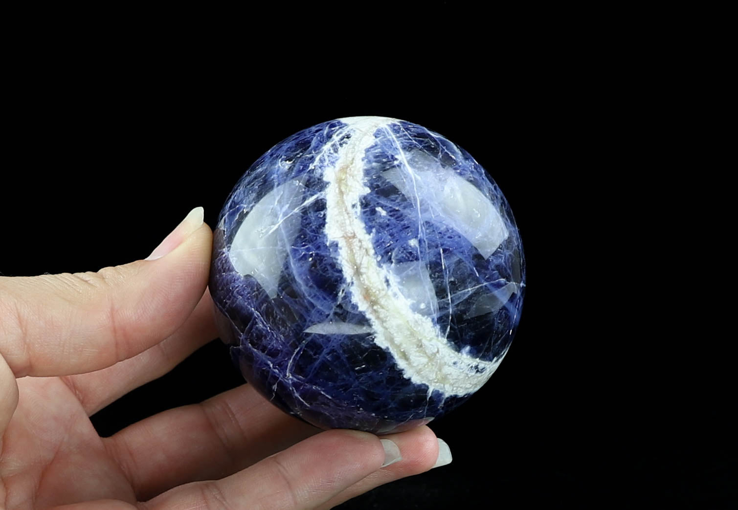 Natural Sodalite Sphere. This crystal sphere is a must have for any crystal collection! Featuring Dark blue color with white veins running through, a stunning center piece for your home decor!