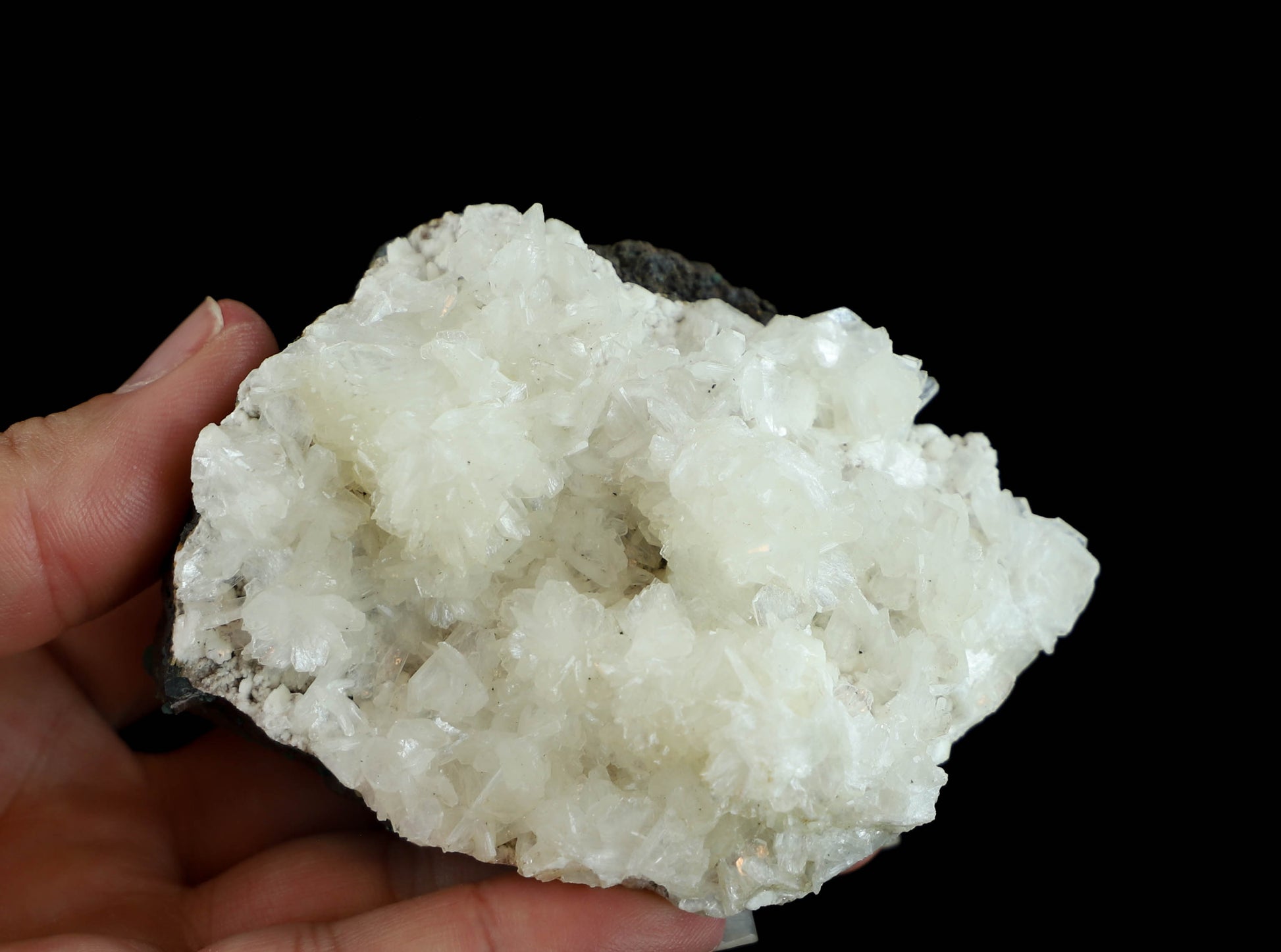 Enhance your crystal collection with this enchanting Sparkly Zeolite Specimen. Radiating an ethereal glow, each facet of this specimen dazzles with brilliant sparkle, capturing and refracting light in mesmerizing ways. The delicate, translucent crystals of Zeolite form intricate formations, creating a captivating display of natural beauty. This divine mineral specimen showcases a harmonious blend of crystal clarity and shimmering sparkle, making it a must-have for crystal enthusiasts to add to their crystal collection. Whether it's for spiritual cleansing, positive energy, meditation, or home décor, this Zeolite Crystal Specimen is bound to bring an enchanting touch to any space.